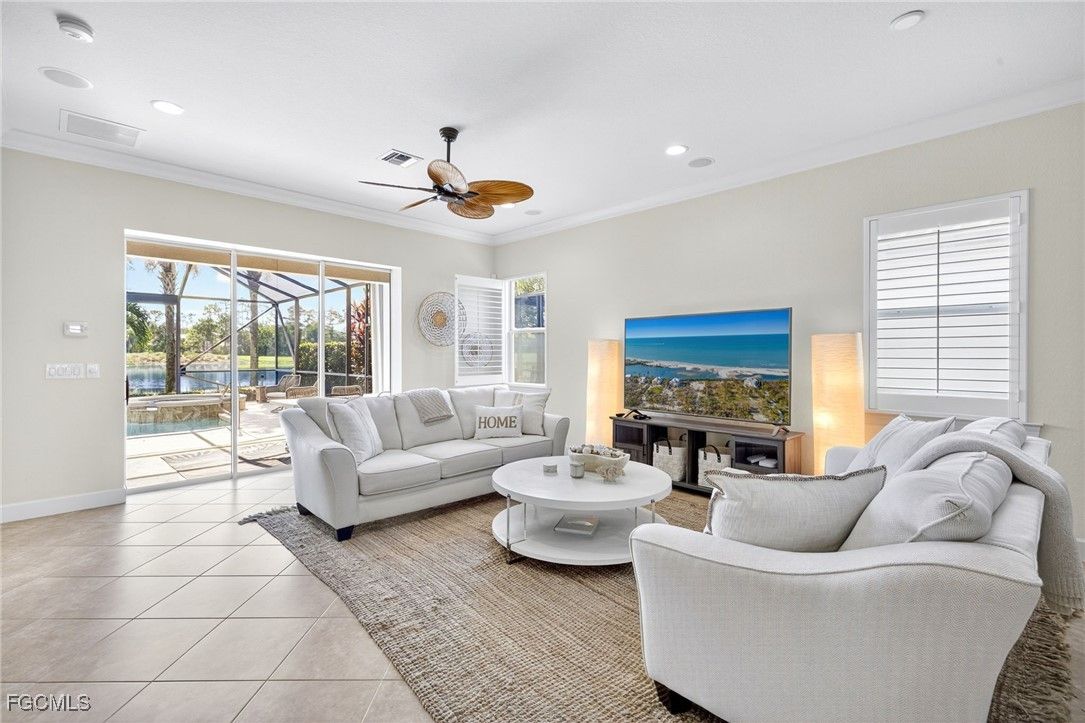Dream Golf Course Pool Home on the 11th green while watching abundant wildlife in your backyard. Welcome to 13001 Simsbury Ter, a stunning home with a golf course view as well as pond view with an abundance of wildlife to enjoy. This elegant residence offers the perfect blend of luxury, comfort, and modern living—with and resort-style amenities right outside your door. Enjoy the Florida lifestyle from your screened lanai with a pool and spa, ideal for entertaining or relaxing. Inside an open concept layout which gives you abundant sunshine and clear view to your lanai when you enter the home. Beautiful custom built in closets, plantation shutters, stainless steel appliances, granite counter tops, 2025 new pool pump. Fully furnished so you can start creating great fun and memories the moment you move in. The home offers three spacious bedrooms, including a private master suite with a large walk-in closet and a luxurious en-suite bath featuring dual vanities, soaking tub, and walk-in shower. The two guest bedrooms are tucked away for privacy and share a beautifully designed full bath. No flood zone, Family Golf Membership included (NO WAIT LIST for membership if desired) for the prestigious Hurdzan-Fry golf course) Community Perks: Newly renovated resort-style amenity center Pool & spa, tennis & pickleball courts State-of-the-art fitness center Country Club with restaurant, grill, and year-round events All this just minutes from RSW Airport, top-rated schools, shopping, dining, and major highways. This is more than a home it's a lifestyle. Whether you're entertaining, relaxing, or enjoying all the activities this active, welcoming community offers year-round, this exquisite residence is truly one-of-a-kind. READY TO MOVE IN IMMEDIATELY Schedule a private showing!