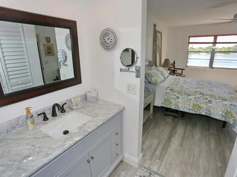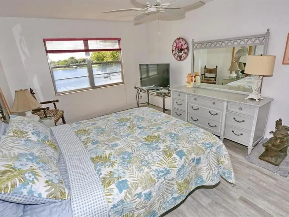 Welcome to your dream paradise retirement retreat!Beautifully updated condo in one of South Florida’s most secure, amenity-rich communities. Features new wood flooring, modern doors and handles, updated ceiling fans, and a renovated master bath with sleek vanity and walk-in closet. Guest bath also updated. Enjoy lake views from your balcony with plenty of natural lighting and shutters. Solid block construction plus assigned parking next to the building. Community includes 24-hour guarded security, on-site police/fire services, a convenience store, medical offices, café, and restaurant. Amenities include a private golf course, indoor/outdoor pools with jacuzzi, and a world-class clubhouse with year-round shows and activities. Live the retirement lifestyle you’ve dreamed of!