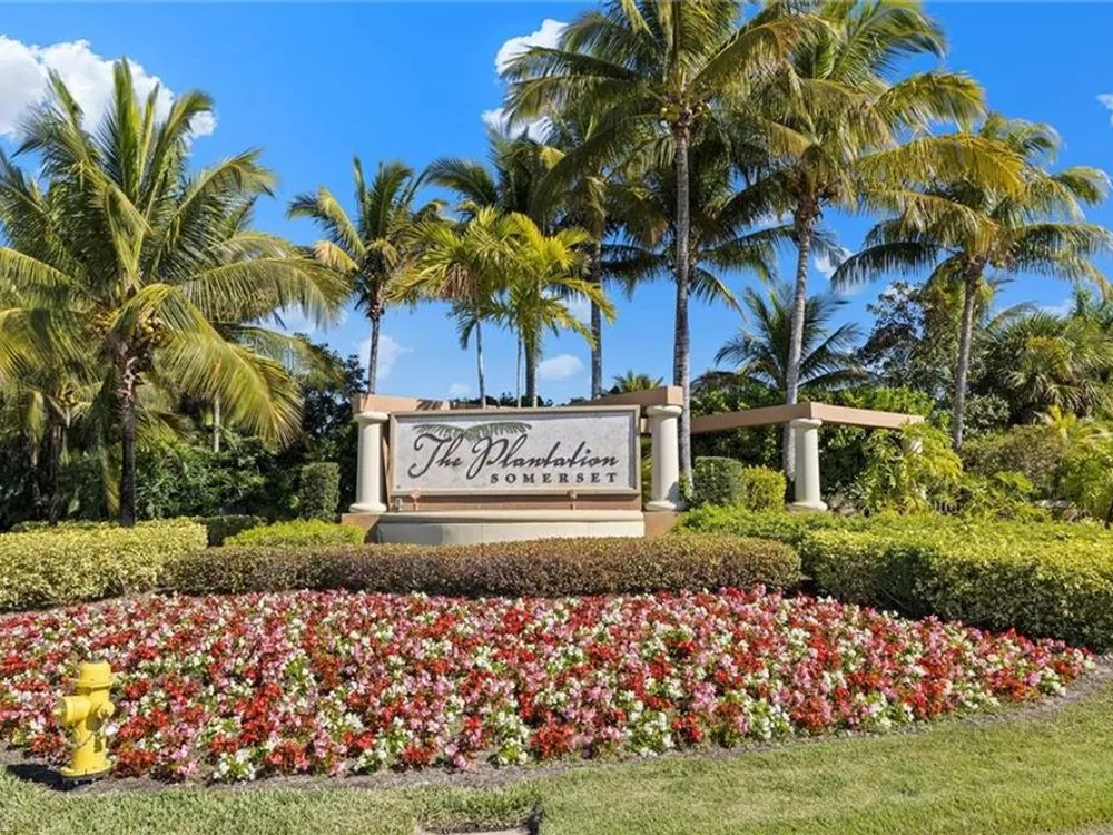 Turnkey & Move-In Ready — Exceptional Value! This immaculate 1st-floor coach home in Somerset at The Plantation offers 3 bedrooms, 2 bathrooms, and an attached 2-car garage. Offered fully turnkey furnished, it’s ready for immediate enjoyment — just unlock the door and start living the Southwest Florida lifestyle.The open-concept layout features a spacious great room, 8’ doors, breakfast bar, and kitchen nook. The kitchen is beautifully appointed with 42" upgraded wood cabinets, granite countertops, tiled backsplash, under-cabinet lighting, pull-out shelves, pantry, and stainless-steel appliances. Two sets of sliders open to a screened lanai overlooking a peaceful preserve — perfect for morning coffee or evening relaxation in a quiet, natural setting.The large primary suite includes private lanai access, a custom-built walk-in closet, oversized jetted soaking tub, glass-enclosed walk-in shower, and split vanities. Additional upgrades include crown molding, plantation shutters, a security system, and a well-equipped laundry room with sink and built-in cabinets.HOA fees include cable, high-speed internet, lawn mowing and fertilizing, landscape trimming, pest control, water, trash, exterior insurance, and maintenance. Residents enjoy access to tennis and pickleball courts, bocce ball, a fitness center, resort-style pool, lap pool and spa, social clubs, and more.The Plantation Golf & Country Club, located within the gated community, features a Hurdzan-Fry championship 18-hole golf course, clubhouse, and restaurant. Golf and social memberships are optional. Conveniently located near I-75, shopping, dining, RSW airport, and Gulf beaches, this home offers a seamless transition to comfort, connection, and carefree living.