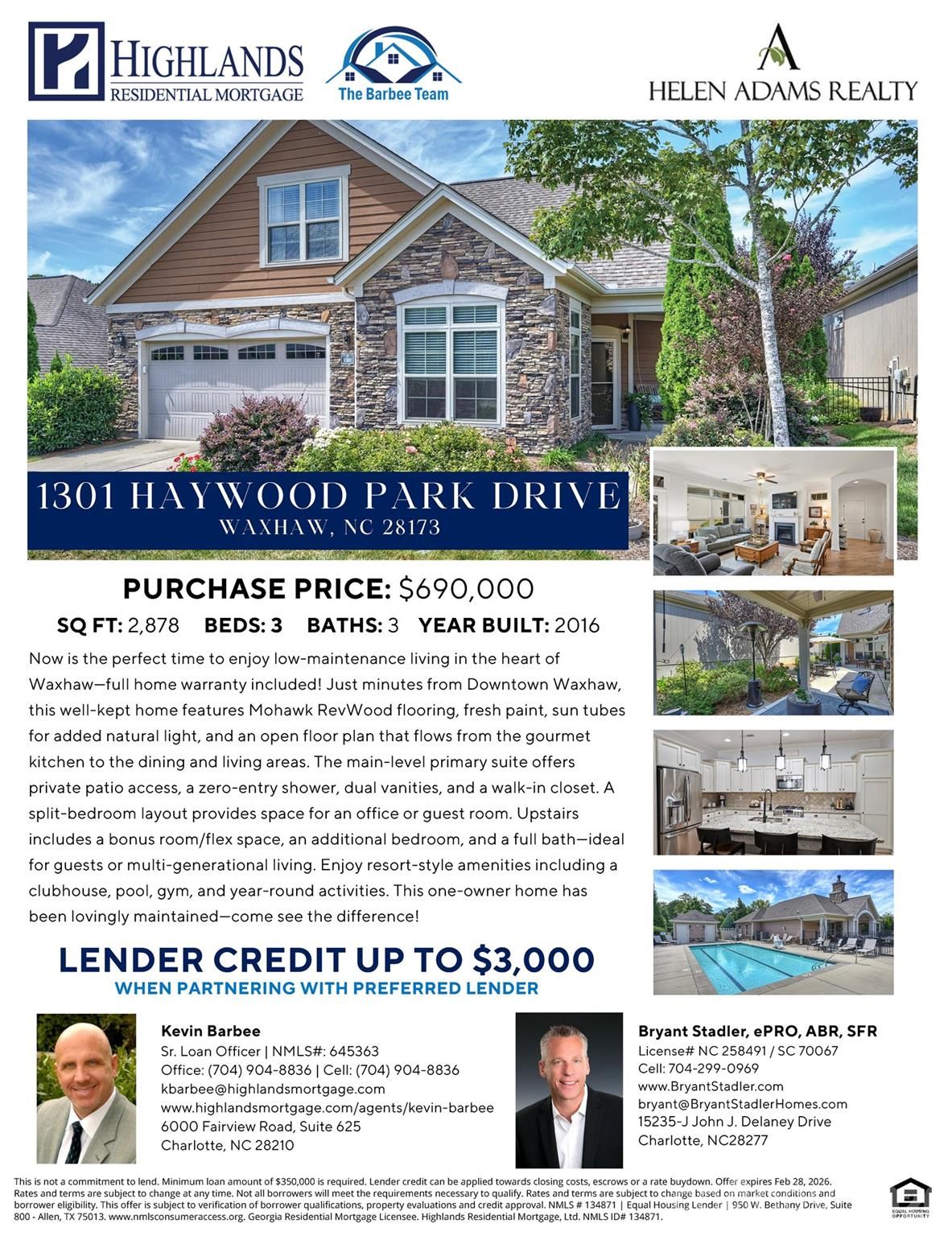 Listing courtesy of: Bryant Stadler, Helen Adams Realty Listing Agent Contact Information: 704-299-0969