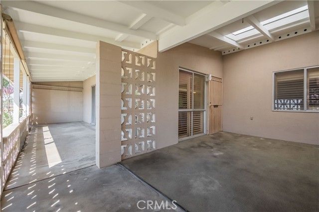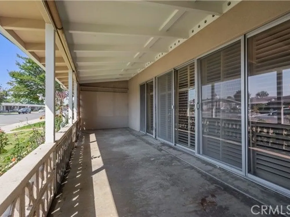 Located in the desirable 55+ community of Leisure World, this light-filled 2-bedroom, 1-bath home offers a bright living room with plantation shutters, a functional kitchen with ample storage, and a primary bedroom with direct patio access. The covered patio, accessible from both the living room and bedroom, features decorative block accents and skylights for year-round enjoyment. Community amenities include a golf course, pool, fitness center, library, and more—all just minutes from the beach.