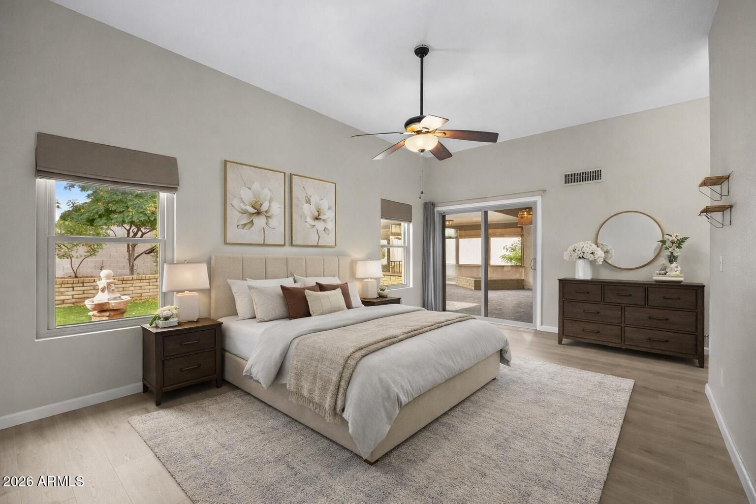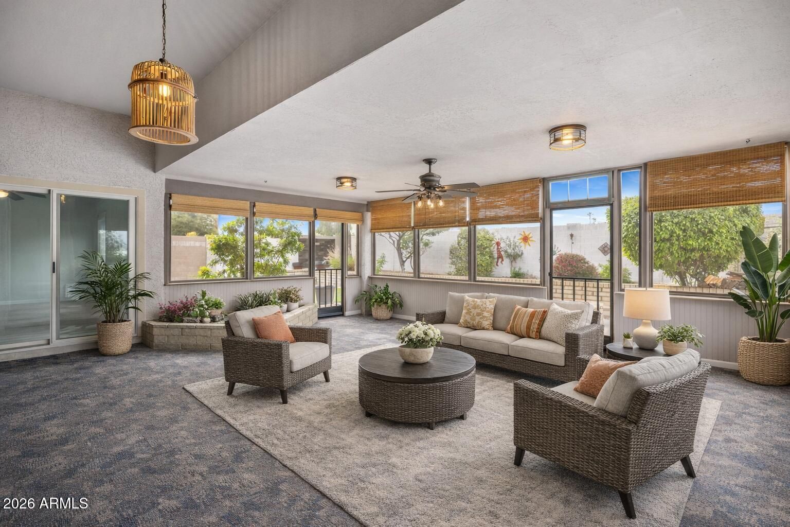 Beautifully updated with a NEWER roof, ALL-NEW windows, NEW A/C, and FULLY remodeled kitchen and baths, this Ahwatukee gem offers true turnkey living in one of the Valley's premier 55+ communities. An inviting front courtyard leads into a bright, polished interior with no interior steps and one of the community's most spacious floor plans. A vaulted ceiling and custom entertainment wall create a striking entry, while the oversized screened-in Arizona room expands your living space year-round. The remodeled kitchen features quartz counters, new appliances, and a counter-to-ceiling backsplash. Both bathrooms have been fully renovated with new vanities, updated fixtures, and beautifully retiled surrounds. Thoughtfully upgraded and move-in ready, this home checks EVERY box! With an incredibly low HOA of just $72/month including full access to ALL amenities this home delivers unbeatable value and comfort. Residents of the Ahwatukee Recreation Center enjoy a vibrant social scene, clubs, fitness facilities, pools, classes, and endless activities. Only one occupant needs to be 55+, and additional residents may be 18+. RV and boat storage is available as well.