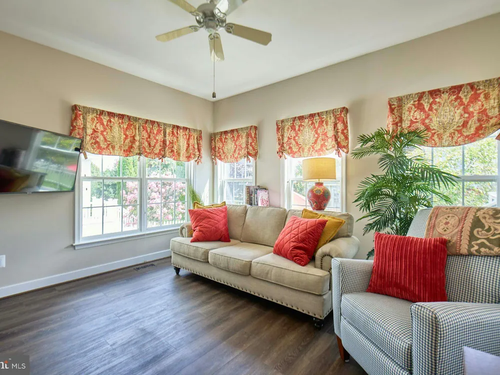Active, under Contract with home sale contingency-OK to show anytime. Absolutely Immaculate Patuxent Model in Heritage Hunt ✨Over 3,200 sq ft of luxury! Welcome to this stunningly refurbished Patuxent Model, perfectly situated in the coveted active adult community of Heritage Hunt. Backing to open space and surrounded by mature trees and shrubs, this home combines privacy with charm. Sellers have refurbished the home with many upgrades revealing a stunning product. Stone and vinyl front with a welcoming porch. The Main Level flooring has been all redone in upscale luxury 7” vinyl plank. Charming and updated light fixtures add tasteful sophistication in the Formal Dining Area. Freshly painted in natural colors with white ceilings and trim. Large Living Room is adorned with the Double Sided Gas Fireplace which is shared by the Sun Room. Remolded Kitchen is every chef's dream and includes new white Quartz Countertops, Stainless Steel Appliances, halo lights and backsplash. The main attraction is the new white Cabinets with soft close and upscale hardware. The large Mud room leads to the 2 car garage and offers extra cabinets for all your storage. Breakfast Nook is ideal for meals. Walk out to the brand new oversized Screened Porch complete with ceiling fan, plenty of space for your furniture and door leading out to the deck with stairs to the rear yard. Primary Suite Bathroom has been remodeled with ceramic tiles, new vanity with double sinks, upscale lighting, walk in shower and tub. There is a second Bedroom on the Main Level to include large walk-in closet. Main Level Hall Bath is also remodeled with new tile, vanity and lighting. But just wait until you see the newly remodeled Lower Level! What a fabulous area to entertain. The wet bar is surely the centerpiece of the Rec Room. Sellers replaced the stair carpet, plus added all new luxury vinyl plank throughout the Rec Room. The lower level Den could be used as the 3rd Bedroom (NTC) The remodeled Full Bathroom is perfect for guests. Enjoy the built in book shelves and the privacy of your home office. Walk up stairs to rear fenced yard and the new gorgeous slate and paver patio plus you will love the retaining wall - perfect for entertaining. New Roof, HVAC and Hot Water Heater 2022. New Deck, Screened Porch, Patio and Fenced Rear Yard. Remodeled Baths & Kitchen. New Flooring & Wet Bar. This is one home you don’t want to miss!