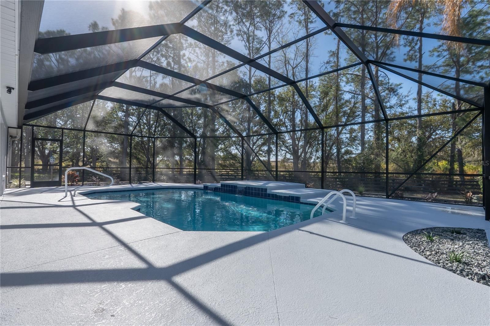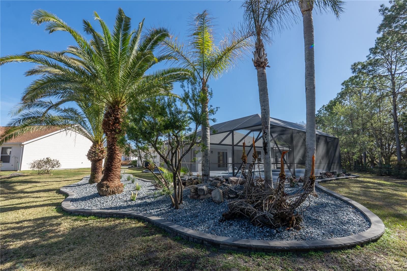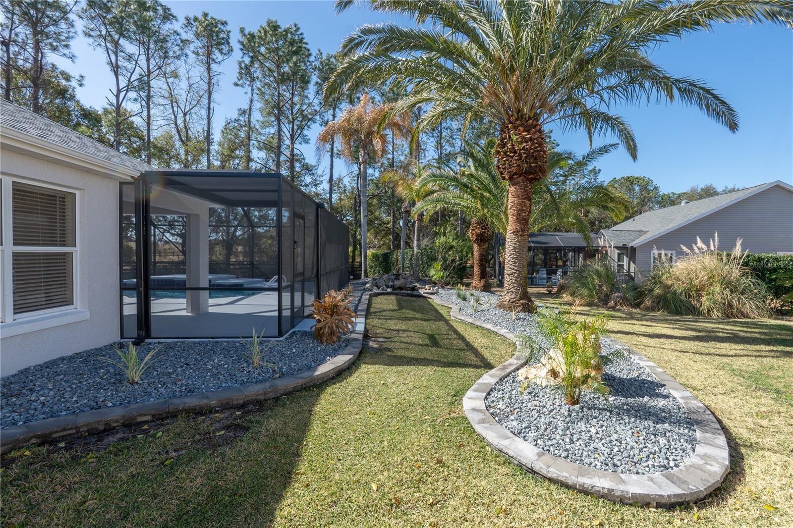 I am on a quiet cul-de-sac, and I’ve had a COMPLETE TRANSFORMATION, inside and out, and I honestly feel brand new, plus I come with NO BOND and a PRIVATE BACKYARD featuring a GORGEOUS RESURFACED POOL. Step through my LEADED GLASS FRONT ENTRY, and you’ll immediately notice the wide open feel. My LVP FLOORING runs seamlessly throughout, NO CARPET, NO PROJECTS, NO HONEY-DO LIST, and NO POPCORN CEILING. My kitchen was rebuilt from scratch with NEW CABINETS featuring SOFT-CLOSURE drawers and doors, upgraded QUARTZ COUNTERTOPS, and a full suite of brand new STAINLESS STEEL APPLIANCES. I’m ready for dinner parties, holiday gatherings, or just your morning coffee without a single update needed. Both bathrooms were completely renovated with a NEW SHOWER, NEW VANITIES, NEW TOILETS, and NEW LIGHT FIXTURES with LED lighting, clean, bright, and modern because everything is new. Don’t miss my CUSTOM ENTERTAINMENT CENTER, and yes, the TV and FIREPLACE STAY. Did you see my 5 1/4 inch BASEBOARDS? I’m not just pretty, I’m practical. My ROOF 2020, HWH 2021, and HVAC 2025. Translation: you get the upgrades without the surprise expenses. Now let’s go outside, because this is where I really show off. My POOL has been resurfaced and sparkles again, surrounded by a large BIRDCAGE so you can enjoy Florida living without the Florida bugs. The backyard opens to a peaceful PARK-LIKE SETTING with POLO GROUNDS behind me, which means NO REAR NEIGHBORS and real privacy. My PIE-SHAPED LOT gives you extra breathing room and the UPGRADED LANDSCAPING finishes the look. I even dressed up for you with FRESH EXTERIOR PAINT, a PAINTED DRIVEWAY, and an OVERSIZED 2 CAR GARAGE with EPOXY FLOORING that looks as clean as the inside of the home. I’m not a fixer-upper and not a someday project. I’m the home you move into and start living your Florida life right away. All I need now… is my next owner.