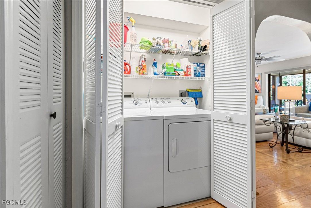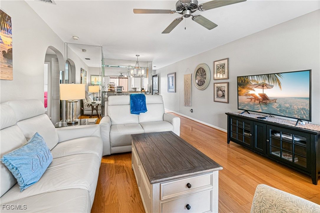 Welcome to your stunning turnkey condo in Cross Creek Country Club with bundled golf. Your new beautifully decorated turnkey home has spacious 2-bedrooms and 2-bathrooms and is perfectly situated in the highly sought-after Cross Creek community. This well-maintained home offers effortless living. Enjoy your beautiful wood and tile floors. Your large ensuite master bedroom has ample space and a walk-in closet. Your spare bedroom has plenty of space and a large closet. Your laundry is in your residence making your life simple. You have a new water heater (2024), new couches and chairs, and stylish décor, making it truly move-in ready. The inviting kitchen features granite countertops, perfect for cooking and entertaining. Lots of kitchen cabinets and stainless-steel appliances. You are not located in a Flood Zone and your condo has pull down storm shutters. Take in the open floorplan concept and split bedrooms. Enjoy breathtaking lake views from your lanai. Or enjoy the wonderful storm screened front door as the wind blows through your new home. You also have your own private storage. Embrace a vibrant lifestyle with access to bundled golf on the exceptional 18-hole Arthur Hills executive course. Additional resort-style amenities include a clubhouse, fitness center, pool, spa, sauna, tennis, pickleball, restaurant, and much more! Located just minutes from shopping, dining, professional baseball training facilities, churches, and RSW Airport, this condo offers the ideal combination of convenience and luxury. Don’t miss this opportunity to own a piece of paradise in SWFL. Schedule your showing appointment before your beautiful home is gone.THE NEW FEES FOR 2026 ARE $1975.00 PER QUARTER. A $200.00 APPLICATION FEE. $100.00 TRANSFER FEE TO THE MASTER ASSOCIATION.