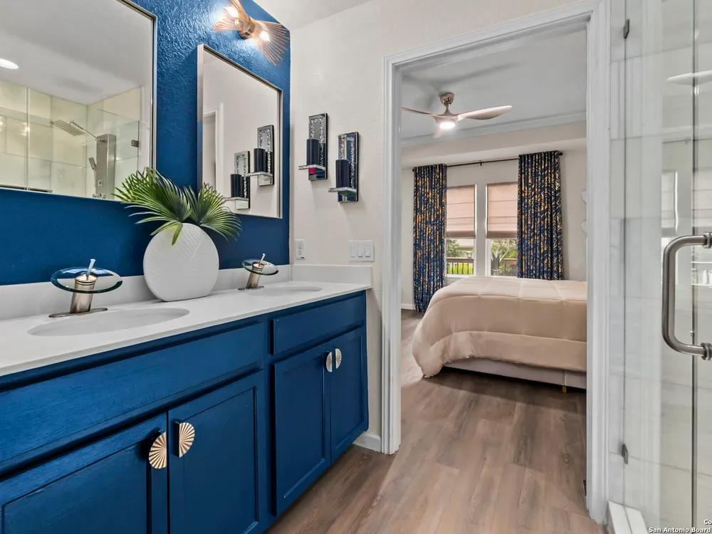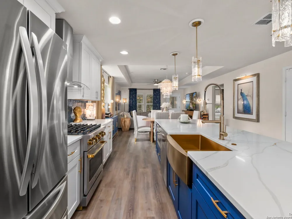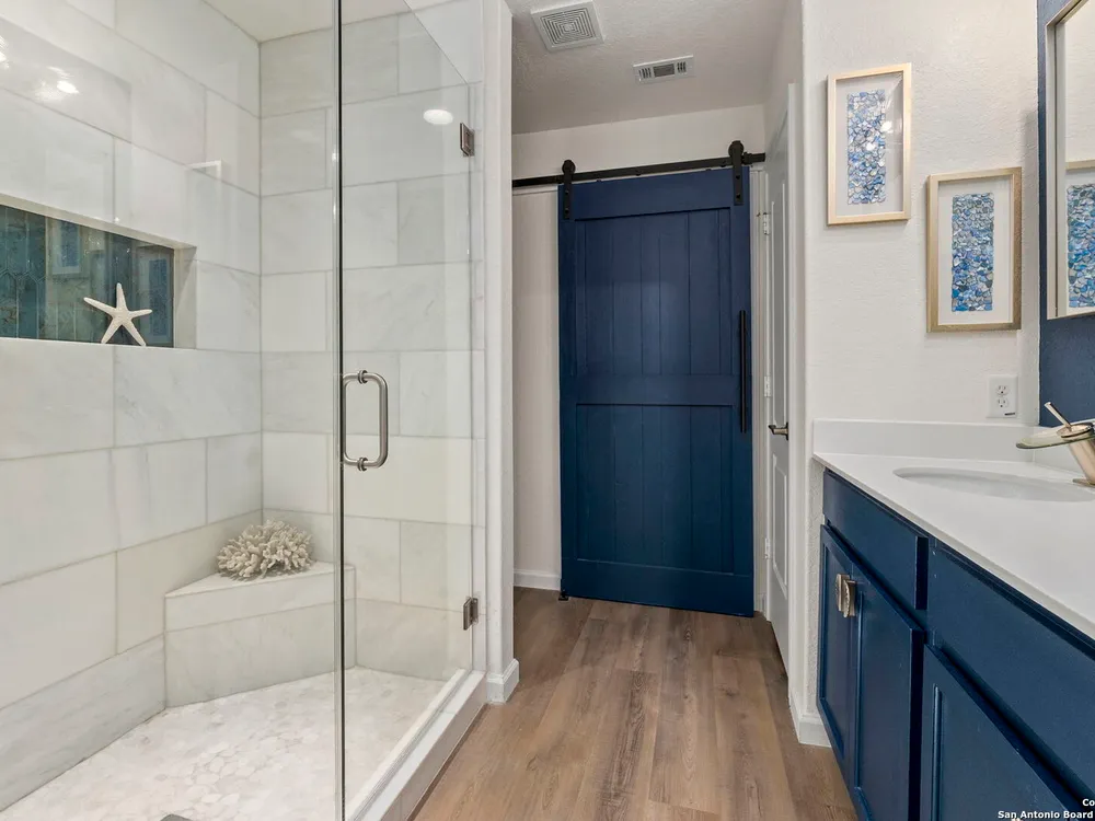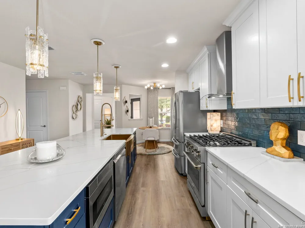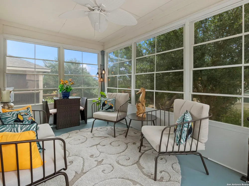 Located in the gated Hill Country Retreat community by Del Webb, this extensively upgraded single-story home offers over $85,000 in recent improvements-blending quality craftsmanship with comfort and peace of mind. At the heart of the home is a fully remodeled kitchen featuring soft-close cabinetry, high-end quartz countertops, an apron-front sink with a premium faucet, and a full suite of new top-tier appliances including a ZLINE chef's stove, LG refrigerator and dishwasher, Sharp microwave drawer, and custom vent hood. The spacious primary suite provides a relaxing retreat, complete with a beautifully updated bathroom showcasing a marble walk-in shower, sleek modern fixtures, updated mirrors, and a contemporary shower system. Step outside to enjoy the enclosed screened-in porch-perfect for morning coffee or evening wind-downs without the hassle of bugs. Just beyond, a large patio offers additional outdoor living space ideal for entertaining, grilling, or simply soaking in the tranquil backyard setting. Additional upgrades include a new Amana HVAC system, 50-gallon water heater, water softener with carbon tank, and a new roof-all contributing to energy efficiency and long-term ease of ownership. A custom front door adds to the home's curb appeal, while refreshed landscaping with new sod, gravel, and electric landscape lighting enhances its overall charm. Hill Country Retreat offers a vibrant 55+ lifestyle with resort-style amenities including walking trails, indoor and outdoor pools, a fitness center, and a clubhouse with organized events and social clubs. This is a rare opportunity to own a move-in-ready, thoughtfully updated home in one of San Antonio's premier active adult communities.