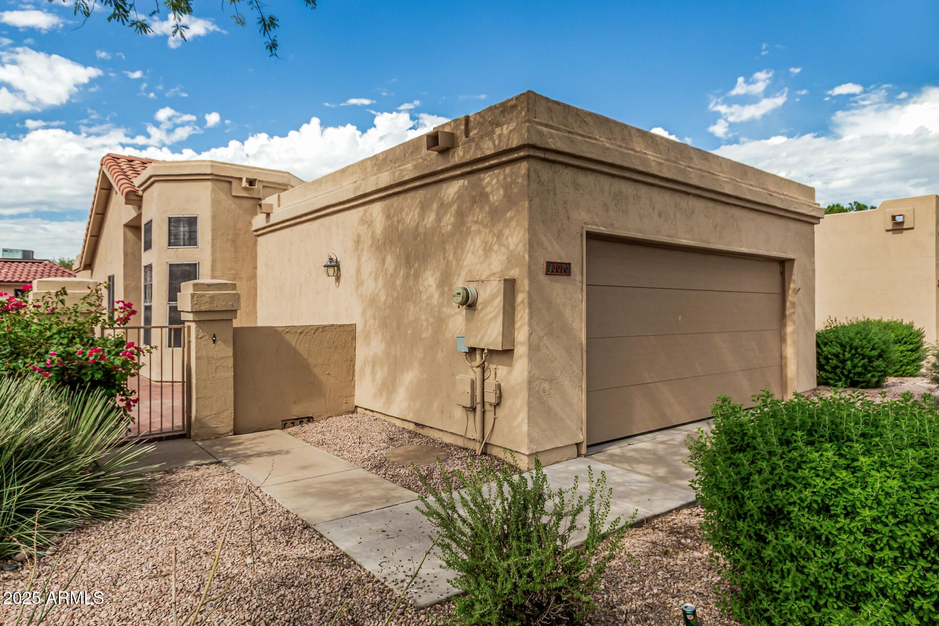 Look NO further! Move into this single-story home offering a perfect blend of comfort and convenience. This 2-bedroom gem displays a 2-car garage, mature landscaping, and a gated courtyard. From the moment you enter, you will find an inviting living room enhanced by vaulted ceilings, pre-wired surround sound, media niches, and sliding glass doors leading to the back patio. The kitchen has built-in appliances, plenty of cabinet space, and a cozy dining area with a lovely bay window. Check out the primary bedroom, which provides plush carpet, a mirrored door closet, direct outdoor access, and a private bathroom with a make-up vanity. The secondary bedroom includes a Murphy bed. Create lasting memories in the open backyard. Hurry! Make it yours while it's available! 55+ communit