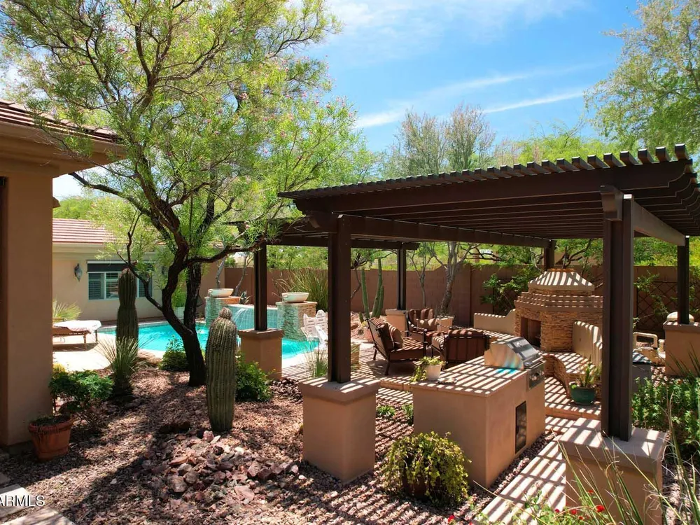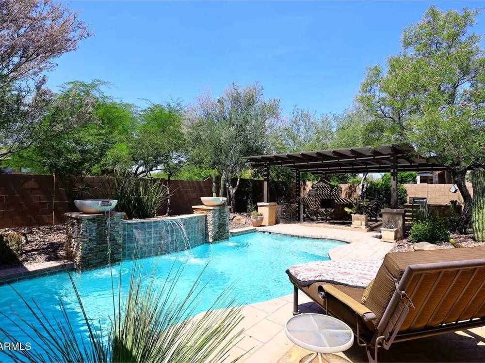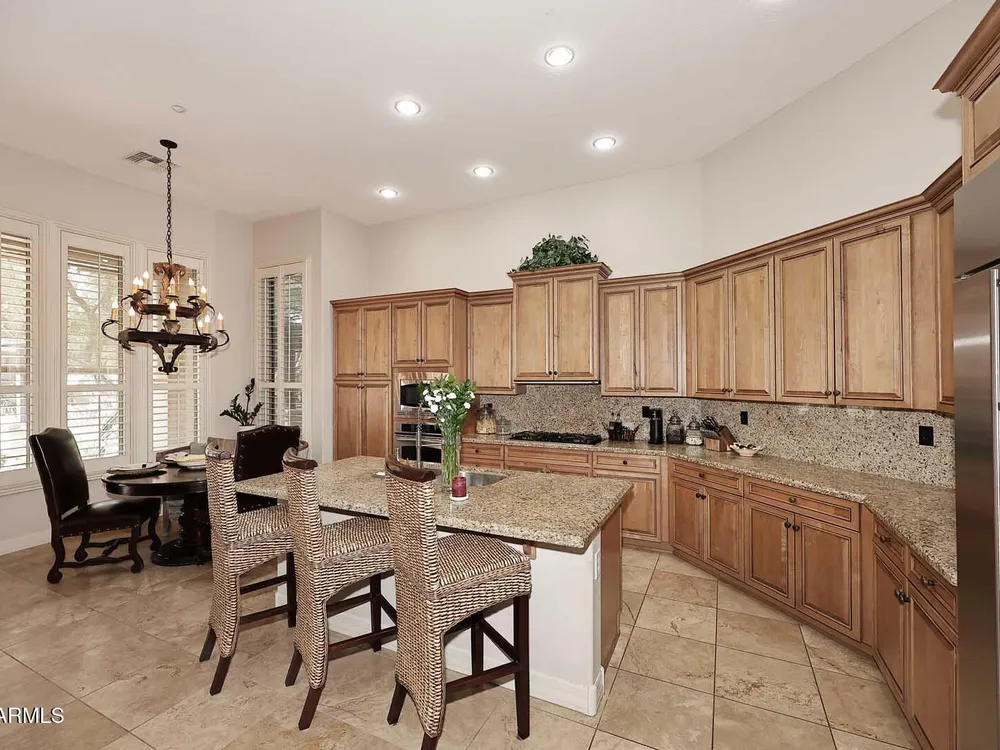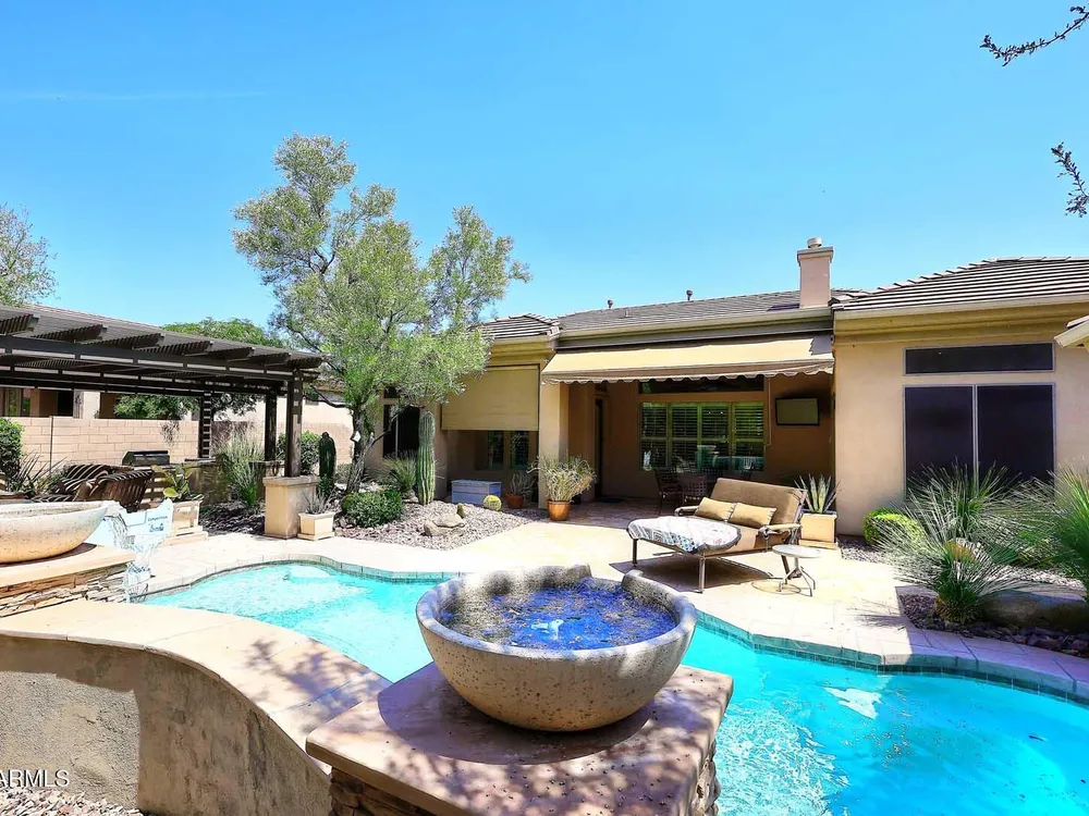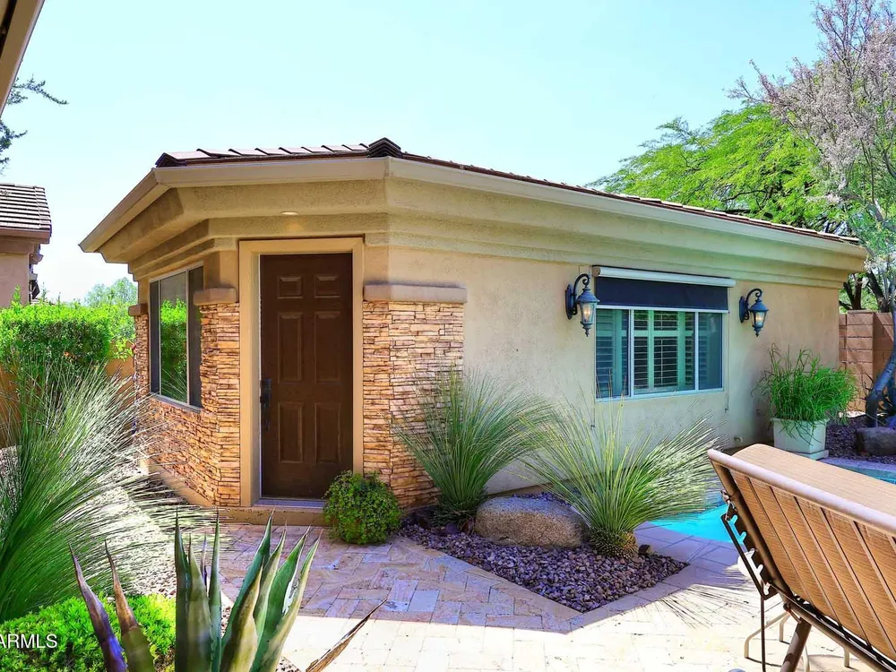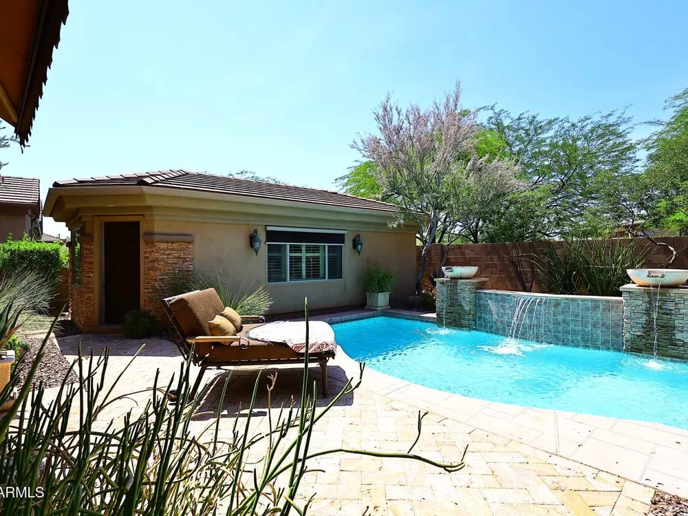 STUNNING HOME, ENTERTAINER'S BACK YARD! Don't miss this 5 bed, 4.5 bath Monterey home with 3,510 sq ft, including a 450 sq ft detached guest casita! A grand iron door leads to a rotunda entry. Flexible front room! The open-concept great room features a chef's kitchen w/ gas range, granite counters, premium appliances, island seating, and hickory cabinets w/ pullouts. The family room boasts a stone fireplace and built-ins. Travertine floors in living areas, hardwood in bedrooms. Spacious primary suite includes a sitting area, soaking tub, dual sinks, walk-in shower, and large closet. Split floor plan offers privacy: two bedrooms share a Jack-n-Jill bath, third is ensuite with patio access. Detached casita with bed, bath, walk-in closet, sitting area, kitchenette. The 3 car garage has attached cabinets, a work bench, and an epoxied floor. Who says dreams don't come true? Hurry to see this spectacular home!