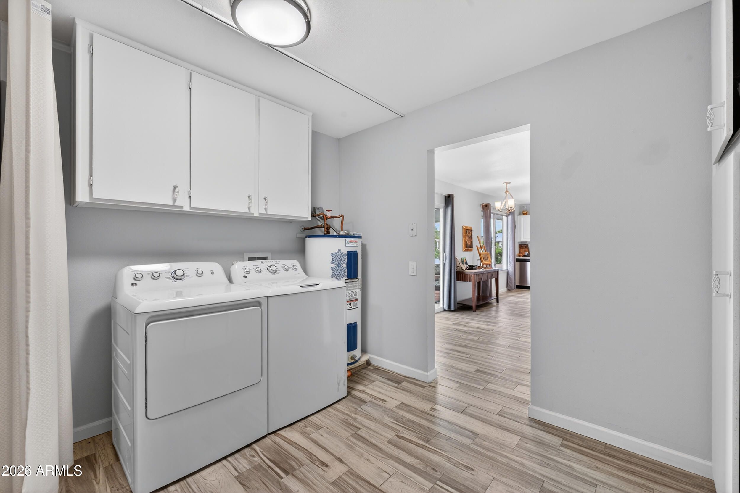 Welcome Living in Sun City West. This bright 2 bed, 2 bath home offers an open layout with plank style flooring, neutral paint, and a clean, modern feel. The kitchen features white cabinetry, stainless steel appliances, and a large island that keeps everyone connected to the dining and living spaces. All windows include roller shades! Relax in the spacious primary bedroom and enjoy updated baths, including a tiled walk in shower. Inside laundry with extra cabinetry adds everyday convenience, plus an attached 2 car garage. Out back, a covered patio with pergola style shade overlooks an expansive low maintenance yard ready for your outdoor seating, garden beds, or your own personal touches. Enjoy nearby recreation centers with pools, golf & community events! This home is a must-see!