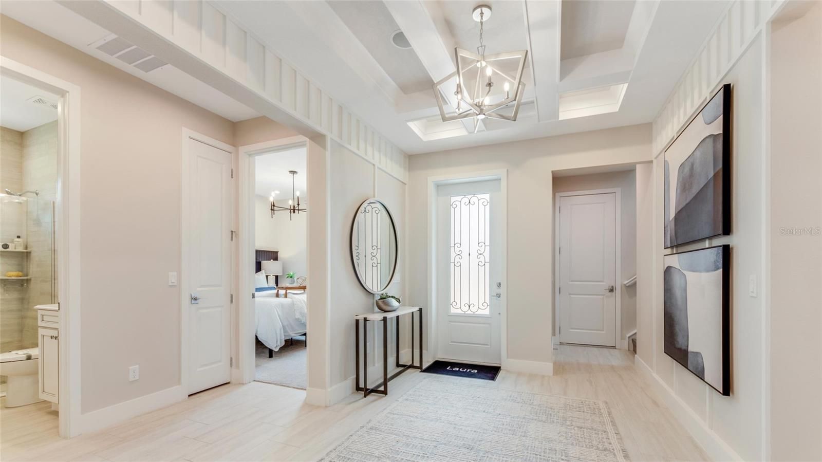 Pre-Construction. To be built. Experience Cresswind DeLand—an active adult, gated community just ten minutes from Historic Downtown DeLand, Florida. Perfect for buyers seeking a vibrant, resort-style lifestyle, this neighborhood offers exclusive amenities including a lakeside clubhouse overlooking Lake Winnemissett. Enjoy pickleball, tennis, scenic walking trails, a resort-style pool and spa, resistance pool, and lively event areas designed for relaxation and recreation. Stay fit with the innovative Cresswind SmartFit Training Center, featuring EGYM technology for personalized, state-of-the-art twenty-minute workouts, twice a week. A dedicated, full-time Lifestyle Director keeps the social and activities calendar full, ensuring residents have opportunities for entertainment, wellness, and connection suited for the 55+ lifestyle. Cresswind DeLand is ideally located near top dining, recreation, and entertainment venues. Residents can explore the renowned Main Street in DeLand, with its thriving local art scene, unique shops, and cultural attractions, as well as enjoy the nearby natural springs and parks. For those searching for energy-efficient homes, low-maintenance living, and a pet-friendly environment, Cresswind DeLand offers the perfect blend of comfort, convenience, and dynamic community living for active adults. Discover the exceptional Laura floorplan. This dream home features 3 bedrooms, 3 full bathrooms, a versatile flex room ideal for a home office or guest suite, and a large 2-car garage with ample storage space for all your needs. Step inside and experience elegant living accented by luxury vinyl plank flooring throughout the main living and flex areas, creating a warm and stylish ambiance. Each bathroom offers upscale tile, enhanced plumbing fixtures, and convenient layout. The owner’s suite bath and bathroom will set new standards in luxury and relaxation. The chef-inspired kitchen is a centerpiece of this thoughtfully curated home, boasting frameless European-style cabinetry, a knee wall cabinet wrap, and a 24-inch-deep cabinet above the refrigerator with a side panel ensures extra storage and optimal functionality. 3cm quartz countertops and specialty-finish backsplash add sophistication and contemporary flair, enhancing everyday living and entertaining. The laundry room is elevated with decorative floor tile, blending practicality with artistry. Enjoy seamless indoor-outdoor living with a dramatic sliding glass door that opens to the covered lanai—your private sanctuary for relaxation or gatherings.