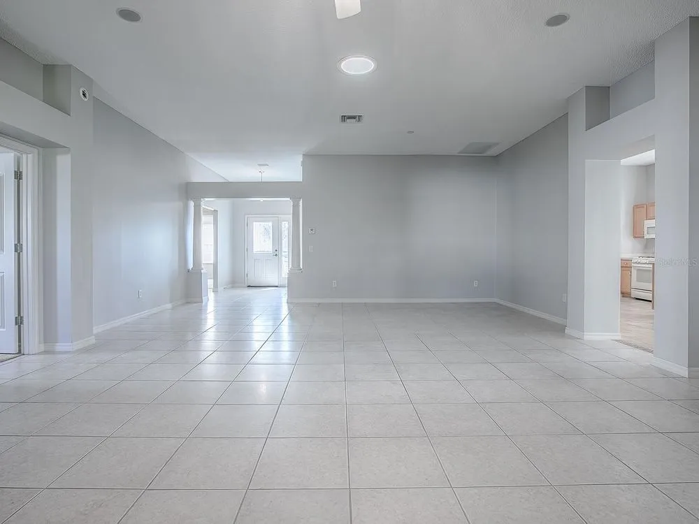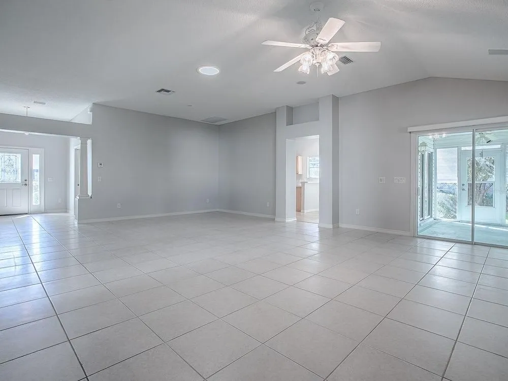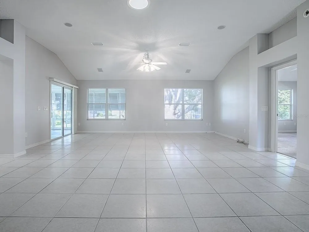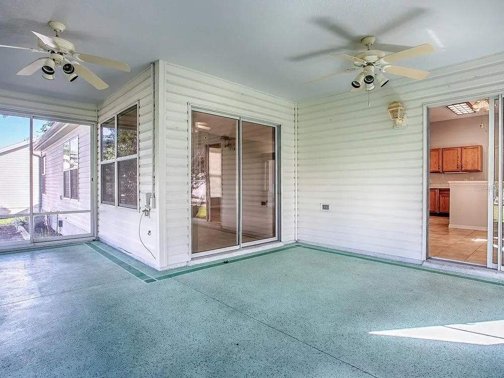 Village of Santo Domingo the unique 2-bedroom, 2-bathroom Covington Model with 1,762 square feet of living space plus a bumped out - wrap around residential ENCLOSED LANAI. Whole inside of home has been Freshly Painted. Ceramic tiled throughout living area. Primary Suite is spacious and has two walk in closets, a double sink vanity and step in shower. Your guests will be comfortable in their spacious guest bedroom and private bathroom. Ample storage throughout this good-sized home. Garage is OVERSIZED to accommodate your car and golf carts. Enjoy the open backyard for privacy. This is a very special part of The Villages that has friendly neighbors and a quiet setting but still close to Spanish Springs Town Square, as well as the Savanah Center for entertainment.