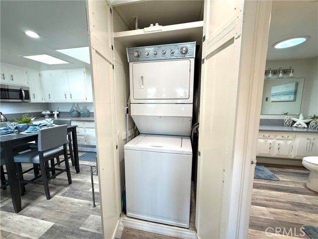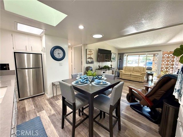 Elegant One-Bedroom Retreat in Mutual 9 Step into a bright, beautifully upgraded one-bedroom, one-bath home in sought-after Mutual 9, perfectly located with drive-up convenience and parking right in front. This expanded unit combines classic Leisure World charm with modern style, featuring new luxury vinyl plank flooring, fresh neutral paint, and a tiled front porch for outdoor enjoyment. Inside, you’ll find a light-filled living space accented by a large electric skylight with a rain sensor, two additional solar tubes, and new energy-efficient windows. Mini-split heat and A/C units in both the living room and bedroom ensure year-round comfort. The upgraded kitchen features all new stainless appliances including a wall oven, cooktop, and refrigerator, enhanced by a subway tile backsplash, quartz countertops, new fixtures, and a large skylight that fills the space with natural light. The bathroom is equally refined, offering a quartz vanity, new fixtures, a new toilet, and a solar tube for soft daylight. A stackable washer and dryer are conveniently tucked into the hallway closet. Enjoy upgraded blinds inside and on the porch, a secure storage closet perfect for a bike or tools, and a welcoming screened entry door that lets the ocean breeze flow through. This home offers the perfect balance of comfort, sophistication, and practicality—ideal for those seeking a turnkey home in one of Leisure World’s most desirable Mutuals. Mutual (Carport 110, Space 3) SENIOR COMMUNITY-OFFERS THE FOLLOWING AMENITIES: 9 Hole Golf Course, Swimming Pool, Jacuzzi, Gym, Table Tennis, Shuffle Board, Billiards, Pickle Ball, and Bocce Ball courts. Amphitheater, 6 Clubhouses featuring: Art Room, Sewing, Crafts, Wood Shops, Lapidary, Pool Tables, Over 200 Clubs, LWSB is a Security-Guard-Gated Community. Also Library, Friends of Library Bookstore, Credit Union, Health Care Center, Pharmacy and Post Office.