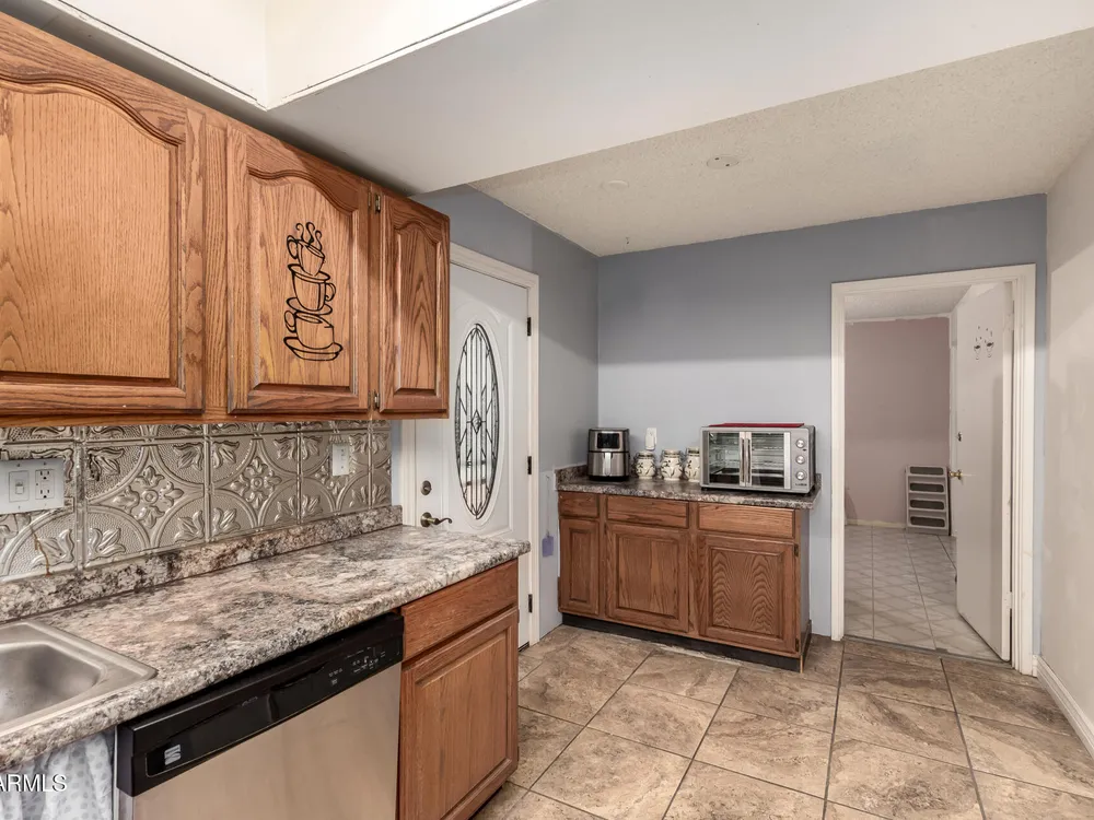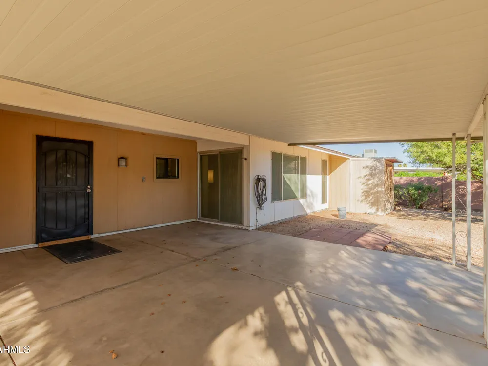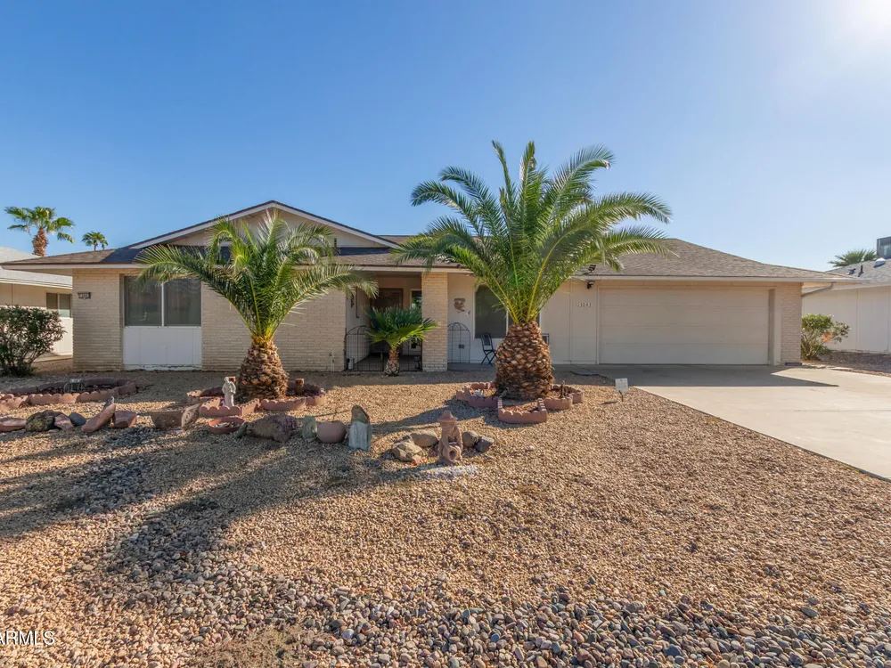 Discover this charming 2-bedroom gem with unlimited potential in Sun City West! Seize this chance to reimagine a charming 2-bedroom, 2-bathroom residence into your ideal desert haven, perfectly situated in the heart of Sun City West. Step through the front door into a welcoming, generously sized living area, ideal for both relaxed evenings and lively gatherings with friends and family, with natural light pouring through a sliding glass door, which opens directly to the backyard. The kitchen, complete with a convenient eat-in dining nook, flows effortlessly to the back patio, creating the perfect setting for savoring your morning coffee or enjoying al fresco meals under the Arizona sky. With a touch of creativity and modernization, this kitchen could become a culinary haven tailored to your unique style and needs. This home boasts two well-proportioned bedrooms, including a serene primary suite featuring a private bathroom and a practical vanity area for added convenience. The impressively large laundry room, which doubles as a versatile space with plentiful storage and the potential to serve as a dedicated craft or hobby area. This flexible room adapts to your lifestyle, whether you need extra workspace or additional storage solutions. Step outside to the backyard, a blank canvas awaiting your vision. Whether you dream of cultivating a lush, vibrant garden, designing a tranquil patio retreat, or crafting a low-maintenance desert landscape, this outdoor space offers limitless opportunities to create your perfect oasis. Nestled within the highly sought-after Sun City West community, this home grants access to an array of premier amenities, including world-class golf courses, state-of-the-art recreation centers, sparkling swimming pools, fitness facilities, and a vibrant calendar of social activities. With shopping, dining, and medical services just minutes away, convenience and leisure blend seamlessly in this prime location.