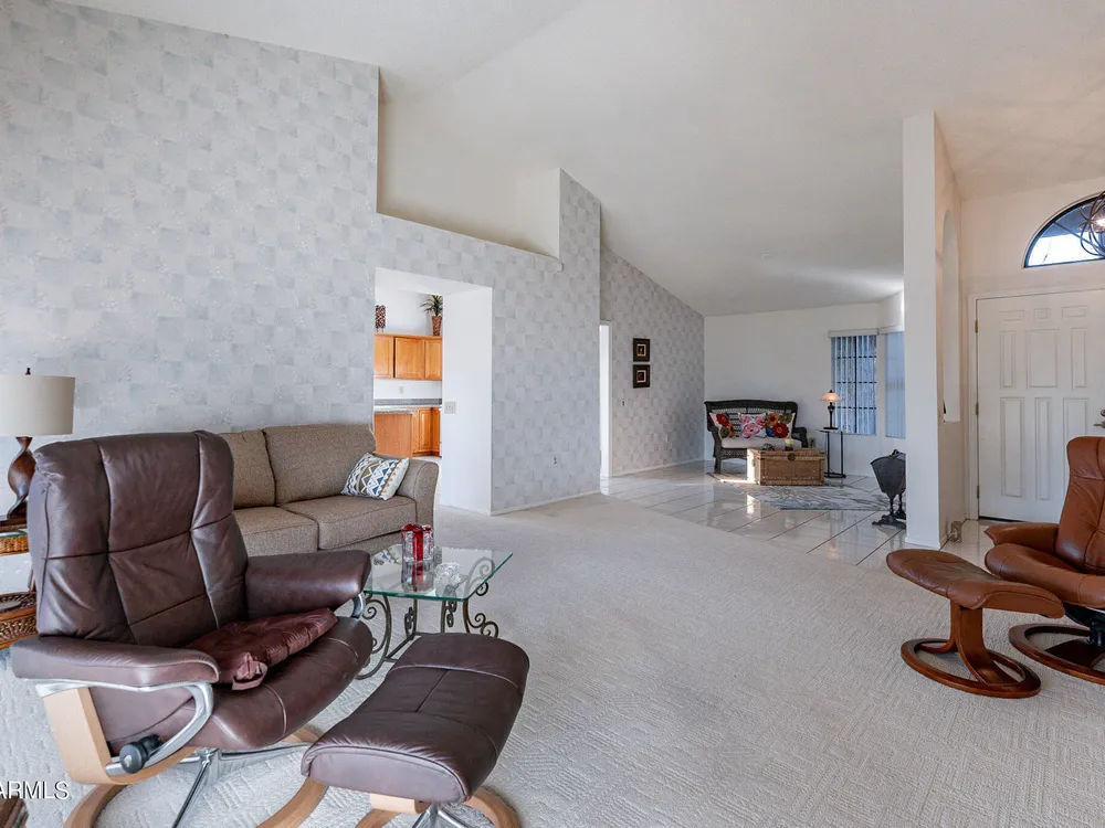 Welcome Home to this beautifully maintained ''Aspen'' floor plan that is nestled in the peaceful community of Sun City West, featuring mature landscaping with lush green grass both in the front and backyards. Inside, you'll find an open and airy floorplan with vaulted ceilings that enhance the spaciousness of the home. Large tile flooring extends throughout the hallways, kitchen, and Arizona/family room, adding a touch of elegance and durability. The home also comes with a double security door for added peace of mind. This home is perfect for those looking for a blend of comfort, privacy, and low-maintenance living. Don't miss the opportunity to make this lovely property your new home!