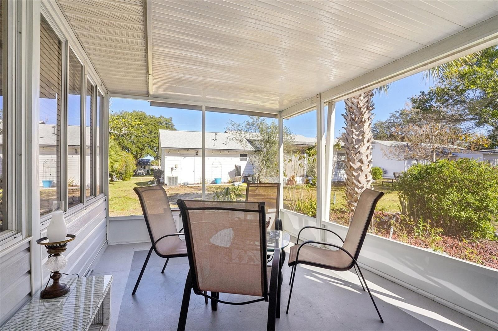 Ready for your next chapter in the highly sought-after Scottish Highlands, a friendly, active community known for its outstanding amenities and welcoming neighbors? This beautifully maintained home offers the perfect blend of comfort, style, and location. Boasting 3 spacious bedrooms plus a Sun Room, this home was designed for both everyday living and entertaining. The screened lanai and additional patio invite you to enjoy Florida living at its finest — whether you're sipping your morning coffee overlooking the peaceful pond or hosting friends for an evening under the stars. Inside, you’ll love the large, well-appointed kitchen with abundant counter and cabinet space, ideal for both casual meals and culinary creativity. The primary bedroom is oversized, with plenty of room for a sitting area or home office, while ample storage throughout ensures everything has its place. With no carpet — only attractive laminate and tile flooring — the home is both stylish and easy to maintain. Recent updates include fresh interior paint, a newer roof and A/C, giving you peace of mind for years to come. The high ceilings, open floor plan, and bright, sunny interior create an airy, welcoming atmosphere you’ll feel the moment you step inside. An inside laundry could easily be arranged, adding even more convenience. Perfectly situated at the end of a quiet cul-de-sac, this home offers privacy along with serene pond views and truly wonderful neighbors. The low HOA fee is a major bonus, covering cable, internet, and sewer — exceptional value for carefree living. Located just minutes from Mount Dora and The Villages, you’ll enjoy easy access to charming shops, dining, hospitals, major shopping, and nearby airports — all while living in a peaceful, amenity-rich community. Don’t miss your opportunity to be moved in before winter is over. Call today for your private showing and start living the lifestyle you deserve!