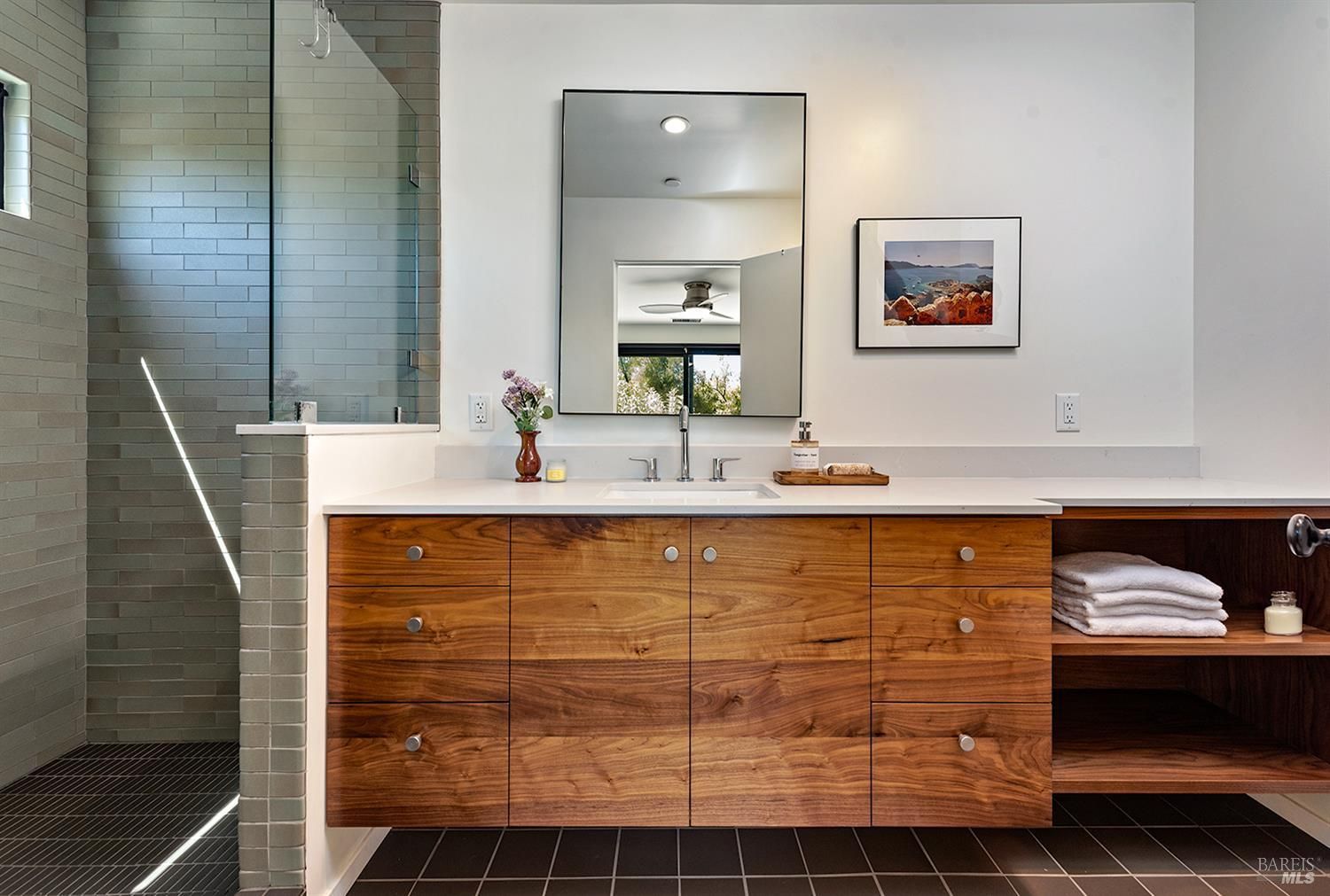 Welcome home to 1306 Pinon Drive within the coveted 55+ community in Healdsburg. This single-story gem is a 2-bedroom, 2.5 bathroom recently remodeled home. Step inside a contemporary floor plan with raised ceilings. The gourmet kitchen is a dream, featuring upscale appliances such as Subzero refrigerator, Thermador oven, and a unique outdoor bar pass-through. Bask in the elegance of oak floors, complemented by custom-built shelving, Fleetwood doors, and an expansive deck with motorized shades, ensuring a seamless indoor-outdoor living experience. This home is facing the open space and has direct access to the Russian River.