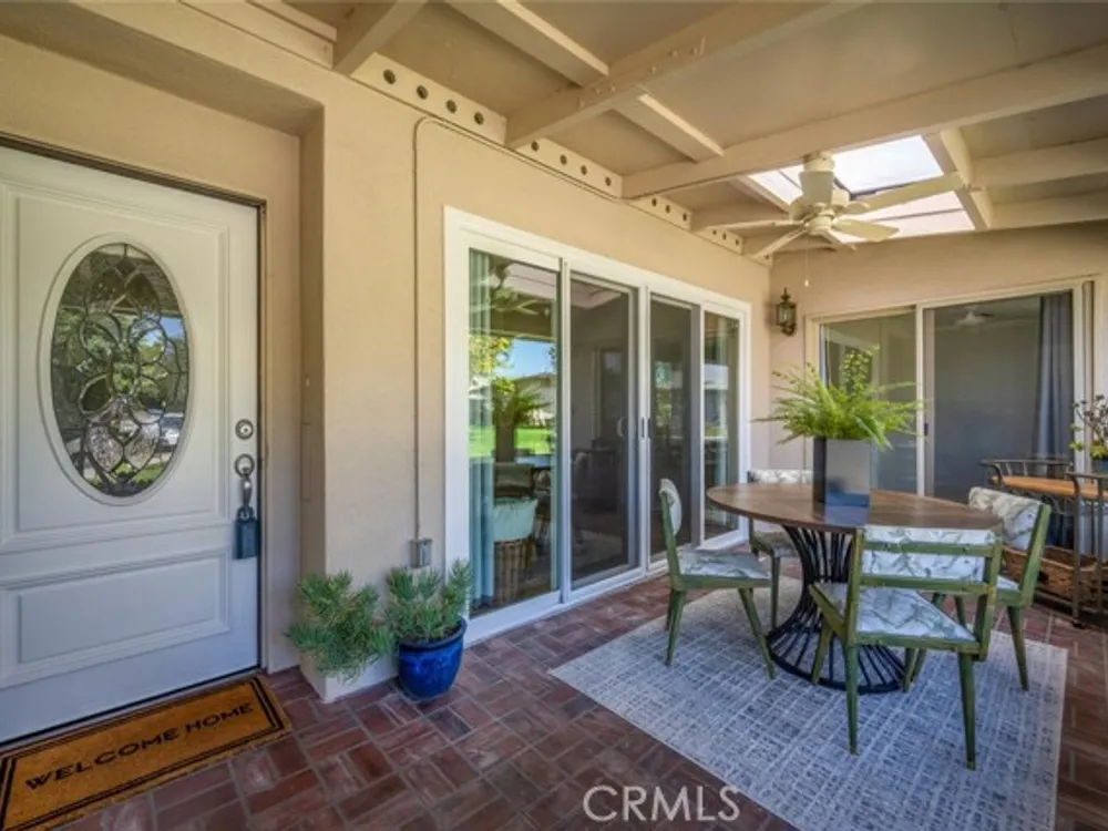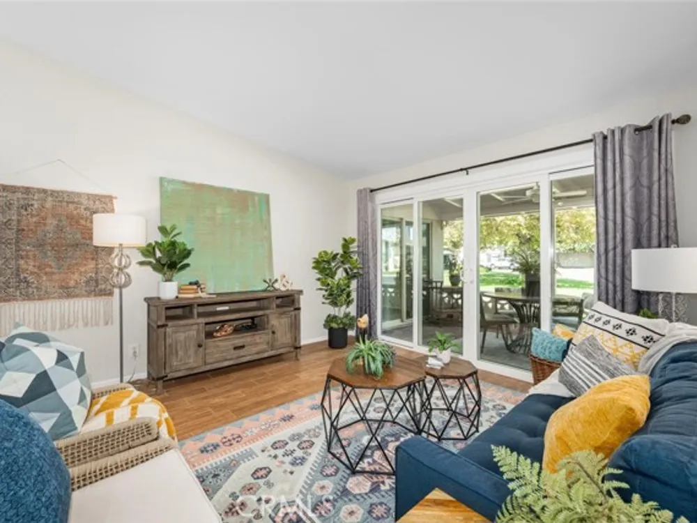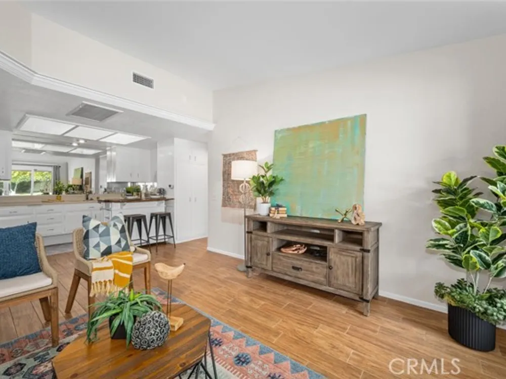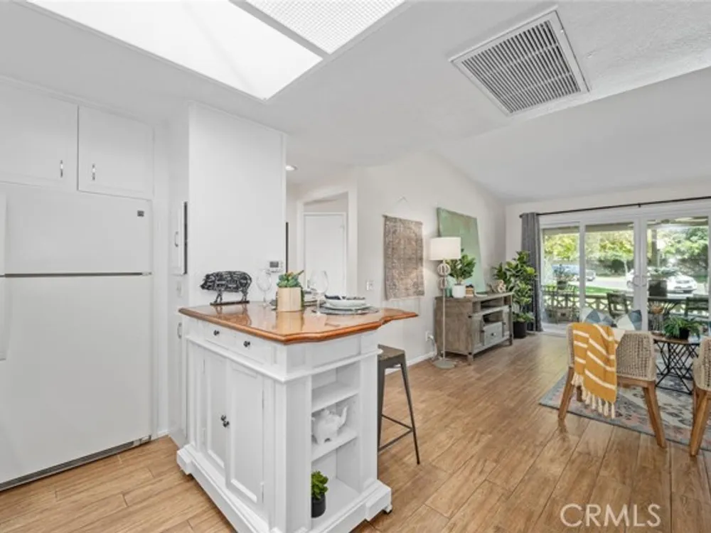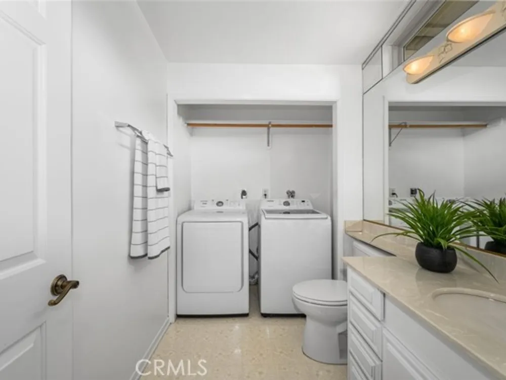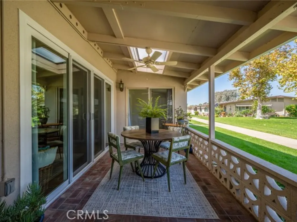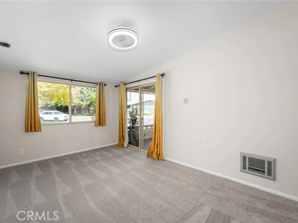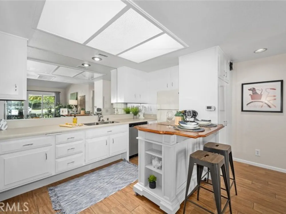 Welcome to this charming and unique 2-bedroom, 1.5-bath home in Mutual 11 – a truly special find! With a one-of-a-kind floor plan designed for both comfort and convenience, this partially expanded residence offers thoughtful upgrades and inviting spaces throughout. As you arrive, you're greeted by a brick-style patio that overlooks a greenbelt framed by mature trees-perfect for relaxing outdoors while also having street parking immediate to the unit. Best of both worlds! Step inside to discover elegant wood-look porcelain tile plank flooring that flows seamlessly through the open living and kitchen areas. The kitchen is bathed in natural light from a large overhead skylight and features added conveniences including a built-in dishwasher and microwave. Just off the entryway, you'll find a rare bonus: a convenient half-bath paired with a side-by-side washer and dryer-an uncommon luxury in this community. The guest bedroom features double-door entry, new carpet and a large window, offering both light and privacy. Tucked away for ultimate tranquility, the primary suite includes a spacious double-door walk-in closet, new carpet and a full bath with a shower/tub combo, new vinyl plank flooring, and another skylight overhead. Additional highlights include central HVAC, dual-pane windo