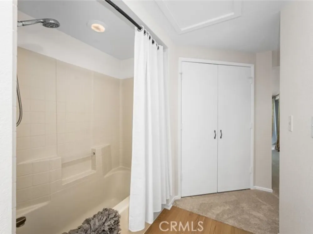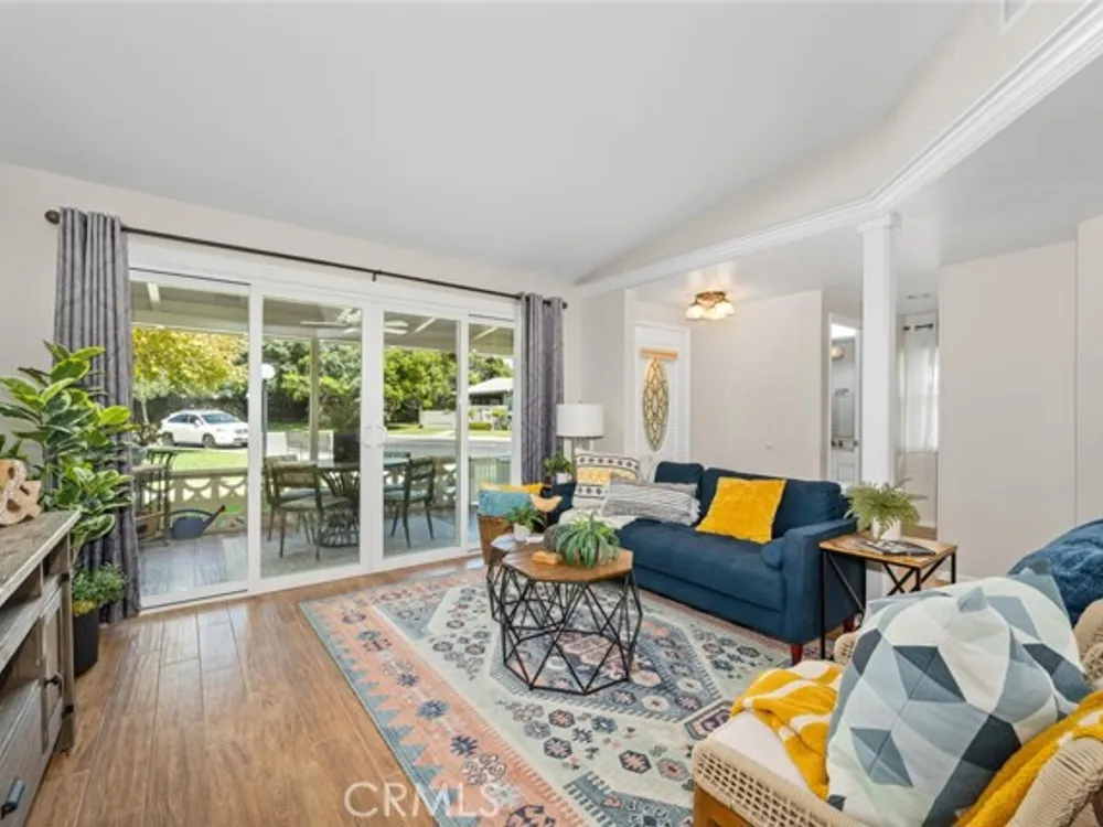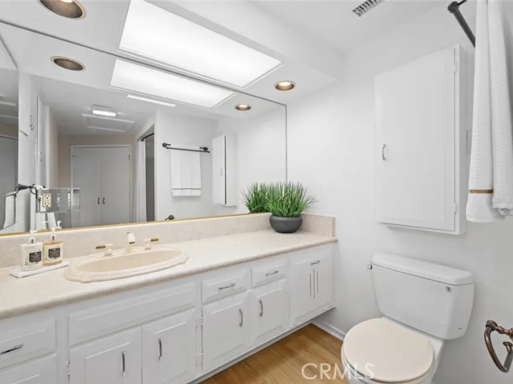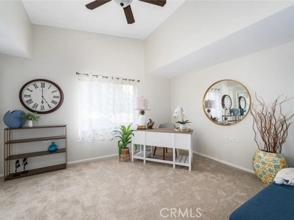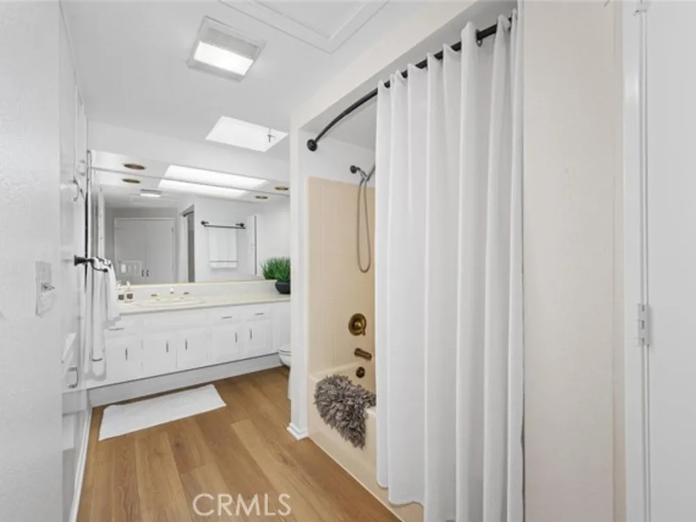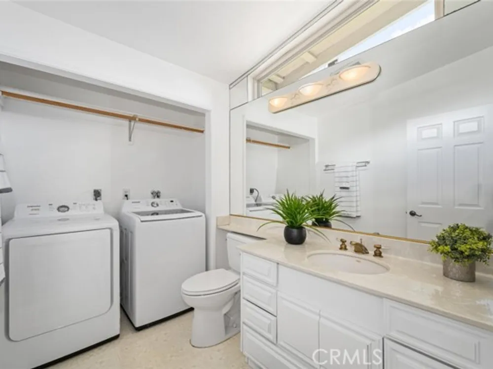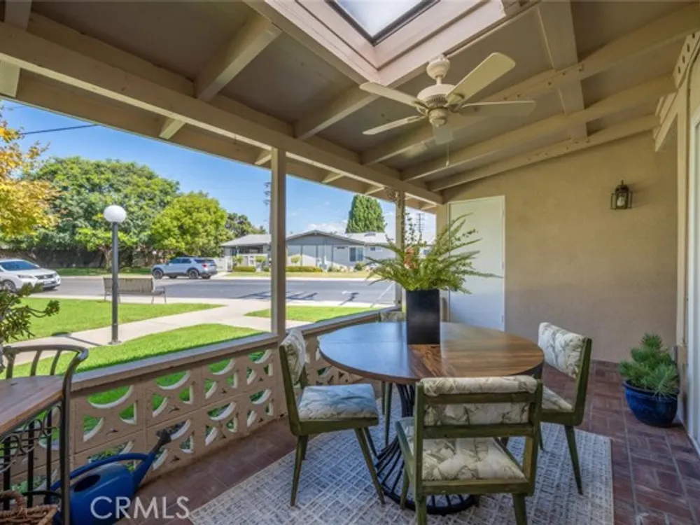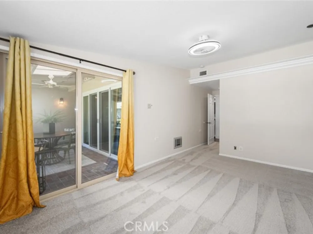 Welcome to this charming and unique 2-bedroom, 1.5-bath home in Mutual 11 – a truly special find! With a one-of-a-kind floor plan designed for both comfort and convenience, this partially expanded residence offers thoughtful upgrades and inviting spaces throughout. As you arrive, you're greeted by a brick-style patio that overlooks a greenbelt framed by mature trees-perfect for relaxing outdoors while also having street parking immediate to the unit. Best of both worlds! Step inside to discover elegant wood-look porcelain tile plank flooring that flows seamlessly through the open living and kitchen areas. The kitchen is bathed in natural light from a large overhead skylight and features added conveniences including a built-in dishwasher and microwave. Just off the entryway, you'll find a rare bonus: a convenient half-bath paired with a side-by-side washer and dryer-an uncommon luxury in this community. The guest bedroom features double-door entry, new carpet and a large window, offering both light and privacy. Tucked away for ultimate tranquility, the primary suite includes a spacious double-door walk-in closet, new carpet and a full bath with a shower/tub combo, new vinyl plank flooring, and another skylight overhead. Additional highlights include central HVAC, dual-pane windo