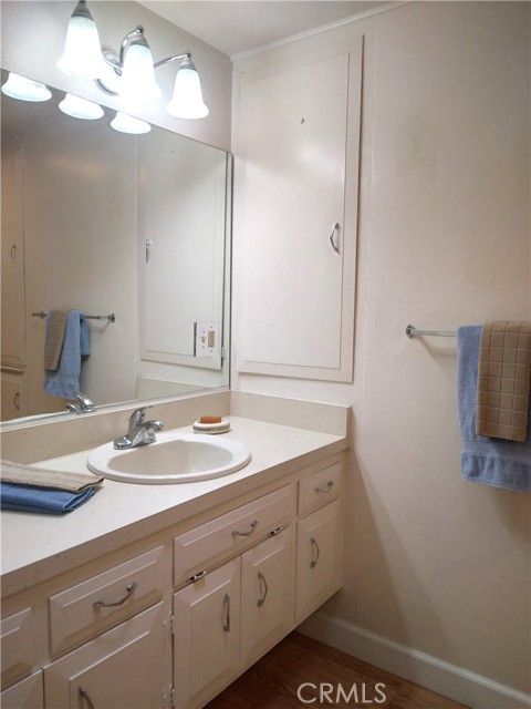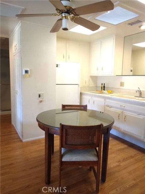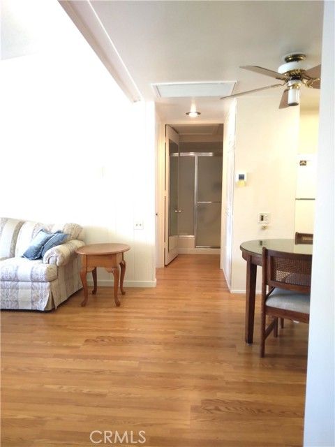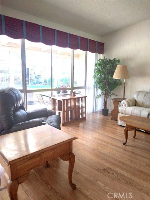 Be a part of the city of Seal Beach. There's plenty to do in Leisure World with the 9 hole golf coarse, renovated swimming pool and entertaining Amphitheater with the live band concerts in the summer. The fitness center has a variety of equipment and there are classes throughout the week. If arts and crafts are of interest, there are all types and the list of all the clubs can be found in the Leisure World newspaper. In the Library there's a computer lab and for convenience there's a Post Office annex. This south facing 2 bedroom 1 bath unit has central air for year around comfort. There's laminate flooring throughout, as well as laminate kitchen and bath counters. The large windows let in the sun and are emphasized by a cornice above the blinds for a finished look. Entertain on the L shaped tiled patio year around, it's light and roomy with a skylight, a walk-in storage closet and an open garden ready to be decorated. Within walking distance is street parking, carports, laundry and greenbelt. The carport has a large upper cabinet for extra storage. For easy driving access it's situated between the main and north gates.