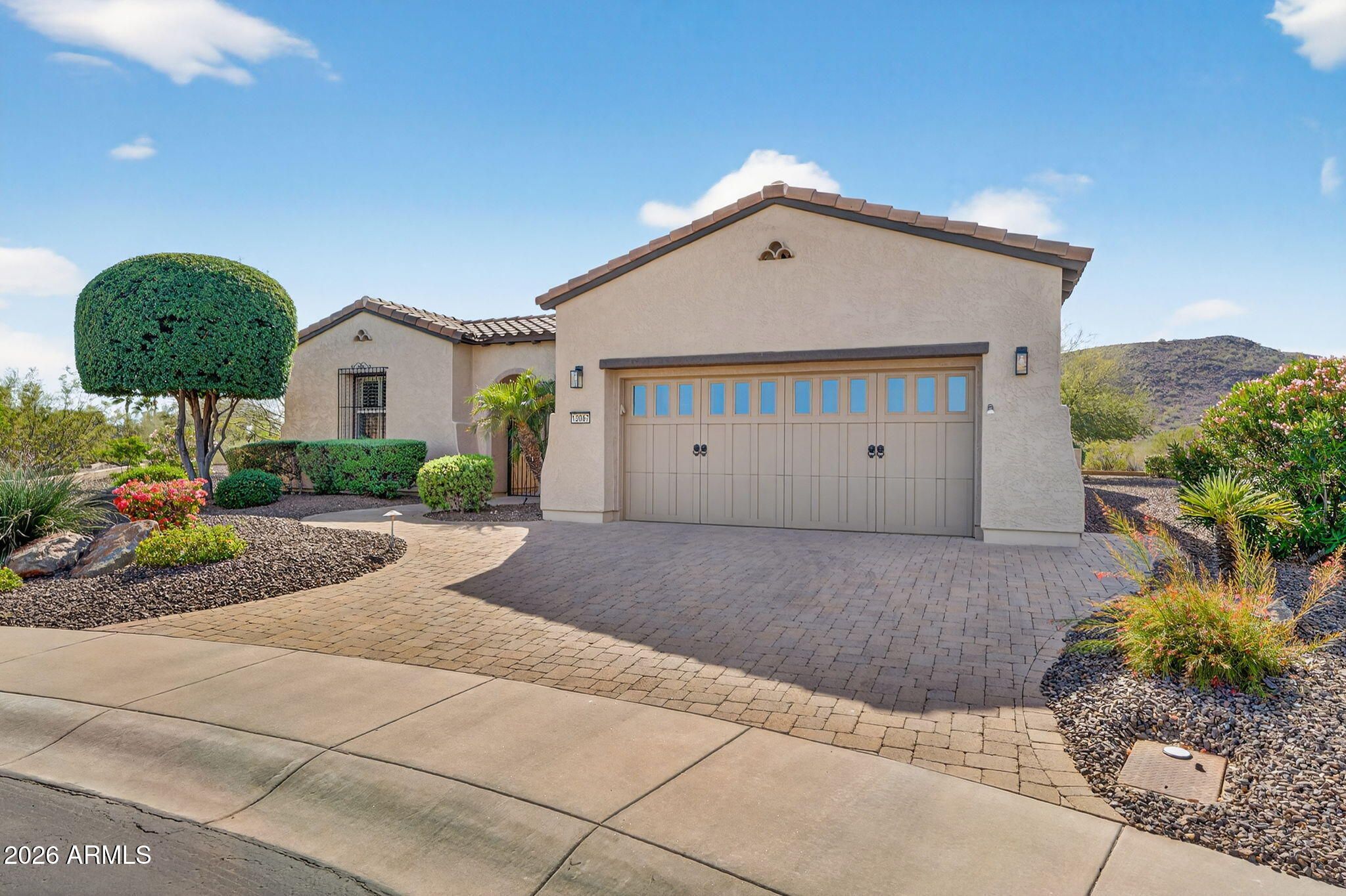 Located on a cul de sac lot with incredible unobstructed mountain views, this turnkey Peoria home offers comfort and style. A welcoming entry courtyard and low maintenance landscaping create great curb appeal. Inside features an open floorplan with stainless steel appliances, breakfast bar, and eat in kitchen. The living area connects to a private office. The primary suite offers large windows, dual sinks, walk in closet, step in shower, and a private exit to the backyard. Enjoy a covered patio, built in barbeque, and spacious yard with mountain views, creating a peaceful outdoor retreat perfect for relaxing and enjoying the fresh air. Community amenities include golf, pools, tennis, pickleball, clubhouse, fitness center, and scenic walking paths. Don't miss this incredible opportunity.