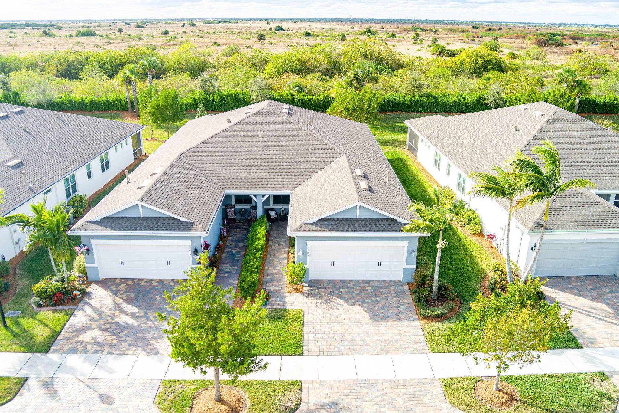 Exciting opportunity in Del Webb at Tradition! Discover this beautifully designed 2-bedroom, 2-bathroom CBS villa featuring a versatile flex room and a 2-car garage, perfectly situated on a serene preserve lot in the highly sought-after, gated 55+ community of Del Webb at Tradition. Built in 2022 and fully upgrade! You can't build new for this price! The kitchen features soft-close cabinetry, premium Kitchen Aid dishwasher and custom pantry shelving. The primary suite includes dual sinks, a frameless glass walk-in shower, and oversized walk-in closet. This home offers a spacious open floor plan with modern upgrades throughout. The Flex room with double doors is ideal as an office or for guests. Built-in laundry cabinetry, new whole-house water softener, and a screened patio overlooks a quiet backyard. Enjoy resort-style living at Del Webb at Tradition with a clubhouse, fitness center, pool, tennis and pickleball courts, and an active social calendar. Centrally located near shopping, dining, and Cleveland Clinic.