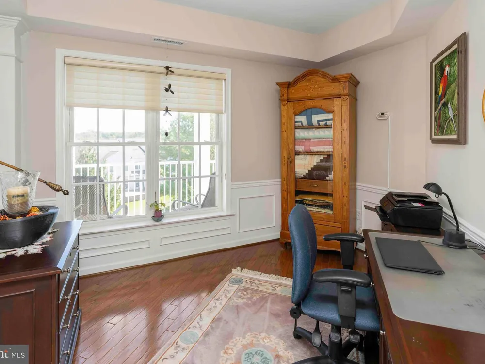 Step into comfort, style, and low-maintenance living in this beautifully appointed corner unit in the sought-after 55+ gated community, The Reserve at Gwynedd. This spacious condo enjoys a prime location overlooking lush open space, with large windows on multiple sides that fill the home with natural light throughout the day. Inside, you'll find an elegant open layout with warm-toned hardwood floors, high ceilings, and timeless finishes. The living and dining areas flow seamlessly, offering plenty of space to relax or entertain. The dining room features a tray ceiling and wainscoting, adding architectural interest and charm. The kitchen has ample cabinetry and plenty of workspace, making it perfect for both everyday cooking and entertaining. Adjacent to the kitchen and living area is a dedicated office space, ideal for working from home or managing personal tasks. The bright and inviting primary suite features a tray ceiling, a generous walk-in closet, and a well-appointed en-suite bathroom with a double vanity, walk-in shower, and soaking tub. Ceiling fans in both bedrooms provide added comfort. A second bedroom offers comfortable accommodations for guests or family, with a full hall bath conveniently nearby. Enjoy your morning coffee or unwind in the evening on the private balcony with peaceful green views. Additional features include in-unit laundry, garage parking, and secure building access with elevator convenience. Residents of The Reserve at Gwynedd enjoy resort-style amenities, including a clubhouse, indoor and outdoor pools, a state-of-the-art fitness center, game and card rooms, and a full calendar of community events and social activities. All of this is set within a beautifully landscaped, well-maintained community close to shopping, dining, and major roadways. Filled with natural light and thoughtfully designed spaces, this corner unit offers a welcoming home in a vibrant, active community.