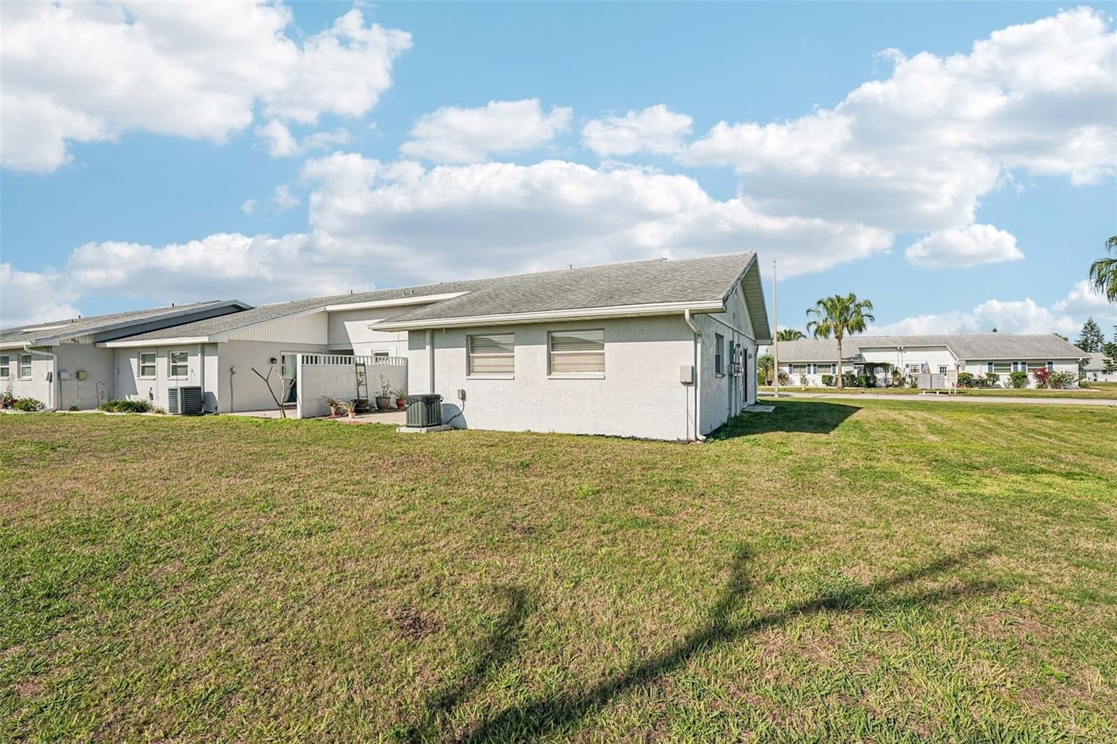 One or more photo(s) has been virtually staged. Welcome to the vibrant 55+ lifestyle of Sun City Center! This beautifully maintained 2-bedroom, 2-bathroom condo offers a rare combination of modern style and outdoor convenience, featuring a private driveway and a covered lanai for dedicated parking. As you step inside, you’re greeted by elegant dark wood laminate flooring and an open-concept living area bathed in natural light from large glass sliders that showcase peaceful backyard views. The kitchen is a standout, boasting contemporary stainless steel cabinets and an abundance of storage for the home chef. The primary suite serves as a true retreat with a spacious closet and an en suite bathroom featuring a standalone shower. Your guests will feel equally at home in the second bedroom, which offers private access to the back patio through its own set of sliding doors. This outdoor oasis is designed for relaxation, complete with a privacy partition and a "roof mate" to ensure a secluded, shaded environment. Perfectly situated to enjoy world-class community amenities, this home is the ultimate Florida escape. You’ll love Sun City Center with its amazing facilities, pools, and clubs just waiting for you to enjoy. Nestled between Sarasota and Tampa, this location offers a convenient ride to airports, great shopping, dining, and professional entertainment. With easy access to award-winning, sandy beaches, this home provides the best of all worlds without the stress of big city life. Leave it all behind and enjoy your new life here in one of Florida’s most affordable 55-and-better communities!