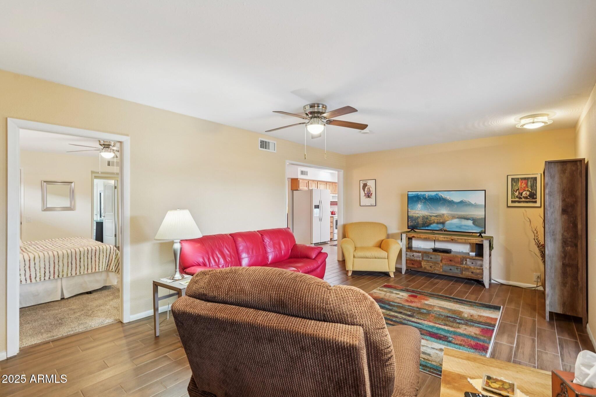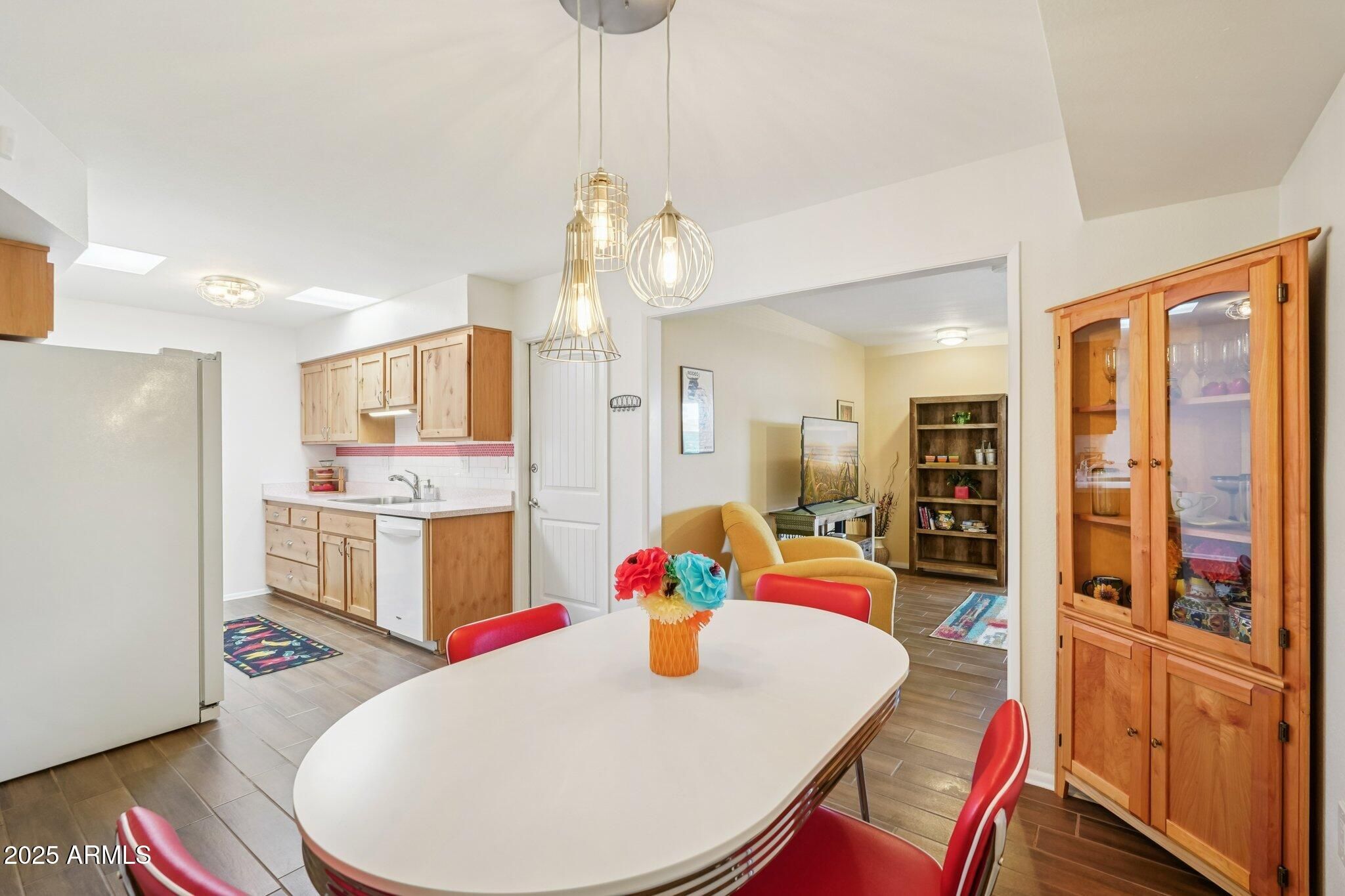 Oh so Cute! Updated thru-out * NEW Kitchen Remodel 2021 includes Refaced Cabinets, Counters, Backsplash, Sink, Faucet & Water Filtration * Microwave, Dishwasher, Frig 2023 * Bathrooms updated Shower resurfaced 11/24* Great size Bedrooms w/ NEW Carpet & Custom Closets 2021 * All NEW Light Fixtures, Outlets & Switches * 4 NEW Ceiling Fans * Popcorn Ceilings removed * NEW Interior Paint * NEW Interior Doors 2021 * NEW Tile 2021 * Dual Pane Windows & Slider w/ NEW Shades & Blinds * NEW HVAC 2025 * NEW Water Heater 2024 * NEW Washer/ Dryer 2025 * NEW $1,000 Trex Patio Gate for Golf Cart * NEW skylights 2021 * Roof repairs & recoated 2021/ Insp 2025 NEW Alarm System * Some furnishings, etc. can be included * 1 Pet up to 25 lbs * NO RENTALS * Move-in Ready * This home has so much to offer * WOW - The list goes on & on for this one * Welcome to the Active Adult Golf Community of Sun City! The Original Fun City! Sun City offers many amenities & low taxes! 8 Rec Centers with swimming pools, lap pools, walking pools, Hot tubs and every activity, work shop, & craft you can think of! Bowling! Pickleball! Shuffle Board! Pool Tables! Darts! Tennis! Ground Bowling! Mini Golf! Lake Activities! 9 Public Golf Courses & Reduced prices with Rec Card. 3 Private Golf Courses open to the public. And much more! Close to shopping, restaurants & entertainment! Close to Spring Training Baseball. Close to Arrowhead Mall, Lake Pleasant and all of its growing amenities & restaurants nearby! Close to Grand Ave & 101 access! The list goes on & on! AGE RESTRICTED RETIREMENT COMMUNITY. ONE PERSON MUST BE 55 YEARS OLD AND NO ONE UNDER 19 YEARS OLD. ANYONE UNDER 19 CAN VISIT - SCHOA RESTRICTIONS APPLY.