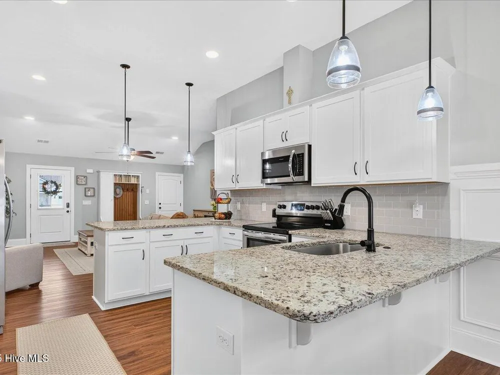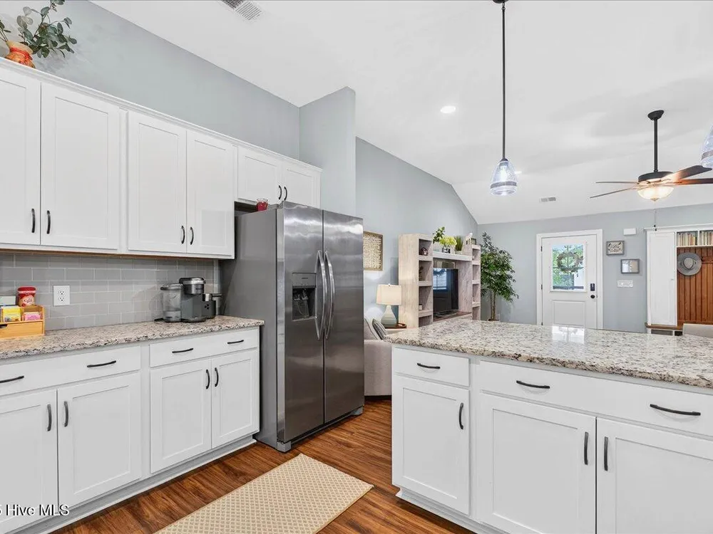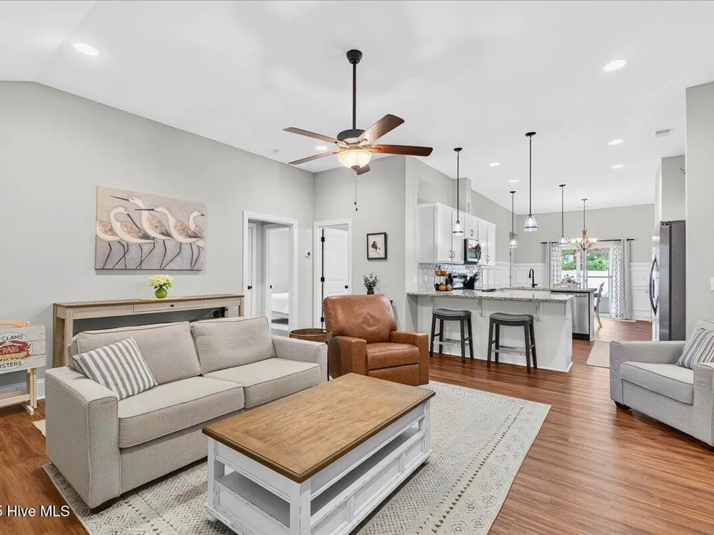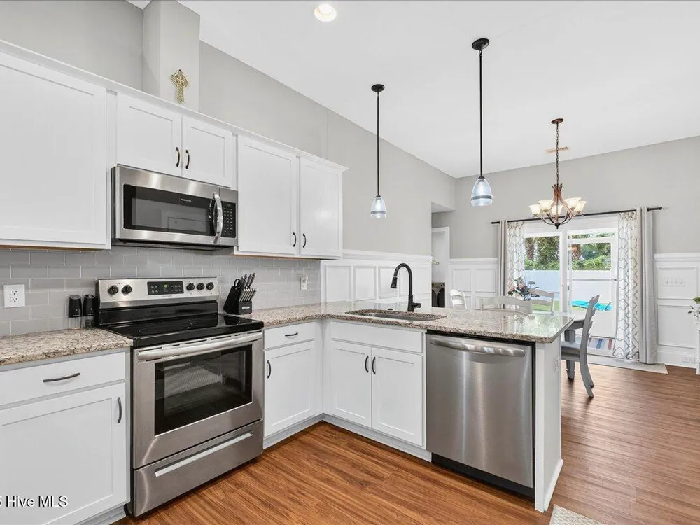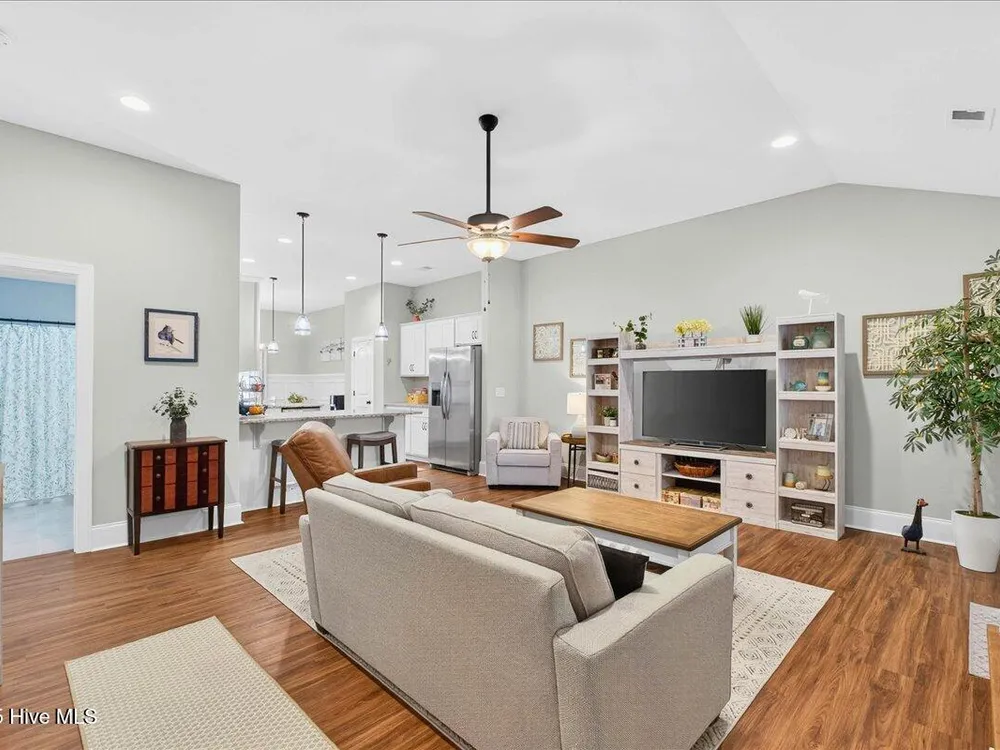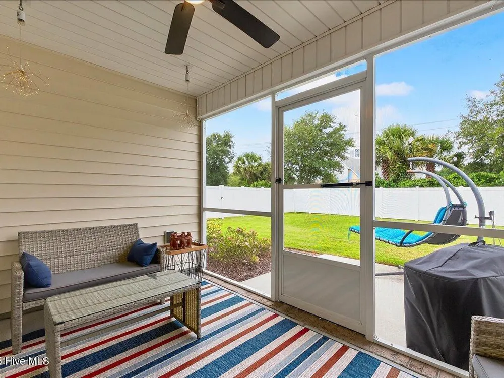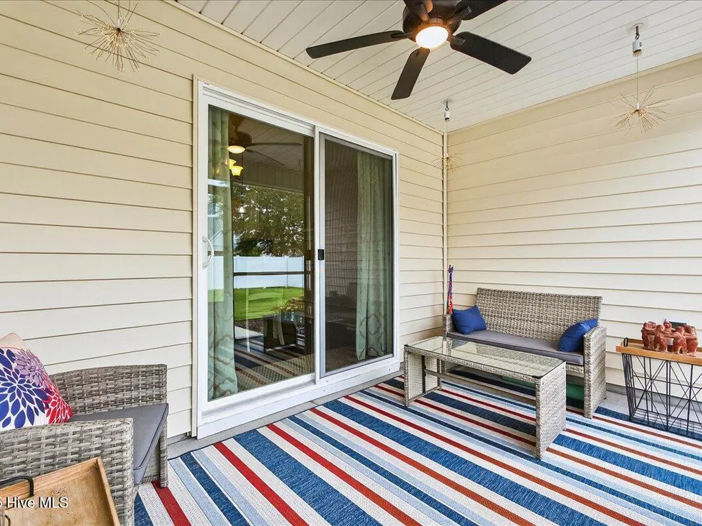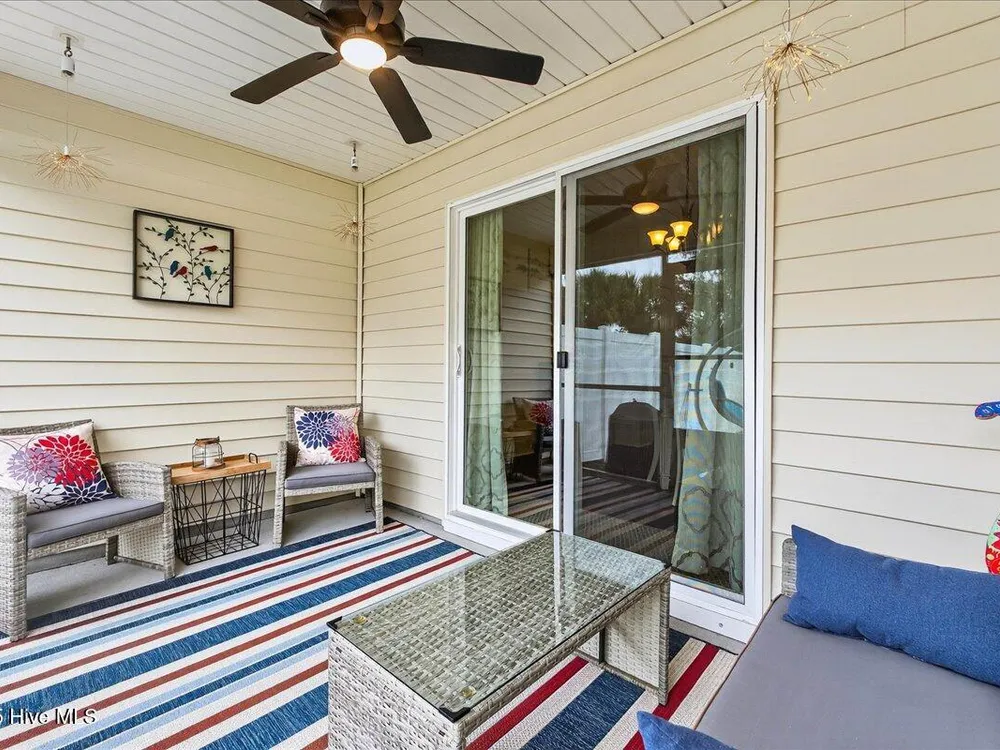 Convenience and ease of living make this, Bill Clark built, 3 bedroom, 2 bath condo the perfect beach getaway or your primary residence. Primary bedroom features trey ceiling and walk in closet, primary bath with double sinks and walk in tile shower. Beautiful molding in dining area adds character and the open floor plan is great for entertaining and convenience. Great room and all three bedrooms have LVP flooring and the bathrooms have 12x24 tile flooring. Custom closet build outs in all three bedroom closets and cabinets and shelving in the laundry room. Front door has integrated blinds and front storm door has a retractable screen. Enhanced lighting in primary bath and over the kitchen pennisula. Rubbermaid FasTrak storage in garage and floored attic space above the garage. Other builder upgrades include oil rubbed bronze fixtures in kitchen and bathrooms, ceiling fans in guest bedrooms, bench seat in the primary shower, raised toilet in both bathrooms, screened porch and ceiling fan in screened porch. A fenced back yard gives privacy for you and your fur babies. Amenities include a beautiful clubhouse and pool, exterior maintenance, lawn care and more covered by the HOA. Within walking or biking distance to the white, soft sands of Sunset Beach Island, grocery, post office, pharmacy etc. Easy commute to either Myrtle Beach or Wilmington for added shopping and entertainment.