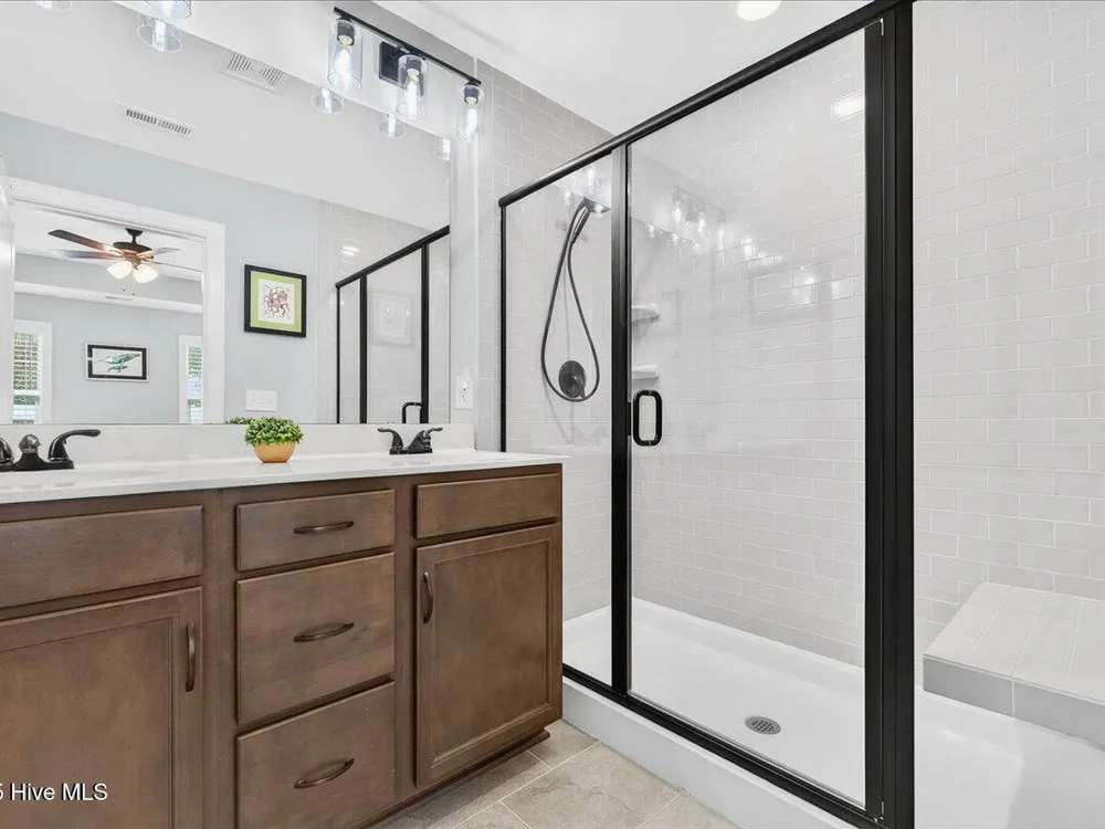 - Blinds/Shades, Solid Surface, Walk-In Closet(s), Walk-in Shower, Vaulted Ceiling(s), High Ceilings, Pantry, Ceiling Fan(s)