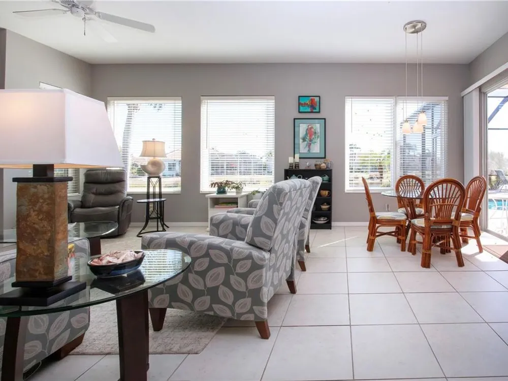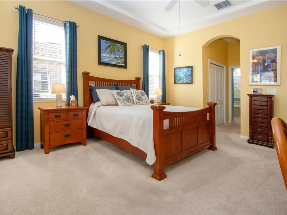 - Ceiling Fan(s), Eat-in Kitchen, Kitchen/Family Room Combo, Living/Dining Room, Open Floorplan, Main Level Primary, Solid-Wood Cabinets, Stone Counters, Tray Ceiling(s)