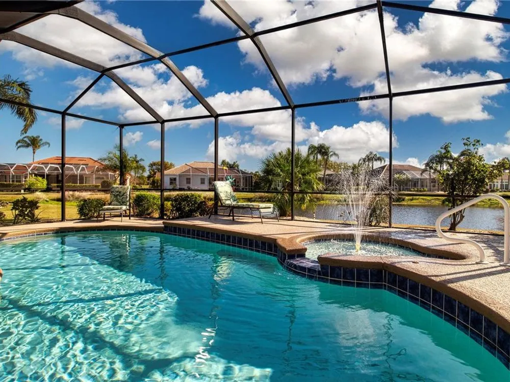 Exceptional pool home with a BRAND NEW TILE ROOF and NEW SCREENED LANAI 2025. Pavers in the driveway and entryway set the tone for an impressive water view as you come inside. Beyond the pool deck is a private bird sanctuary pond with a parade of Florida’s prettiest fauna to enjoy. A fantastic, heated pool/spa that has been resurfaced and updated with top-of-the-line equipment including pop up cleaners controllable by a phone app. The updated pool deck provides ample space for covered dining as well as for sunbathing. This gorgeous Biltmore Model includes a formal living room, dining room and separate family room. The split floorplan provides an extended primary ensuite bedroom featuring a sitting area, French door lanai access, coffered ceiling, double walk-in closets, dual vanities, jetted garden tub, glass shower and water closet. The kitchen features two pantries, lots of cabinets, an island, and breakfast bar. NEW refrigerator 2025, NEW dishwasher 2024, NEW garbage disposal 2025 and a reverse osmosis system. The family room has updated hurricane resistant windows. This beauty has 10ft. ceilings, sliding glass doors, tile in all the right places and an interior laundry room with W/D and utility sink. Other special features include: *Updated top of the line 4-ton Carrier a/c 2020 * Whole house water softener *Updated water heater 2023 *Oversized garage with attic staircase access and storage. Located in the Osprey Place HOA, a 40-home association that provides mowing, fertilizer, and some trimming for $525/per quarter. Sun City Center Community Center has over 200 clubs and organizations to enjoy and was name #1 Retirement Community in the USA by REALTOR.COM for just $344 per person annually and a one-time capital funding fee of $3,000 at closing. Sun City Center is golf cart assessable throughout the community with stores, medical facilities, financial services, transportation options, and houses of worship. Minutes away is I 75 with a short drive to Tampa, Sarasota and St. Petersburg, near 3 airports, beaches, theater, museums, fine dining, advanced medical, special events and major league sports too. What a great place to be living the dream!