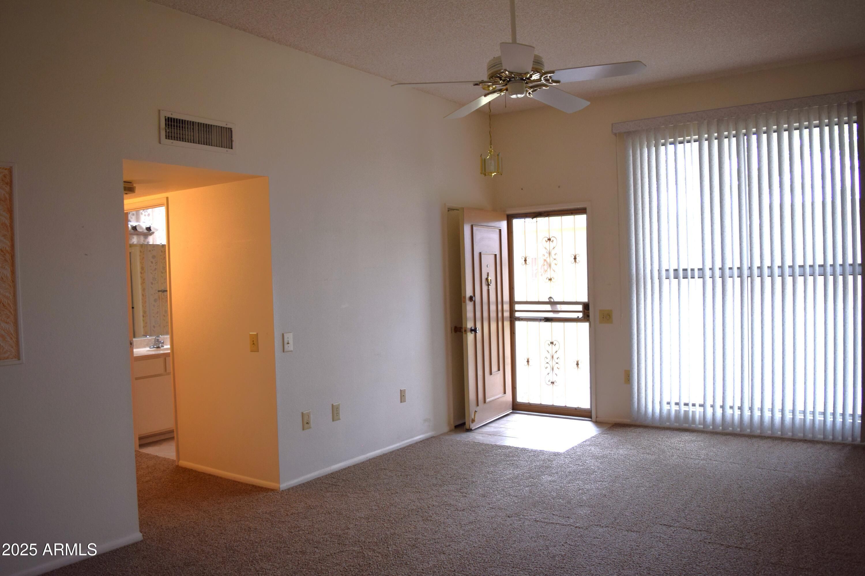 Welcome to your Garden Patio home located in the Adult Community of Sun City. This two-bedroom, 2 bath home is just the right size for your new active lifestyle. Professionally cleaned, new carpet installed, Arizona Room off the dining area. Enclosed south patio for outdoor privacy. Courtyard facing unit. This is the perfect home to be yours.