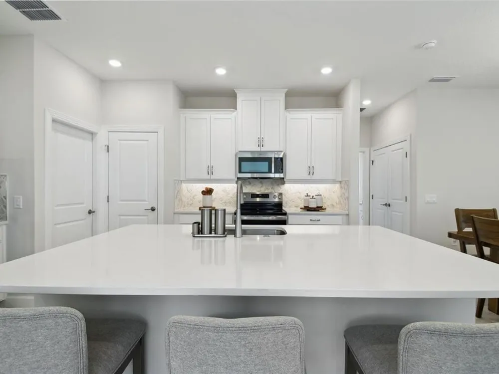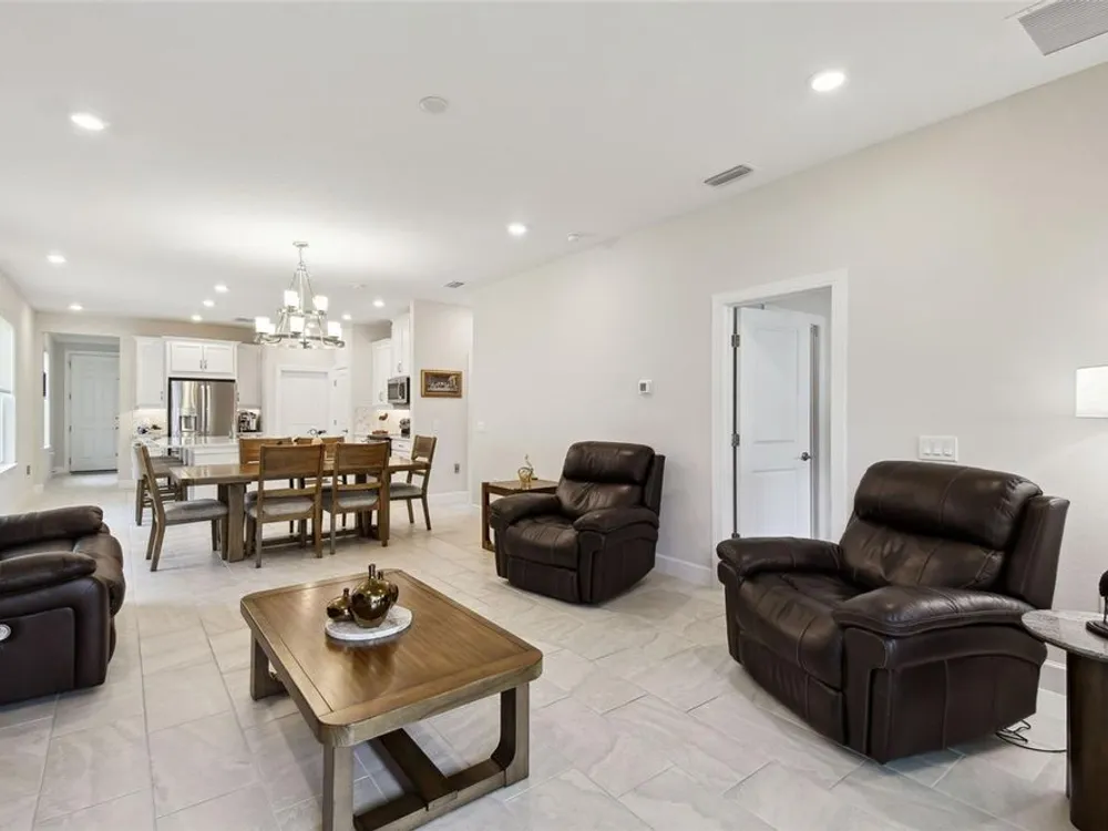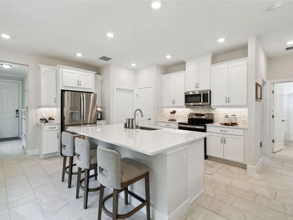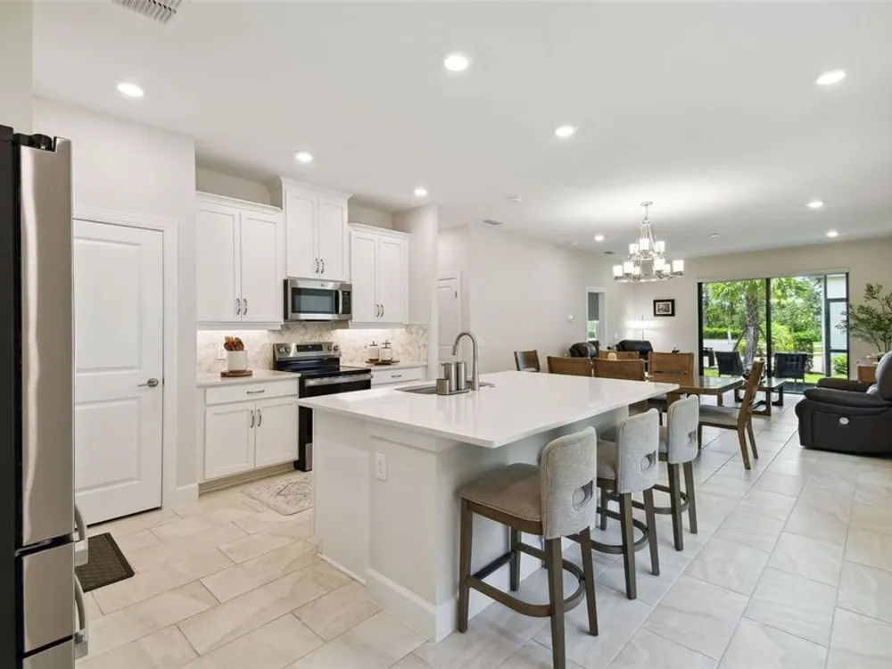 HUGE PRICE ADJUSTMENT!! Welcome to Solivita, an award-winning 55+ gated community in Central Florida offering a vibrant, resort-style lifestyle tailored for active adults. Fall in love with this STUNNING 2024 Salina model, offering 2 bedrooms and 2 full bathrooms, in 1,366 square feet of beautifully designed living space. From the moment you step onto the welcoming, screened-in front porch, you’ll feel right at home. Inside, the OPEN-CONCEPT floor plan is perfect for both everyday living and entertaining. The kitchen is a true showstopper with gorgeous CORIAN countertops, SOFT-CLOSE CABINETS, convenient pull-out shelves, and stainless-steel appliances—designed to make cooking a joy. The spacious living and dining areas flow seamlessly to the SCREENED LANAI, where UPGRADED TILE FLOORING creates a stylish space to relax and unwind. You will find NO CARPET in this home. Thoughtful touches are found throughout, including UNDER CABINET LIGHTING in the kitchen, a full-house WATER FILTRATION SYSTEM, modern ELECTRIC BLINDS for effortless comfort, and a laundry room complete with a sink and designer backsplash. Every detail has been carefully selected to enhance comfort, style, and functionality. With beautiful finishes, move-in ready condition, and all the upgrades already done for you, this home is a rare find. Don’t miss your chance to enjoy low-maintenance living in a home that truly has it all. Ideally located a short golf cart ride from the lively Village Center, this neighborhood places year-round dining, entertainment, and festive events just moments from your doorstep. Residents enjoy access to two 18-hole PGA Championship golf courses, 14 indoor and outdoor pools, top-tier fitness centers with professional trainers and wellness classes, and courts for tennis, pickleball, bocce ball, shuffleboard, and more. With over 250 clubs and interest groups, art studios, a spa, on-site restaurants, and frequent live entertainment, Solivita delivers endless opportunities for connection, creativity, and fun. The community also features beautifully maintained landscaping, automated gate access, 24/7 security, and included fiber optic internet and cable—all covered by the HOA. Just outside the gates, the newly opened Poinciana Plaza offers convenient access to popular retailers, banks, and dining options: Ross, TJ Maax, PetSmart, Sprouts, First Watch, Five Guys and so much more! Come experience the exceptional lifestyle that makes Solivita one of Florida’s premier active adult communities. Schedule your private tour today and see why this Salina model stands out from the rest! ***No verbal offers will be accepted or considered***