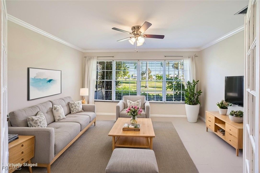 Do not miss this BEST VALUE BUY--LARGEST floor plan in 55+ Brandywine of Myerlee community!! This UPDATED END-UNIT twin villa with 2-CAR GARAGE is a dream come true with GOLF COURSE VIEWS! This incredible home spans almost 2,300sqft under air and provides 3 spacious bedrooms, EACH WITH ITS OWN UPDATED ENSUITE full bath, providing the ultimate luxury and privacy for you and your guests. The BONUS ROOM with French doors offers endless possibilities as a formal dining room, office, playroom, hobby room, and more, allowing you to customize the space to suit your lifestyle. The LIGHT & BRIGHT OPEN LAYOUT with a SPLIT FLOOR PLAN includes both a family and living room, ensuring plenty of room to spread out and relax, while the neutral tile flooring in the main living areas and plush carpeting in the 2 guest bedrooms create a cozy and inviting atmosphere. The UPDATED PRIMARY suite boasts granite counters, large walk-in shower, dual vanities and a large walk-in closet. The GOURMET UPDATED KITCHEN features ample storage with warm wood cabinets, extensive GRANITE counter space, NEW STAINLESS STEEL appliances, a large island, and a breakfast bar, perfect for entertaining friends and family. The LAUNDRY ROOM features even more storage with warm wood cabinets and a sink. Head outside to enjoy the serene golf course view from your NE EXPOSURE SCREENED LANAI, or take a dip in the community pool. With a NEW ROOF (2025), New plumbing, NEW A/C (2023), NEW WATER HEATER (2022), & ELECTRIC SHUTTERS, this "condo-villa" truly has it all. Located in Brandywine of Myerlee a 55+ GUARD-GATED community, this home offers a PEACEFUL & SERENE atmosphere, perfect for those looking to enjoy their golden years in style. The community pool and clubhouse are the ideal places to relax and unwind or meet new friends. You can also enjoy tennis, pickleball, the exercise room, community events, and more! Looking for GOLF? PAY-TO-PLAY at Myerlee Country Club, or they have MEMBERSHIPS AVAILABLE too! Restaurants, shopping, entertainment, and the beautiful beaches of SWFL are all just minutes away. Don't delay--scoop up this piece of paradise before it's gone!