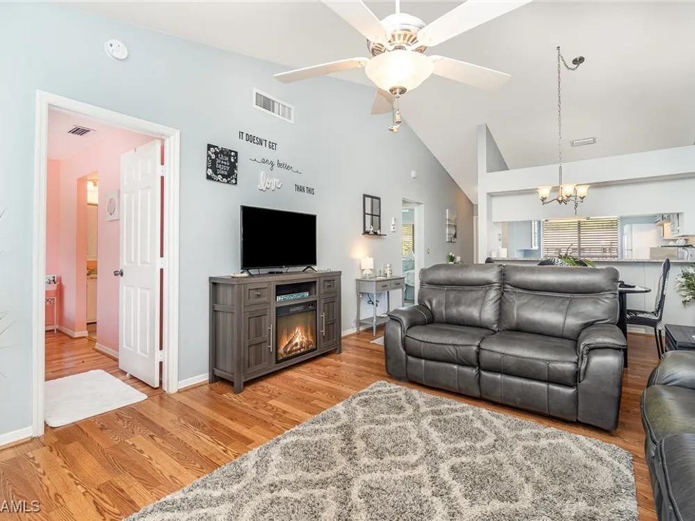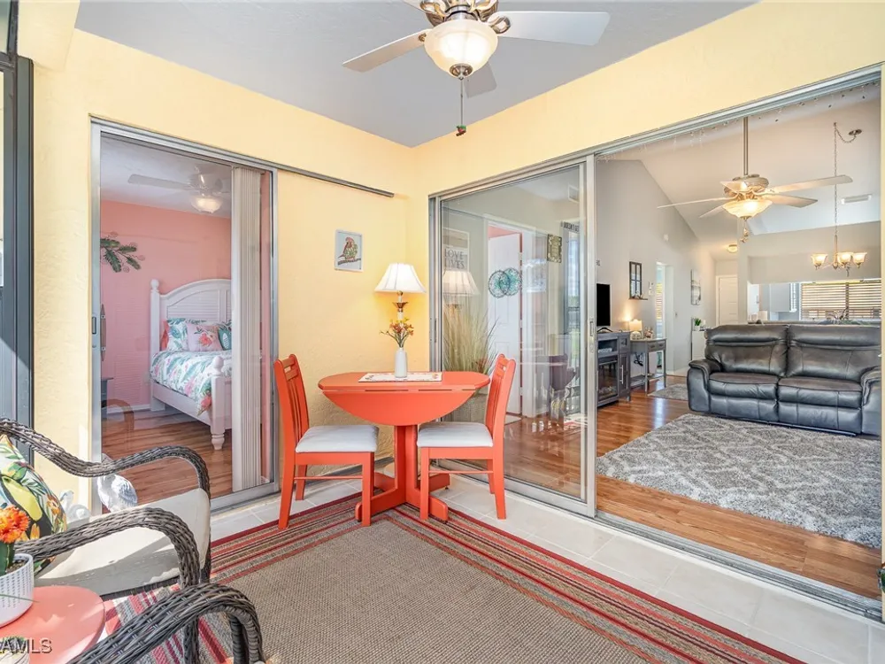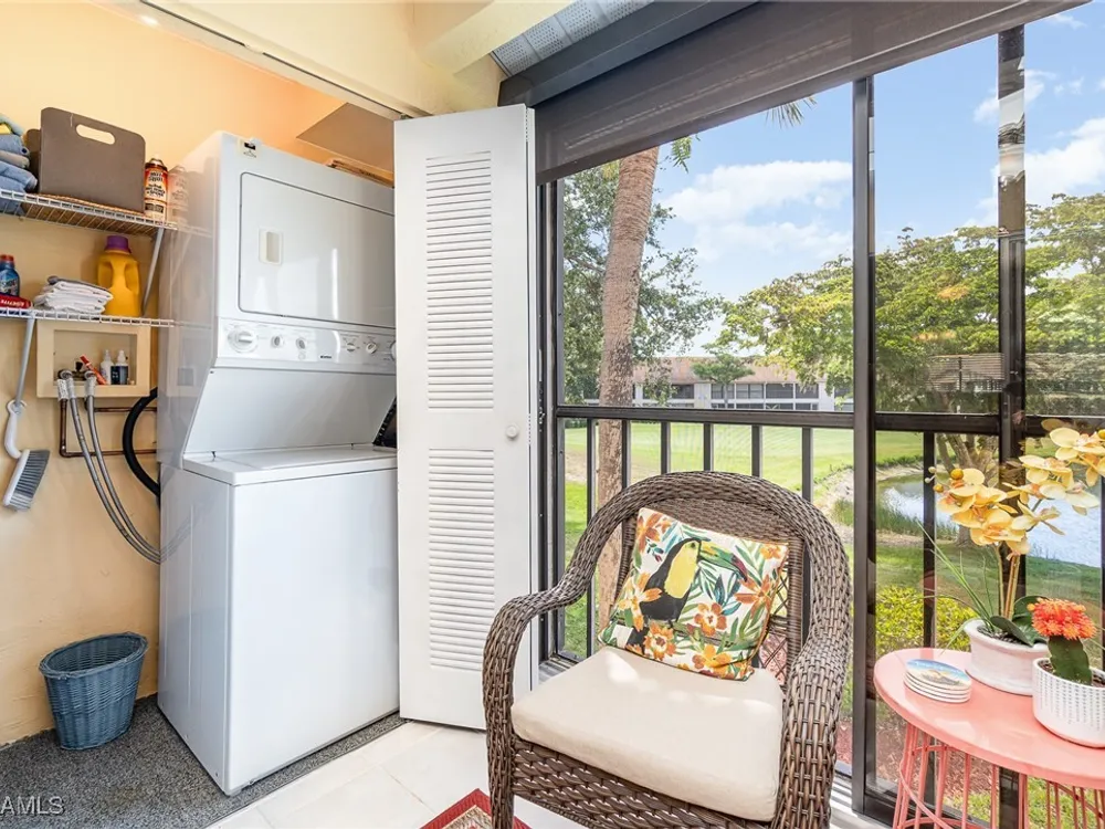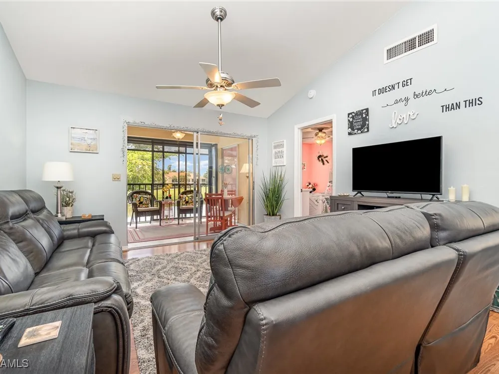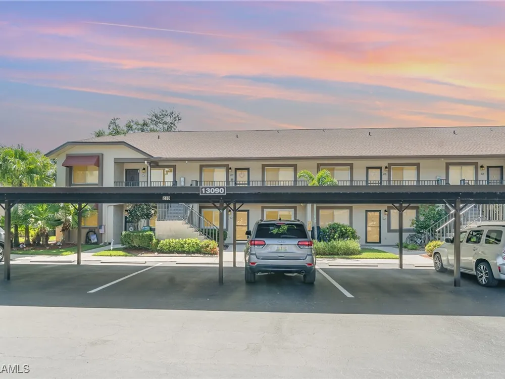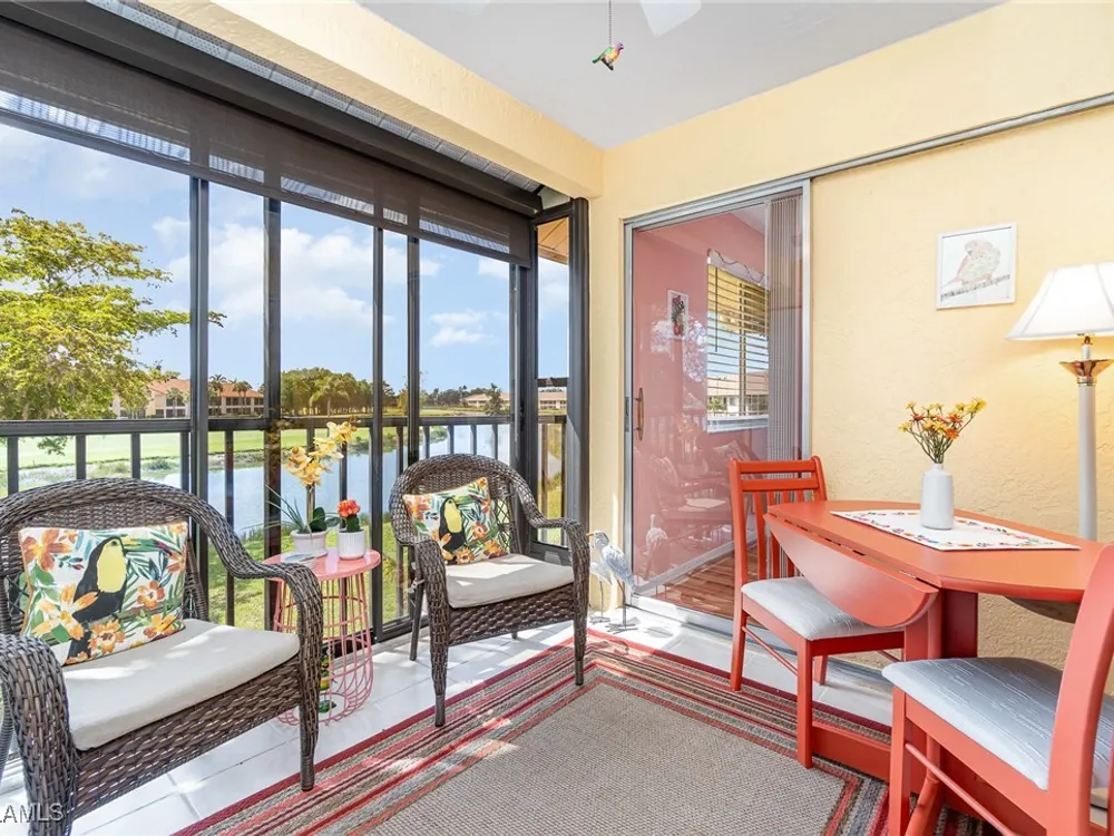 Golfer's Paradise! Nestled in the highly sought-after Cross Creek community off Daniels Parkway, this inviting, move-in-ready turnkey condo offers breathtaking views of the lake and golf course—and a charming front balcony with a relaxing view of the pool, perfect for sipping your morning tea. Ideally located just a 5-minute walk to the clubhouse restaurant and bar, you’ll also enjoy low quarterly fees. This 2nd-floor unit features vaulted ceilings, two oversized bedrooms, and ample storage. The bright, open floor plan maximizes natural light, with a cozy dining area and a well-equipped kitchen boasting modern appliances—all appliances included—and generous counter space. The primary bedroom includes a private en-suite bathroom, while the additional bedroom offers flexibility for guests or a home office. Relax on the spacious screened lanai with impact sliders for outdoor dining or unwinding in the serene surroundings. Residents enjoy a wealth of amenities, including a pool, tennis courts, a clubhouse, and access to a premier executive golf course, plus covered parking for added convenience. Prime location: approximately 12 minutes to RSW Airport, close to shopping, dining, entertainment, and the area’s best beaches, including Fort Myers Beach and Sanibel. You’re also right between the Twins and Red Sox Spring Training facilities. Priced to sell—don’t miss your chance to own a piece of paradise in this prime Fort Myers location.