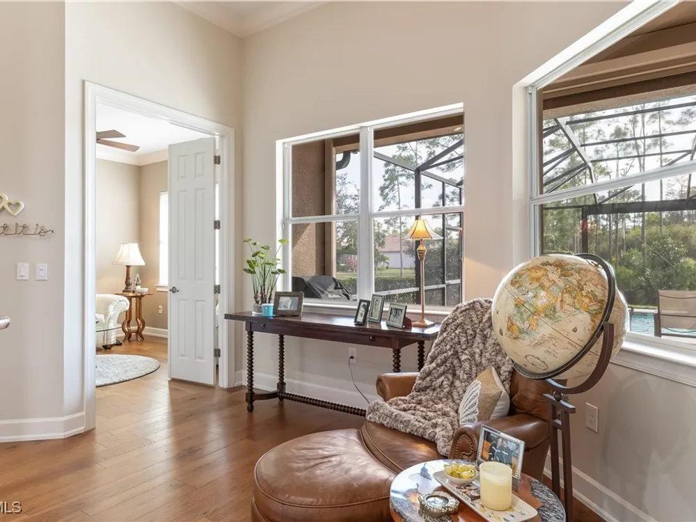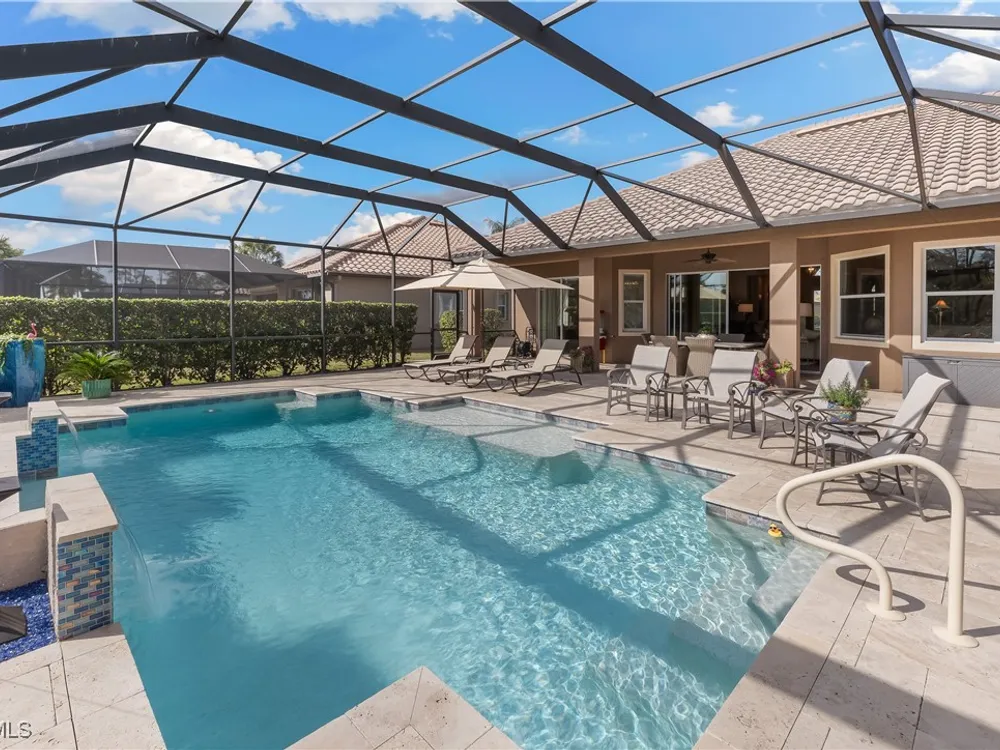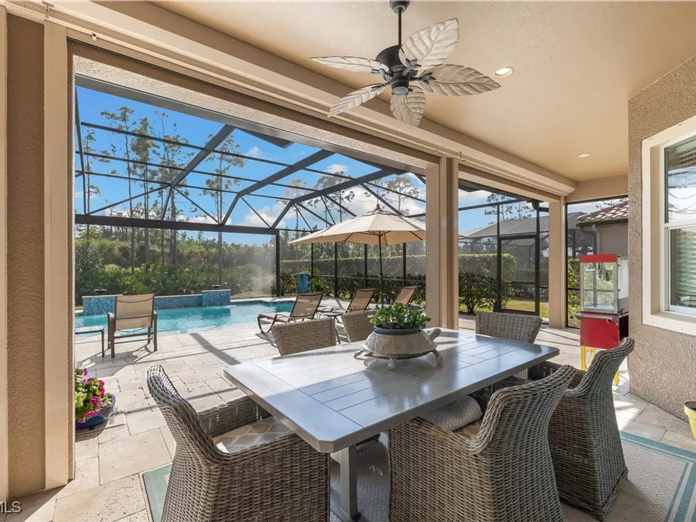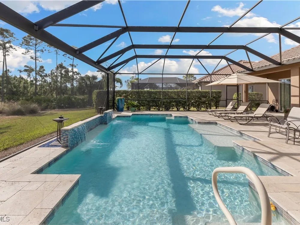 Experience the pinnacle of luxury and comfort in Somerset at The Plantation with this beautifully appointed 3-bedroom + den, 2.5-bath residence, a one-year home warranty with live support for added peace of mind. Set on a rare 1.5 building lot with breathtaking preserve views, this home offers exceptional privacy and elegant design. The open-concept layout seamlessly connects spacious living and dining areas, ideal for both everyday living and effortless entertaining. Step outside to your custom-designed pool and spa with cascading waterfalls and a sunledge, all framed by an expansive travertine-tiled pool deck and a southwest-facing covered lanai. The lanai is equipped with a Kevlar hurricane screen, providing outstanding protection for both the home and your outdoor furniture. Inside, enjoy wide-plank wood flooring throughout the main living spaces, primary suite, and the den, which features French doors and offers the perfect space for an office or flex room. Abundant natural light, 12-foot ceilings, elegant crown molding, custom lighting, plantation shutters, and seamless sliding glass doors create a warm, welcoming atmosphere. For added peace of mind, the home includes accordion hurricane shutters on all windows, ensuring full storm protection without compromising style. The primary suite is a private retreat, featuring a spa-style bathroom with dual vanities, soaking tub, oversized walk-in shower, and custom-built walk-in closets. A thoughtfully designed laundry room includes wood cabinetry and a utility sink. Enjoy world-class community amenities, including: Optional membership to the prestigious Hurdzan-Fry Golf Course, resort-style pool and spa, tennis and pickleball courts, fitness center, and 38,000 sq. ft. clubhouse with dining options. Ideally located near RSW Airport in a no-flood, no-fly zone, this is a rare opportunity to own a meticulously maintained home in one of Southwest Florida’s most sought-after communities. Schedule your private showing today—this one won’t last!