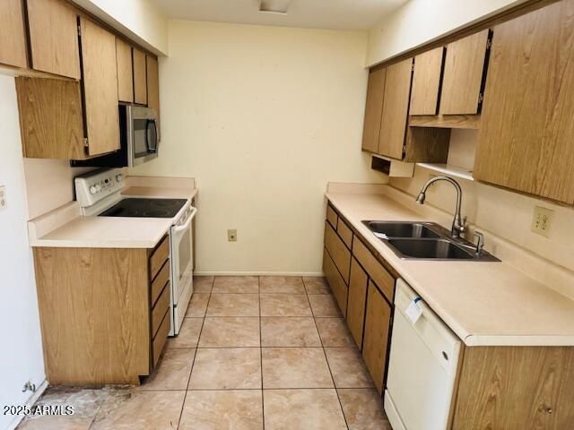 Enjoy relaxed, low-maintenance living in this welcoming 2-bed/2-bath condo located in the desirable 55+ active adult community of Sun City. The galley-style kitchen is thoughtfully designed and equipped with most appliances, offering a comfortable and efficient space for everyday cooking. The family room is light and inviting, overlooking the expansive private patio and providing direct access— extending your living space and is perfect for unwinding or hosting guests. The primary suite features a private ensuite bath, creating a peaceful retreat, while a secondary bedroom and full guest bath offer flexibility for visitors or hobbies. A one-car garage adds convenience as well. Residents enjoy an exceptional lifestyle with access to all of Sun Cities amazing amenities and activities.