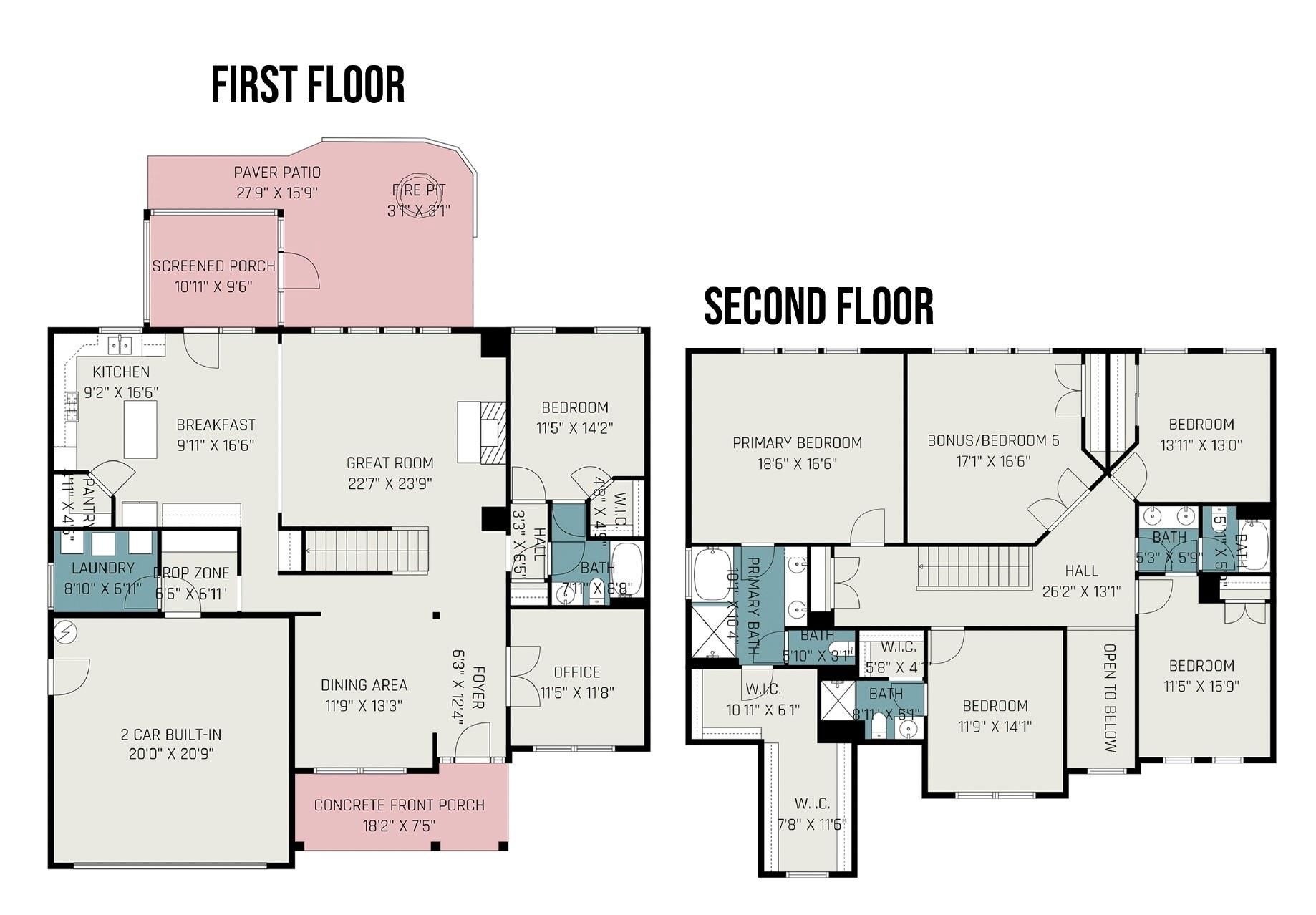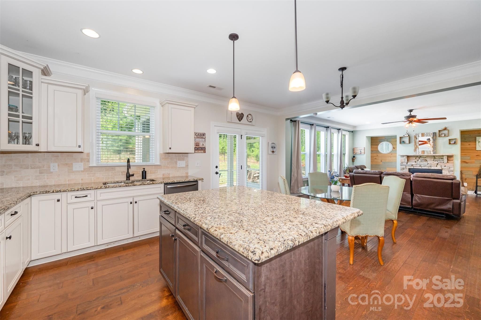 Space, flexibility, and a layout that fits real life—this 6-bedroom, 4-bath home delivers all three in the amenity-rich Lakewalk community at Lake Norman. Set on a nicely landscaped lot, the home offers generous square footage and versatile rooms suited for today’s needs, including layouts that adapt well to multi-generational living. The rocking-chair front porch opens to a wide foyer flanked by an open formal dining room and a dedicated office. The main level features hardwood flooring, a full guest suite, and a bright great room with a stone fireplace. The gourmet kitchen includes double ovens, gas cooktop, French-door refrigerator, abundant cabinetry with granite countertops, a large island, walk-in pantry, and a breakfast area that ties the main floor together. Upstairs, new 2024 LVP flooring extends through five bedrooms, including the spacious primary suite with an oversized walk-in closet and a well-appointed bath with dual granite vanities, soaking tub, and separate shower. The versatile bonus/6th bedroom includes a closet and works well as a media room, fitness area, studio, or additional bedroom—supporting flexible or extended living arrangements. The backyard features a screened porch, brick paver patio, built-in fire pit, fenced yard, and full irrigation. Lakewalk amenities include a pool and clubhouse, pickleball courts, playground, picnic pavilion, dog park, sidewalks, walking trails, and Lake Norman access for kayaking and paddleboarding. Convenient to I-77, shopping, dining, and Lakeshore/Lake Norman schools.