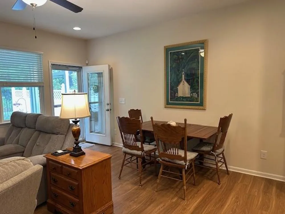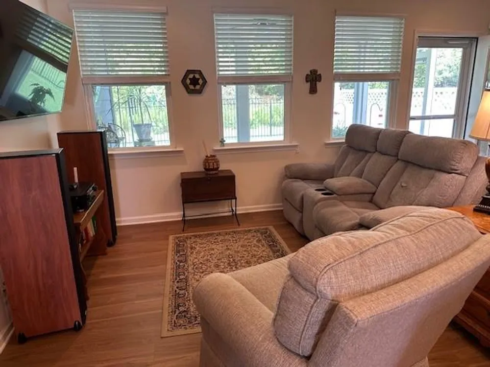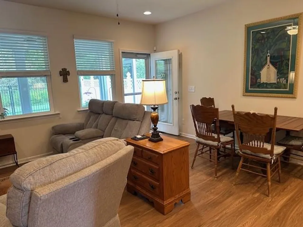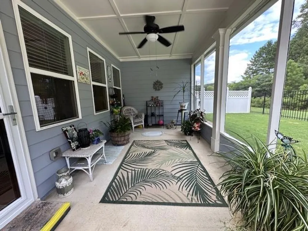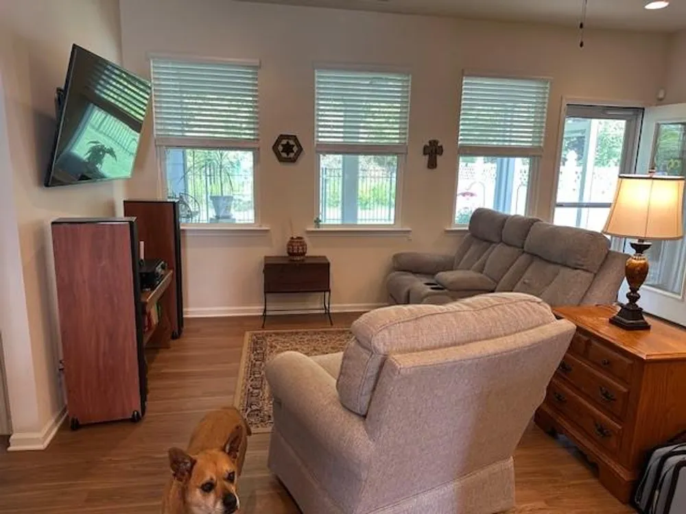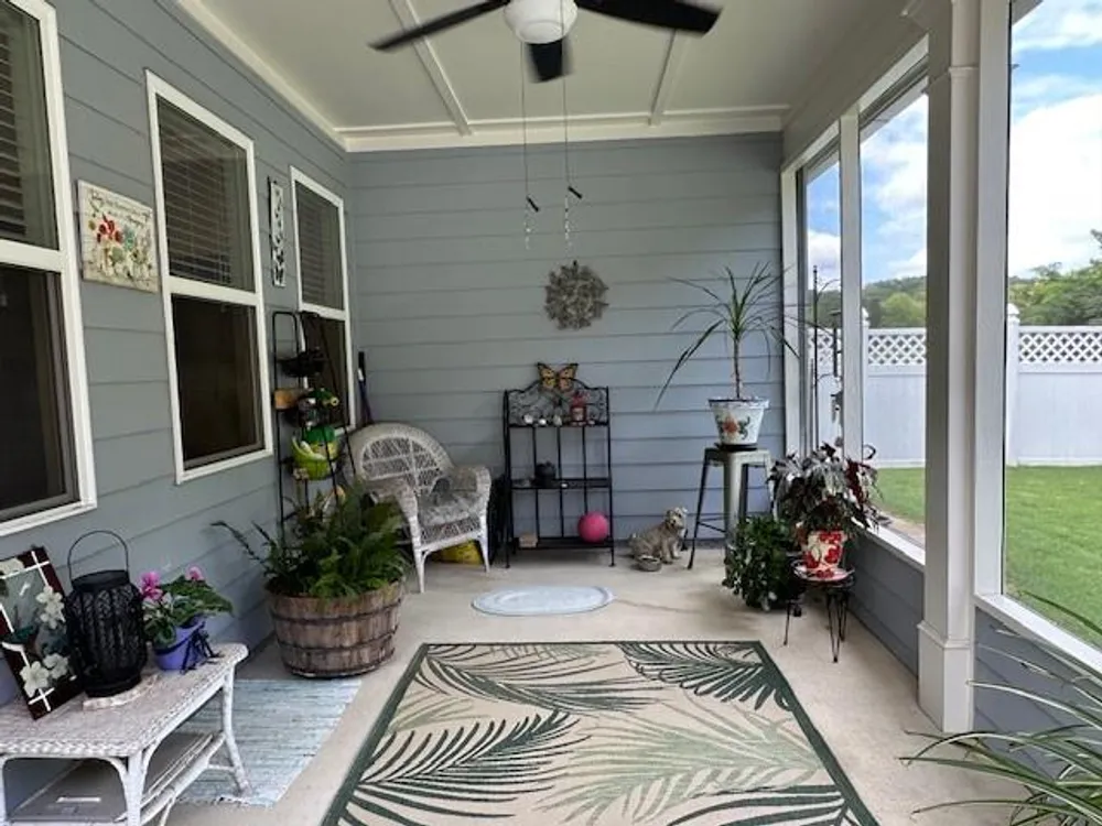 MOTIVATED SELLER! 2ND PRICE REDUCTION! Beautifully maintained 55+ and VERY desirable neighborhood, this home is the perfect choice! The ranch-style home features a large screened-in Patio with ceiling fan overseeing a level and private backyard. The buffer/green space makes it especially serene to enjoy those quiet mornings and evenings. Storm door to the back patio has a doggie door as does the screen door to the fenced yard. The frontage is well maintained by the HOA with stunning curb appeal, recently pressure washed. Wheelchair accessible doorways throughout the home. Refrigerator, stove, microwave, washer & dryer are included! Air Scrubber installed in attic for HVAC and maintained regularly by Edwards HVAC with new filters. Dryer vents scheduled to be cleaned 9/9/25. Home has been serviced regularly for pest control utilizing the built in perforated tubing throughout and has a termite baiting system. ADT security system is available and currently active. Seller has a sweet dog and would appreciate a short lead time for showings. Come see this stunning home, close to all conveniences and public transportation.