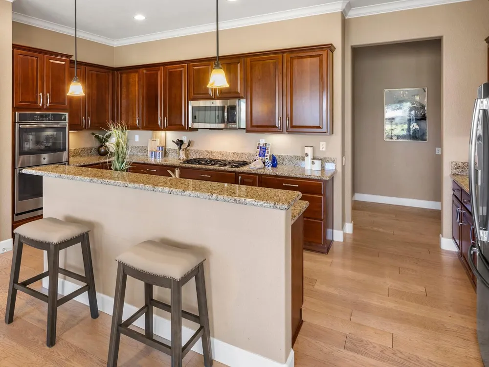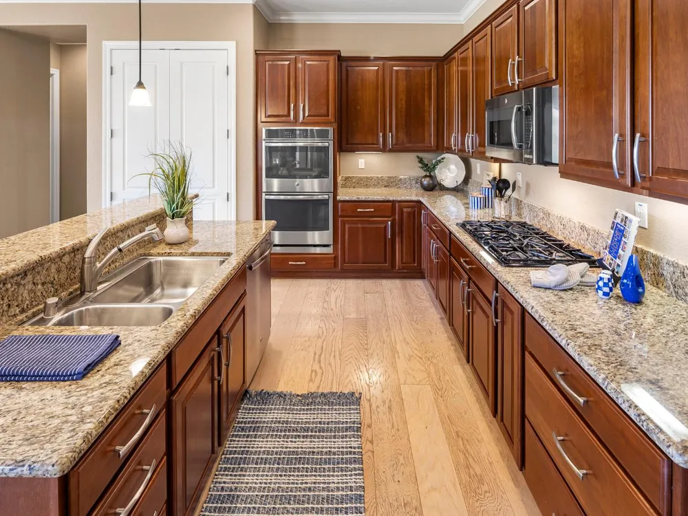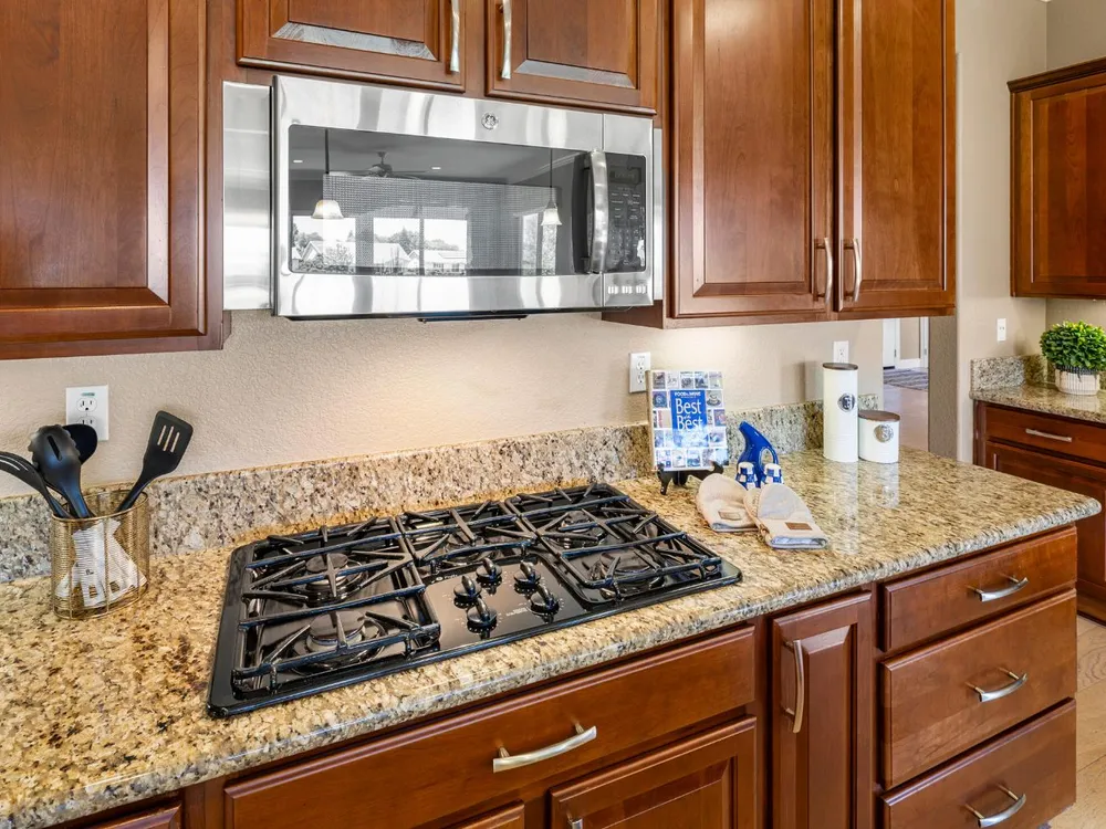 - Gas Cooktop, Built-In Gas Oven, Built-In Gas Range, Gas Water Heater, Ice Maker, Dishwasher, Disposal, Microwave, Double Oven, Plumbed For Ice Maker