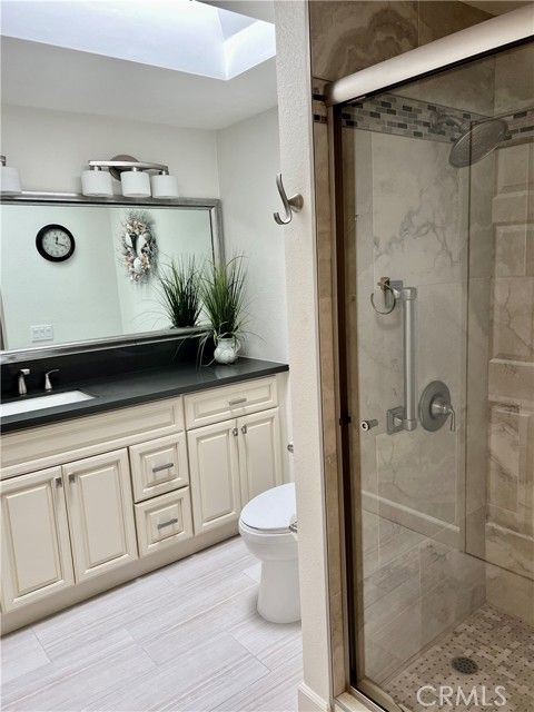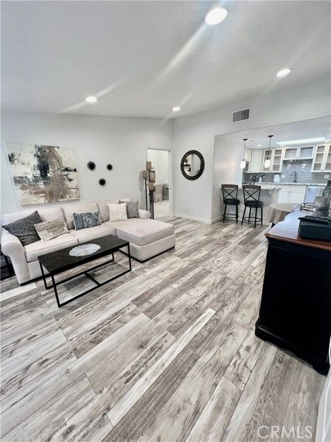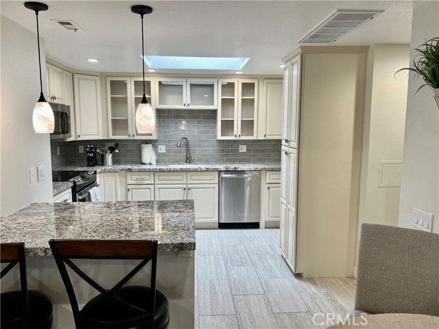 Welcome to Leisure World, a private gated community with 24-hour security. A perfect blend of comfort, style, and senior-friendly convenience. This beautifully remodeled unit is located in one of the most desirable mutuals surrounded by a peaceful, park-like setting that makes you feel as though you’re on vacation. Thoughtfully designed throughout, this move-in ready home features 2 spacious bedrooms and 2 beautifully renovated bathrooms, with no detail overlooked. Step inside to an inviting open-concept living area highlighted by 9-foot ceilings, skylights, recessed lighting, new flooring, fresh paint, and designer finishes. The gourmet kitchen includes custom cabinetry with inset glass doors, a spacious pantry, granite countertops, a timeless tile backsplash, stainless steel appliances, built-in microwave, dishwasher, and a bar-style dining counter—perfect for casual meals or entertaining. The primary suite was designed for both comfort and organization, featuring a custom walk-in closet. The second suite also includes its own spacious walk-in closet. The main bathroom offers modern upgrades such as a step-in shower with safety grab bar and sliding glass doors for easy access. Leisure World provides an exceptional lifestyle with amenities including a golf course, swimming pool, fitness centers, multiple clubhouses, specialty studios (ceramics, woodworking), an amphitheater, library, computer lab, and sports courts. Residents also enjoy a free community shuttle, on-site medical center, pharmacy, credit union, and a variety of social clubs—creating a vibrant, worry-free way of life. The home includes one assigned carport space with additional storage. Don’t miss this rare opportunity to own a turn-key home in a thriving, active community where modern upgrades meet relaxed living!
