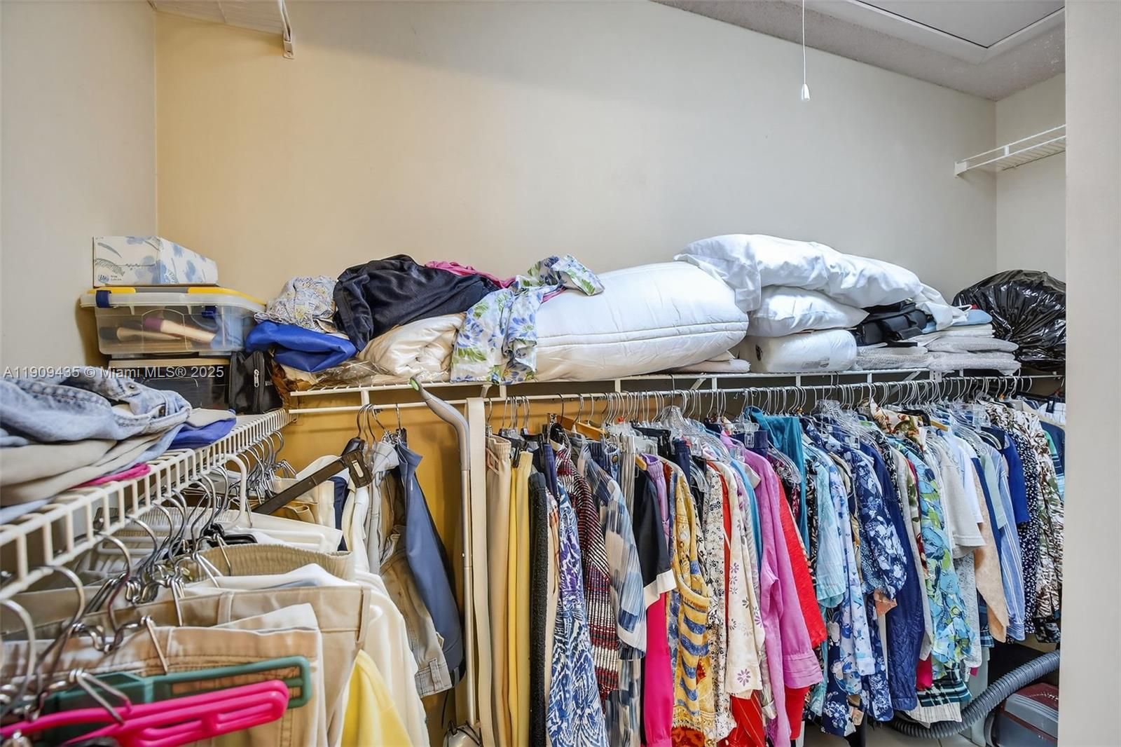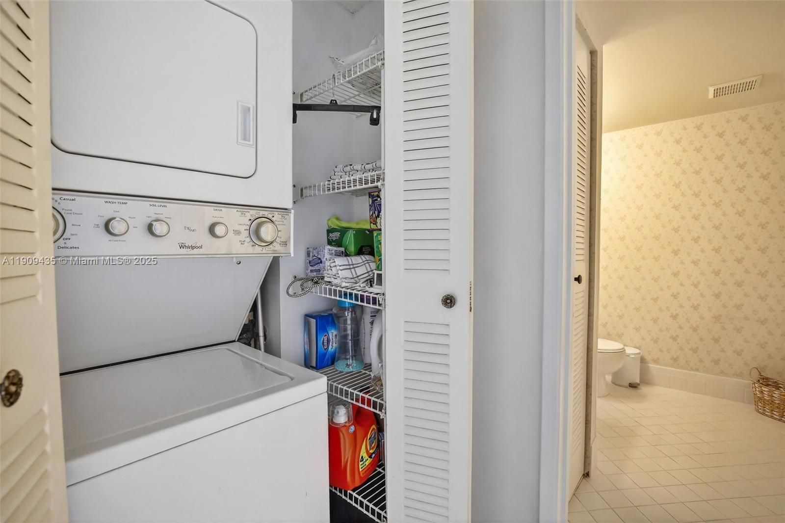 Discover the largest one-bedroom condo on the market! This highly sought-after and rarely available Nandina model features stylish custom Italian tile installed on the diagonal, giving the entire unit a true designer feel. This layout is preferred by buyers seeking an expansive open living room paired with a spacious eat-in kitchen. The oversized bedroom sits just off the patio and includes a generous ensuite bathroom and a large walk-in closet. The eat-in kitchen features top appliances, updated cabinetry, and granite-like countertops. A washer and dryer are conveniently located inside the unit. Enjoy a peaceful patio overlooking lush greenery for total privacy. The community’s tremendous clubhouse offers dances, Broadway-style shows, and free first-run movies in a spacious theatre.