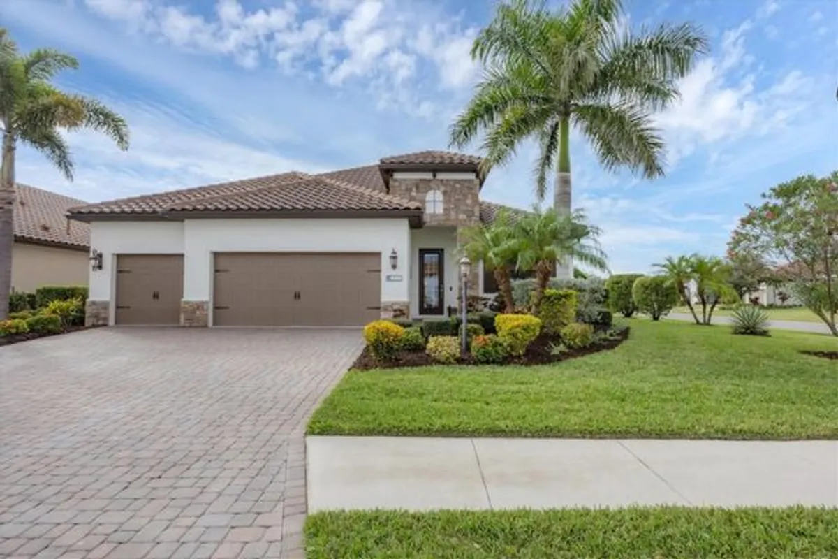 Looking for that one special home that has it all WITH a reduced CDD fee? This model like ''Daybreak'' floorplan saltwater POOL home with its 4 bedrooms, 3 full bathrooms, 3-car garage on a large corner lot is a RARE one! Your new home is built strong and safe with its HURRICANE IMPACT rated windows, motorized HURRICANE shade in lanai, cinder block construction, concrete tile roof and is located in the desirable ''X'' floodzone! Rest assured you won't be left using flashlights with this 24Kw standby ''Generac'' generator! If the power goes out, you can run the entire home, it's business as usual for you! With fresh exterior paint AND professionally installed landscaping, this home looks as good outside as it does inside. Throughout the interior you can expect freshly painted walls, 8' foot doors, 5 1/4 deco baseboards, ceiling fans throughout, luxury crown molding, designer light fixtures, multiple trey ceilings, custom built-ins, tasteful shiplap accent walls and much more! Your new kitchen has brand new stainless steel appliances, reverse osmosis water filtration at the sink, a one off oversized island, custom herringbone laid porcelain backsplash, premium shakor cabinetry with slide out shelving and LED lighting underneath that complements the high level quartz countertops, 5 burner countertop gas stove with stainless exhaust hood, built-in convection oven and microwave! This amazing family room has a designer trey ceiling and custom built in entertainment center with an electric fireplace which makes this centerpoint of the home the perfect interior gathering area. The primary bedroom has a tray ceiling, two walk-in closets and the en-suite bath has a large walk-in shower, custom stone accent wall, dual sinks with high level quartz counter and linen closet. On the other wing of the home there are two bedrooms that share a full bath. There is a separate laundry room with a utility sink, built-in folding table and upper cabinets. The 4th bedroom is on its own with a full bathroom that also functions as a CABANA POOL BATHROOM leading outside to the lanai. Step outside to the paver rich lanai and you will adore the custom ceiling, professionally installed lighting on the pool cage, premium kitchenette with stainless steel gas grill with matching fridge and saltwater pool! You can also expect incredible landscaping which gives ideal privacy and a great view of the water. Indigo is an active community that features a full time on-site manager as well as a full time activities director that manages an extensive calendar of activities for all ages. A-Rated Gullett Elementary AND Mona Jain Middle School are right outside our gates too! You can also expect sidewalks on both sides of the street, resort style heated community pool/spa at the clubhouse where you will find 5 cabanas with an abundance of seating, 4 pickleball courts, 2 bocce ball courts, 24-hour exercise gym, meeting room/banquet room and playground. Indigo is not only a community that takes care of all ground maintenance to include mowing, fertilizing, irrigation and shrubs but is right around the corner to a plethora of dining, banking, entertainment, public transportation and MORE!