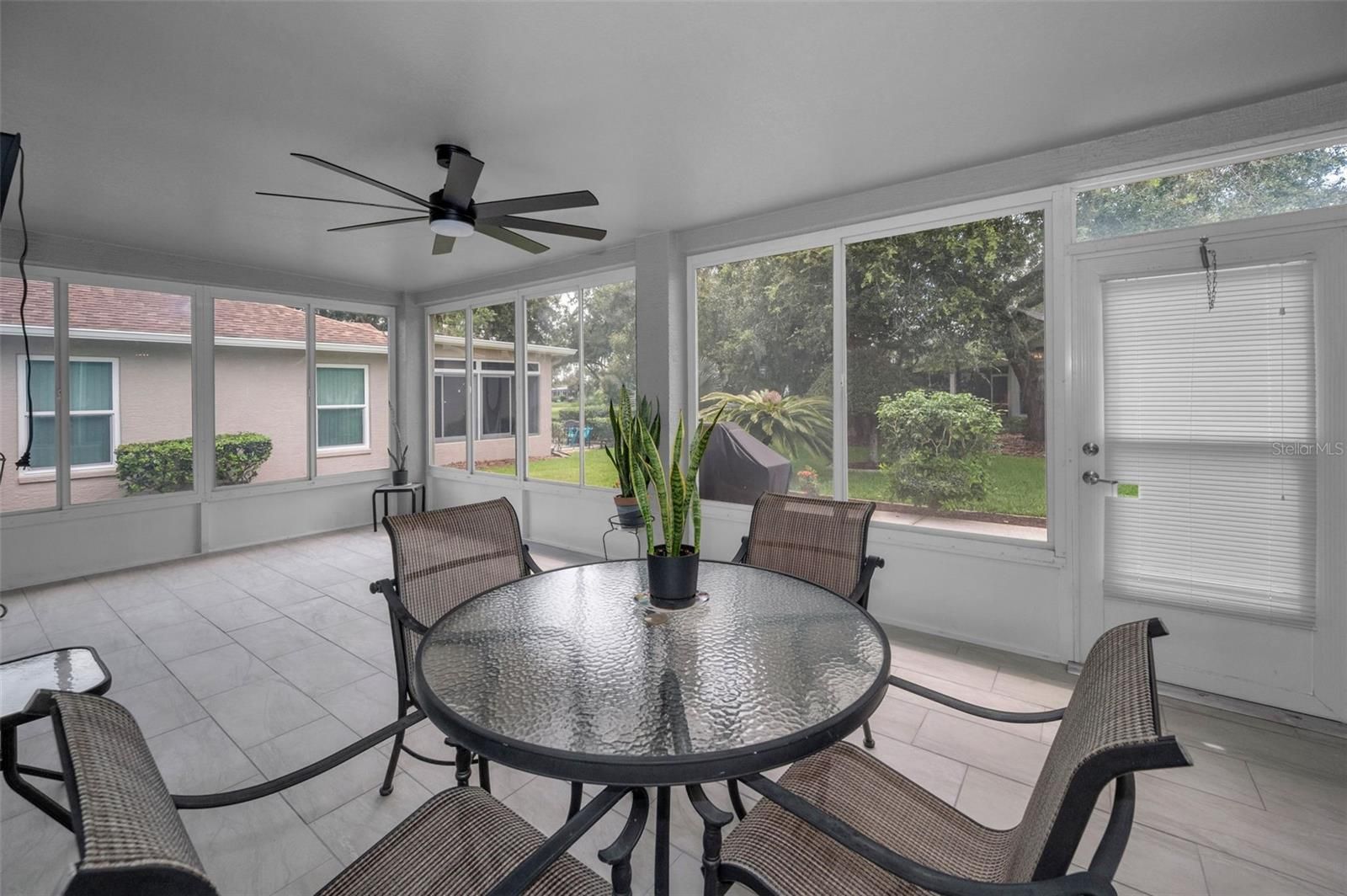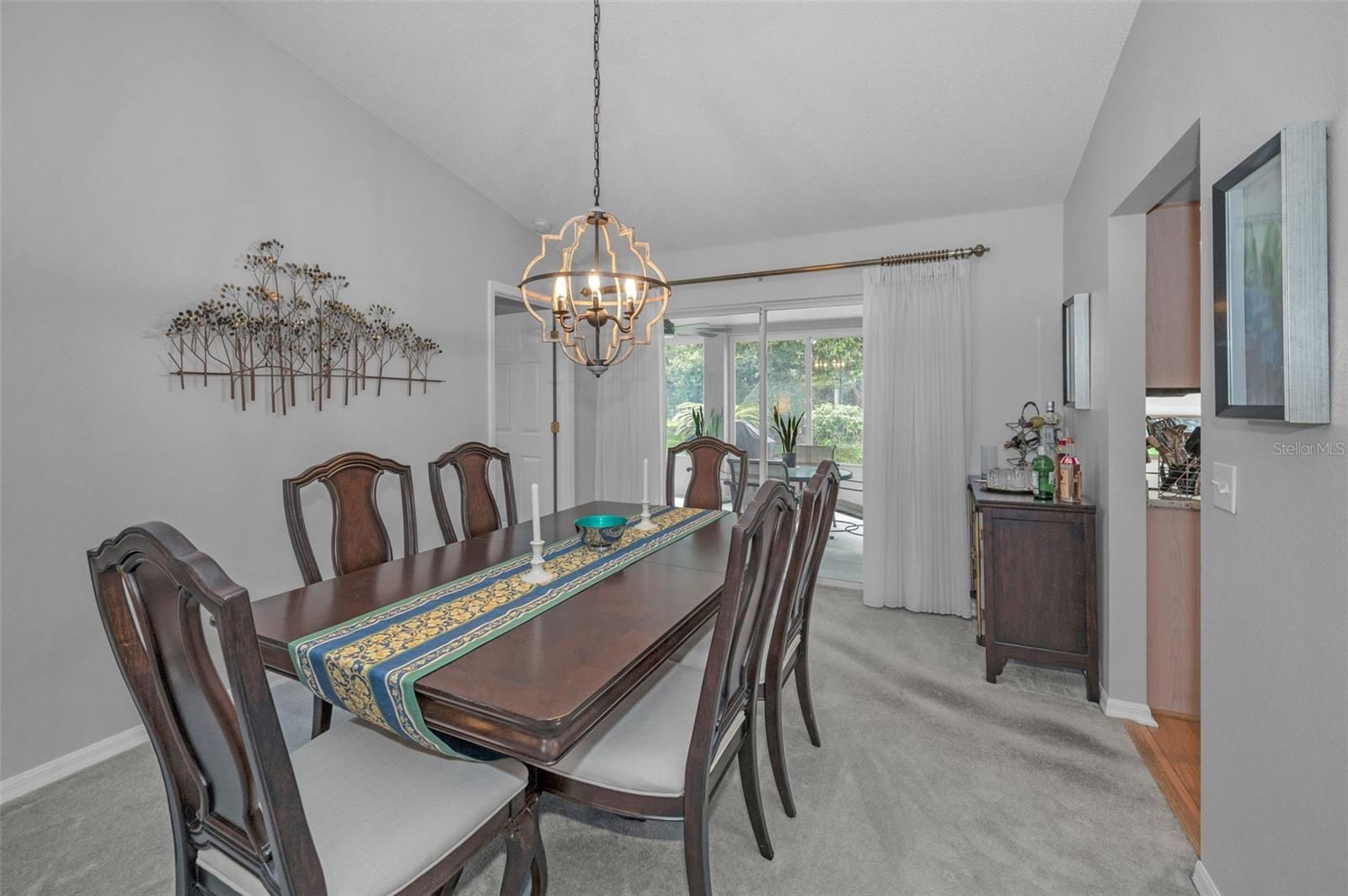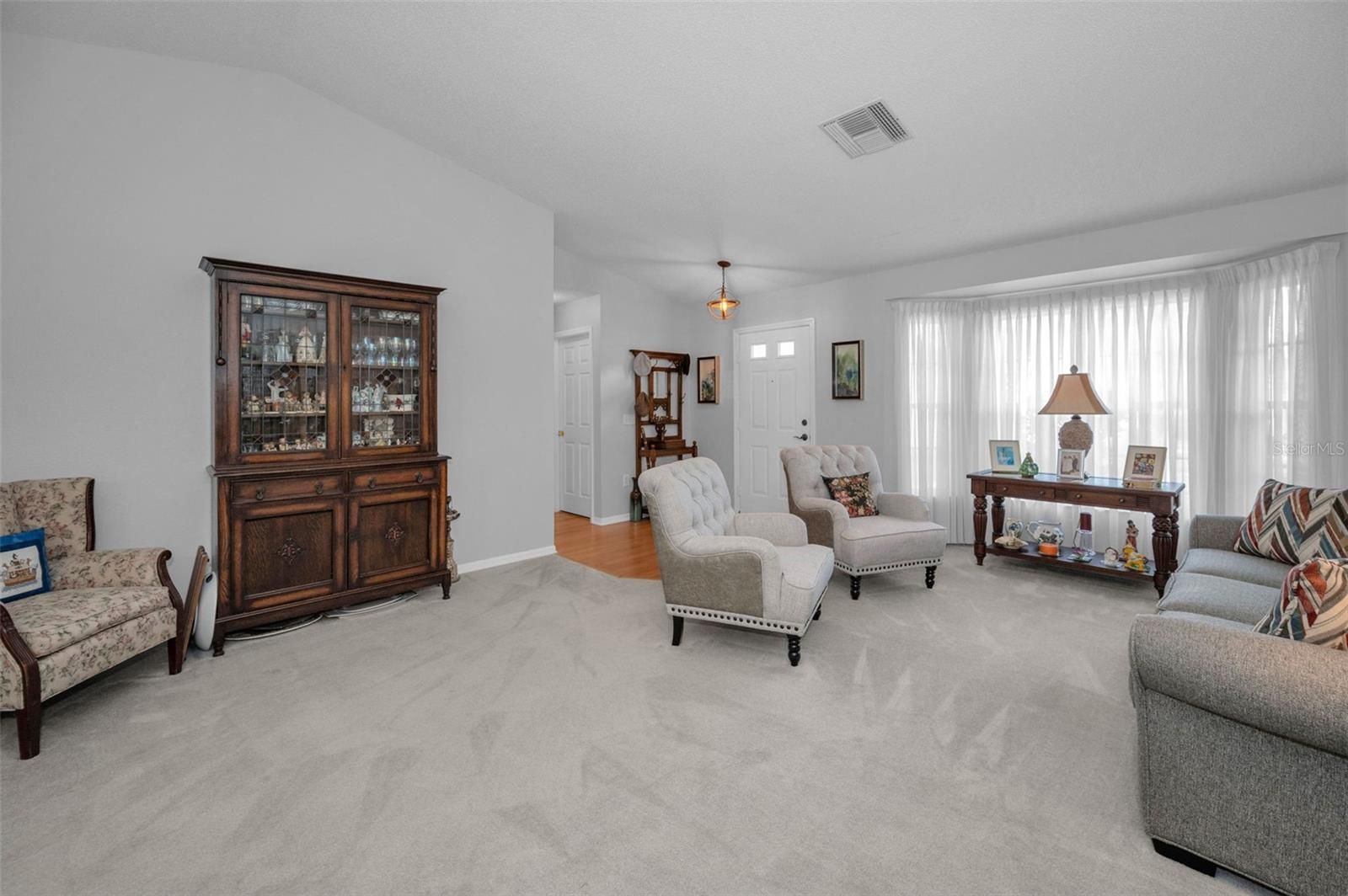Pride of ownership shows in this 3 Bedrooms, 2 Full Baths, 2 Car Garage home! Once you arrive you will notice the lush landscaping w/curbing that brings you to the front door. As you enter into the home you have soaring vaulted ceilings in the formal living room w/bay window and the formal dining room w/sliders to the enclosed lanai. The kitchen has wood cabinets w/pullout shelves, granite counters, stainless steel appliances, recessed lighting, engineered wood flooring, pantry closet, breakfast bar and a wonderful breakfast nook area. The kitchen overlooks the family room w/vaulted ceiling w/ceiling fan and engineered wood flooring for easy care. There is a hallway w/two closets that leads you to the two guest bedrooms that have carpet & ceiling fan. The guest bathroom has wood vanity w/solid surface counter and tub w/shower. The primary bedroom has plenty of room for all your pieces and it has carpet, ceiling fan, two walk in closets. The primary bathroom has wood vanity w/dual sinks and walk in shower. The laundry room has cabinets, washer, dryer and a utility sink. The garage has pull down staircase, shelving and cabinets. There is a large, enclosed lanai w/tile flooring, ceiling fan & TV that you and your guests will enjoy. Just outside the enclosed lanai you have a patio to grill out and to take in our great Florida weather. This home offers newer items including roof, water heater, kitchen appliances, washer, dryer. This community offers many events & activities that your social calendar will always be full! A gated community w/golf course, tennis courts, pavilion w/picnic tables, grills, bocce, horseshoes, shuffleboard, club house w/restaurant, lounge, performing arts center, billiard & game room, arts & crafts room, library & computer room, heated pool & spa.