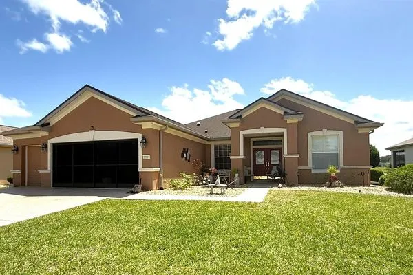 This home is what you are looking for in your next home. Elegance as soon as you walk in. 3br, 2 baths, crown molding. 20" diagonal tile, granite counter tops, newer microwave, stove, dishwasher plantation shutters and sliders, high ceilings, pantry with roll out cabinets under counter, kitchen island. pot filler, both bathrooms have been remodeled, retractable awnings with full cover looking out to a beautiful water view no homes to block your view. 2 car garage with golf cart garage with epoxy floors. Roof fan with padded aluminum sheets across the complete attic, and another fan to take the heat out of the garage. Pre wired generator, Landscaping with curbing. Sun tubes in the laundry and 2 between dining area and living room. painted driveway, garage screens. Don't miss the opportunity to make it yours.
