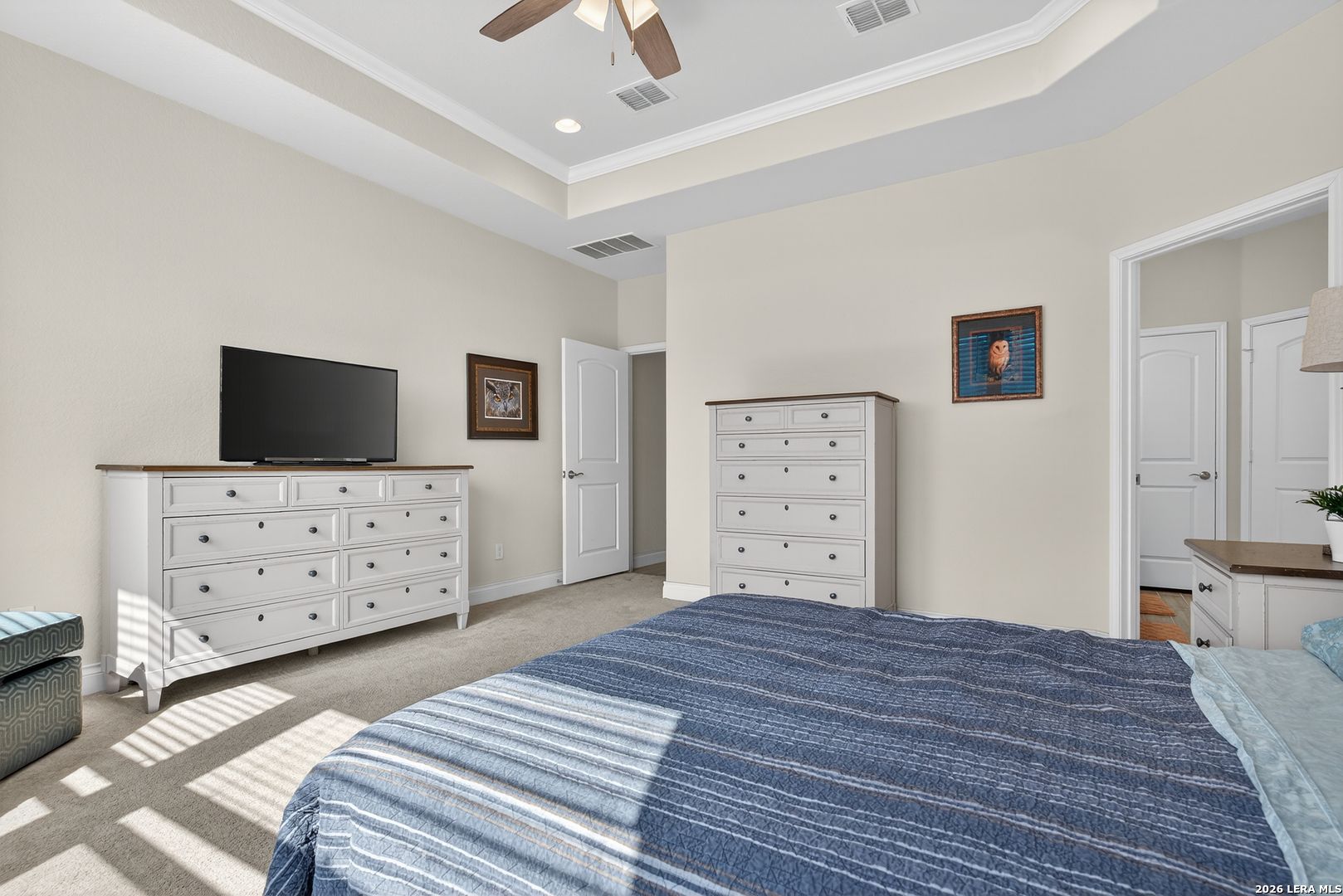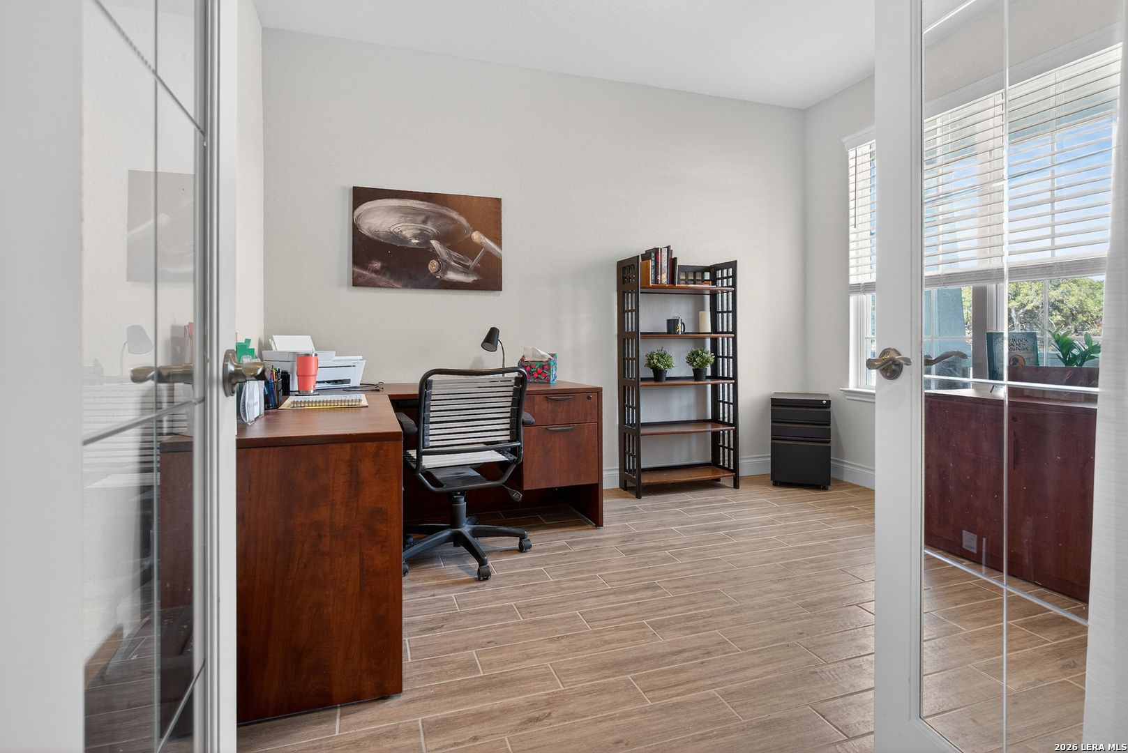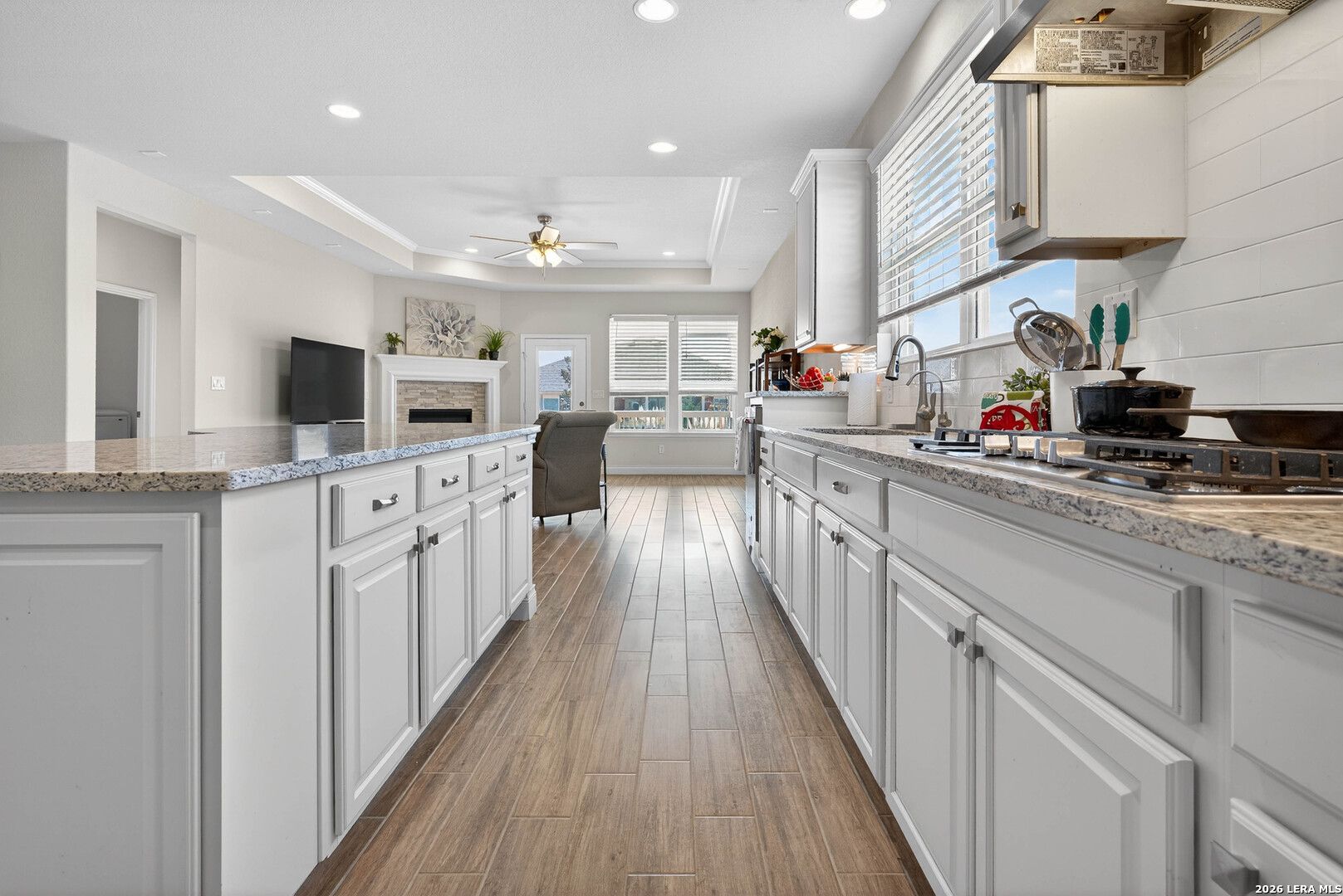 CUL-DE-SAC QUIET!! Welcome to peaceful, easy living in the highly sought-after Del Webb 55+ community-where privacy and comfort truly shine. Ideally positioned on a premium cul-de-sac lot with beautiful Hill Country views, this meticulously maintained single-story home offers the quiet retreat so many buyers are searching for. With 2 bedrooms, 2 baths, and a dedicated office, the flexible layout provides space for guests, hobbies, or a comfortable work-from-home setup. The gourmet kitchen features granite countertops, gas cooking, and a butler's pantry, opening to a light-filled living area with high ceilings and a cozy gas fireplace-perfect for relaxing evenings. The spacious primary suite offers a private escape with a well-appointed ensuite bath designed for comfort and ease. Step outside to enjoy your private backyard with custom iron fencing and patio shades-ideal for morning coffee or peaceful sunsets. Enjoy the "lock and leave" lifestyle plus resort-style amenities including pools, a fitness center, and daily activities-all in a quiet cul-de-sac setting designed for relaxed retirement living. SEE THIS ONE TODAY!!