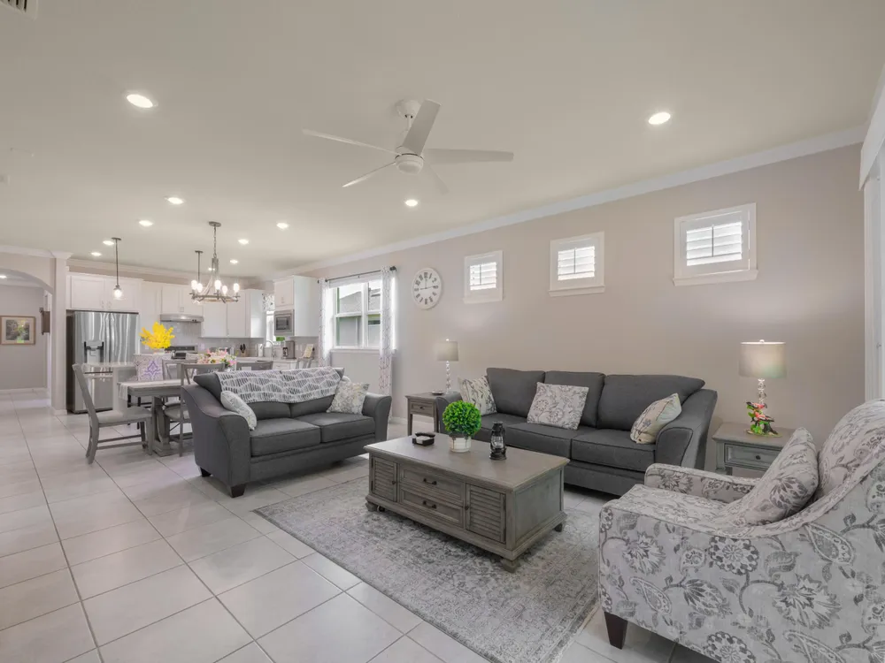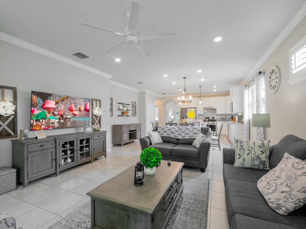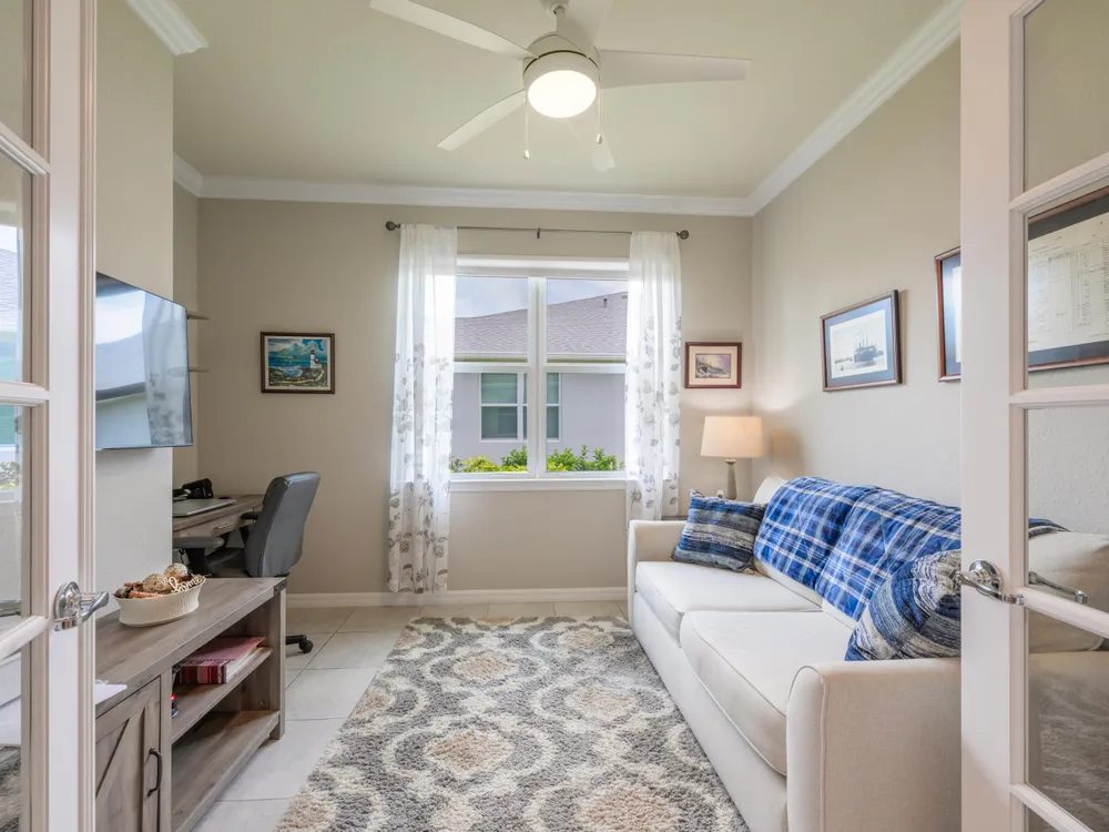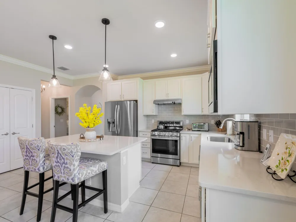 Welcome to this stunning Del Webb at Traditions home, built in 2020 and offering a beautiful blend of modern comfort and timeless design. This meticulously maintained 2-bedroom, 2 full bath home also includes a versatile den, perfect for a home office, guest space, or cozy reading nook.The open-concept layout is filled with natural light, creating a warm and inviting atmosphere for both daily living and entertaining. The spacious kitchen features elegant quartz countertops and brand-new stainless steel appliances, seamlessly connecting to the living and dining areas.The primary suite offers a peaceful retreat with a generous walk-in closet and a luxurious en-suite bath featuring dual vanities and a walk-in shower.