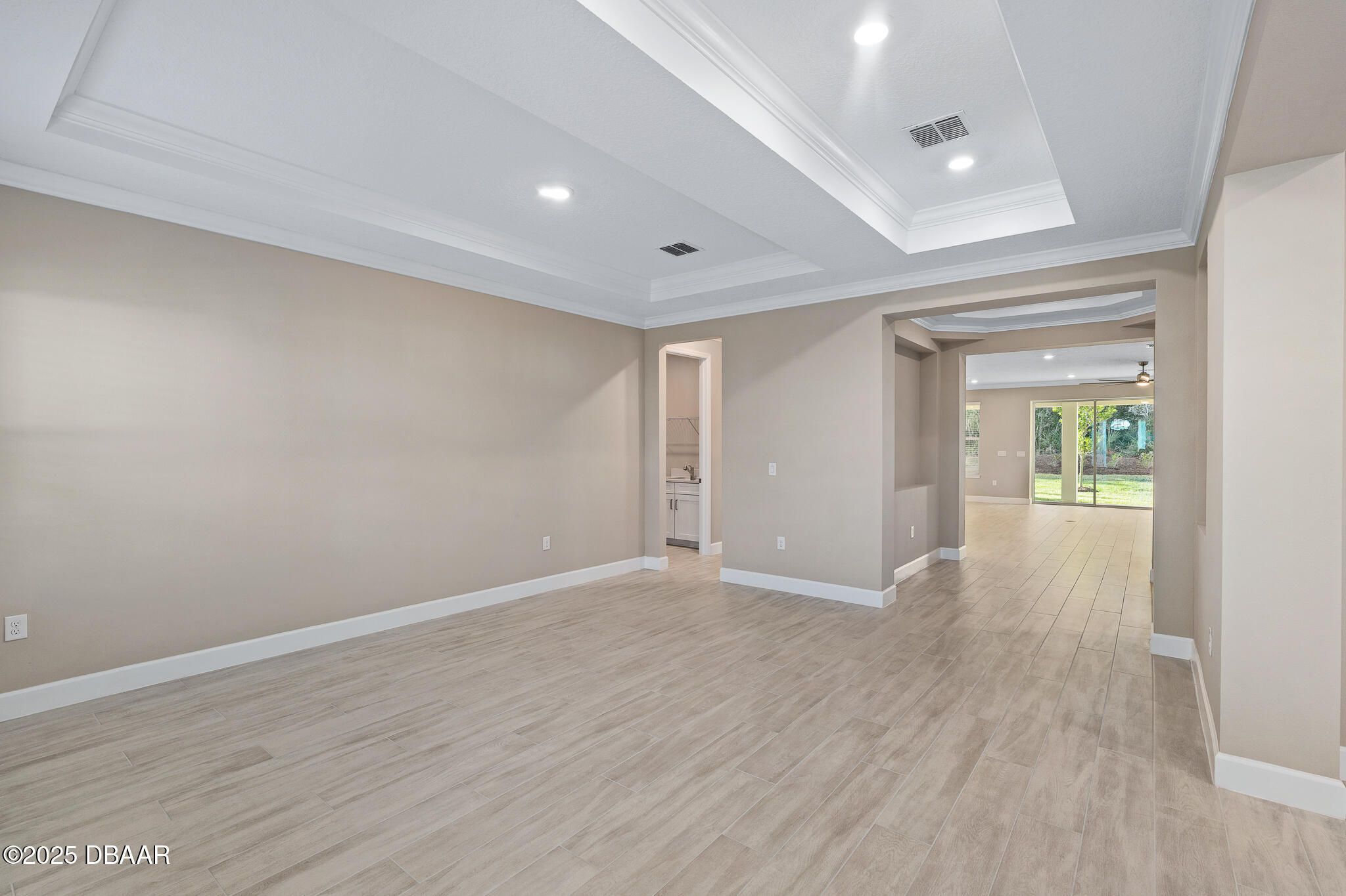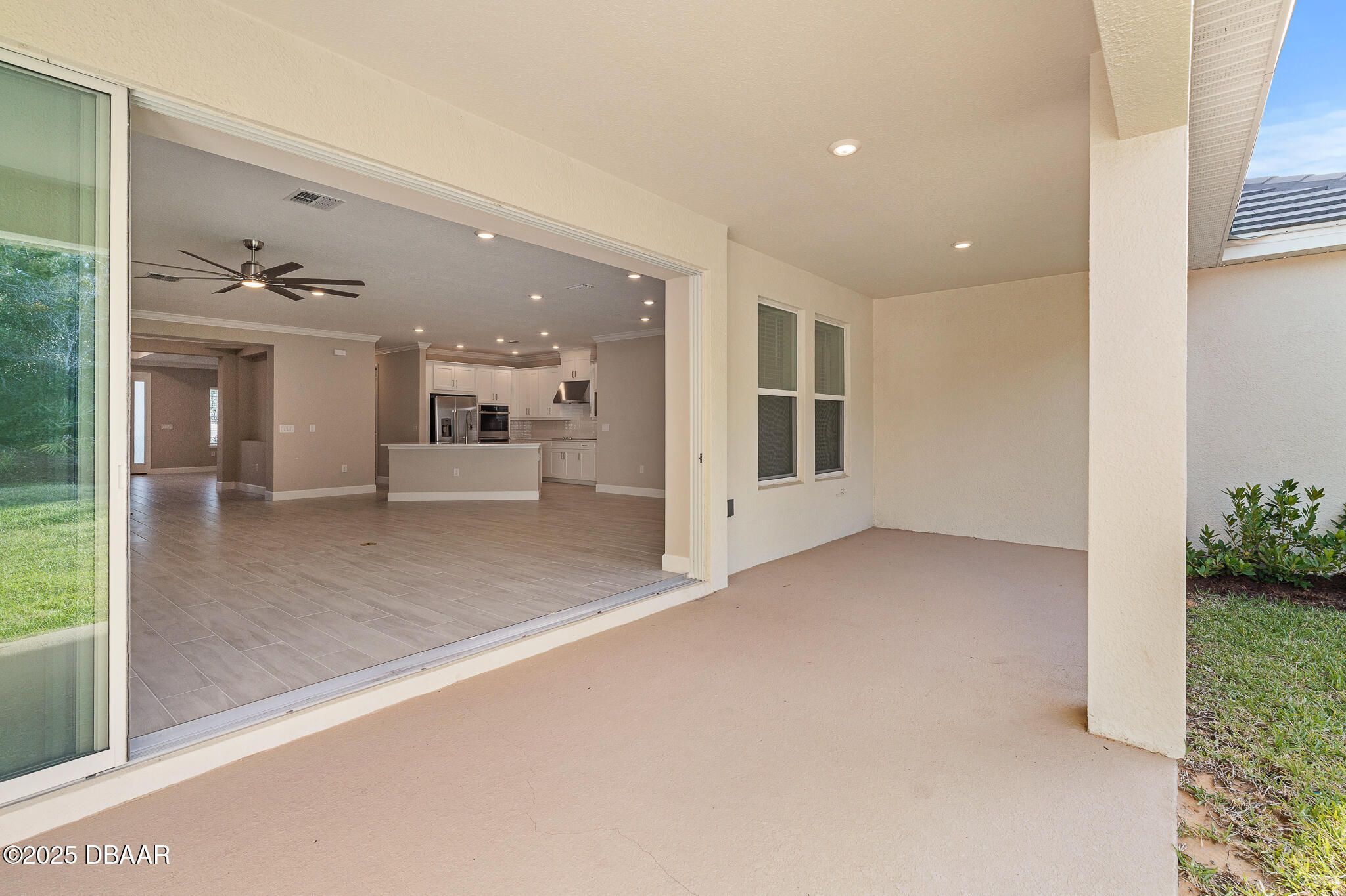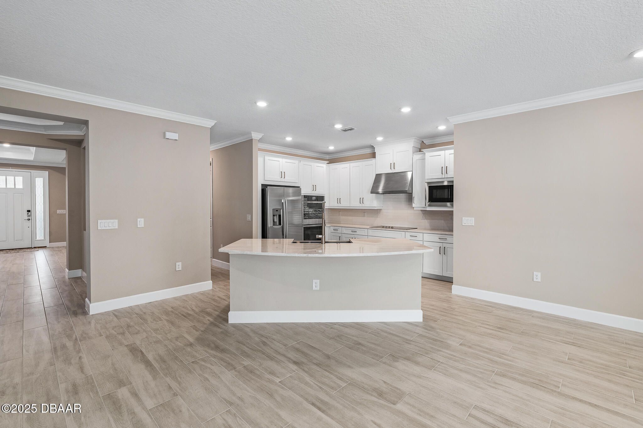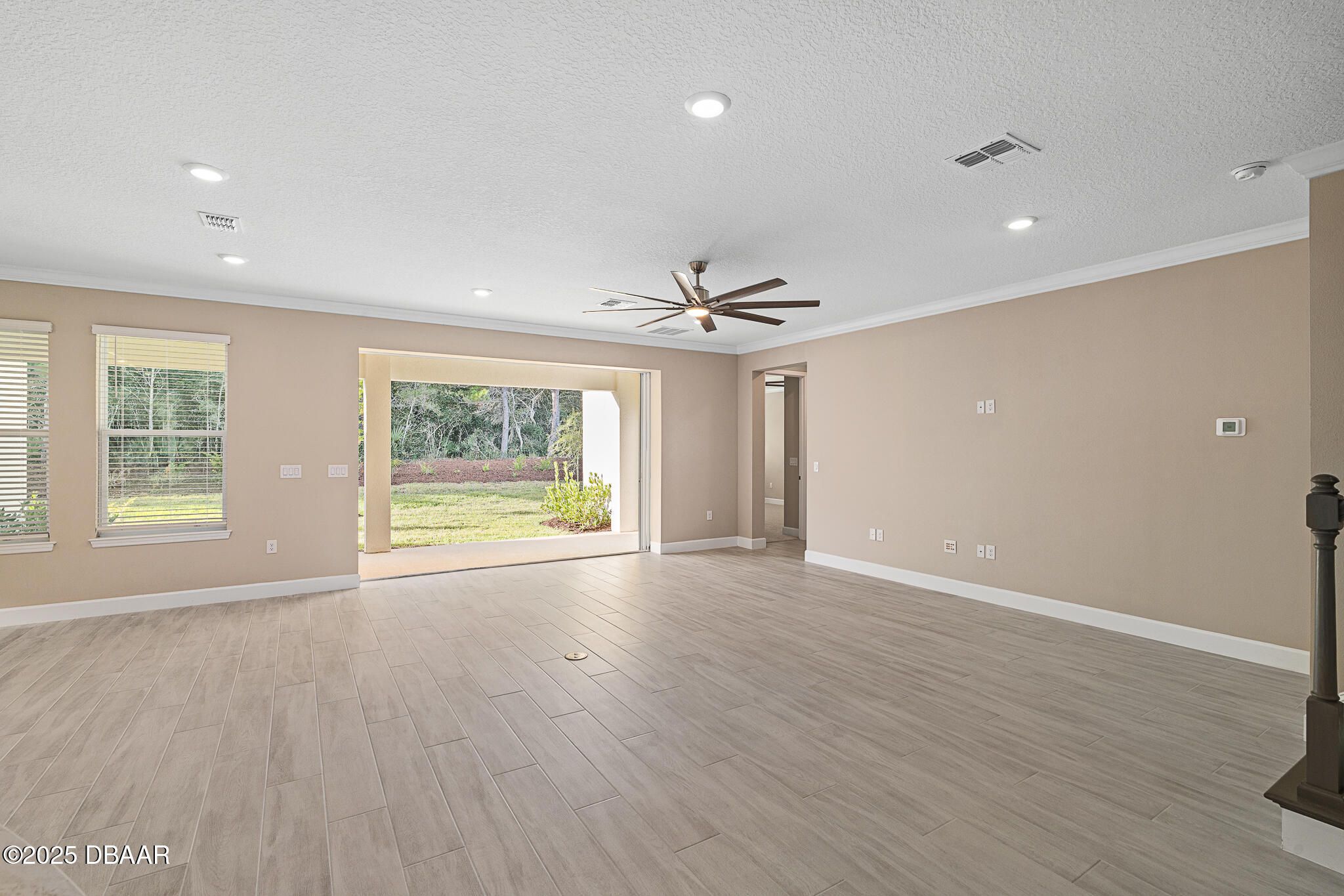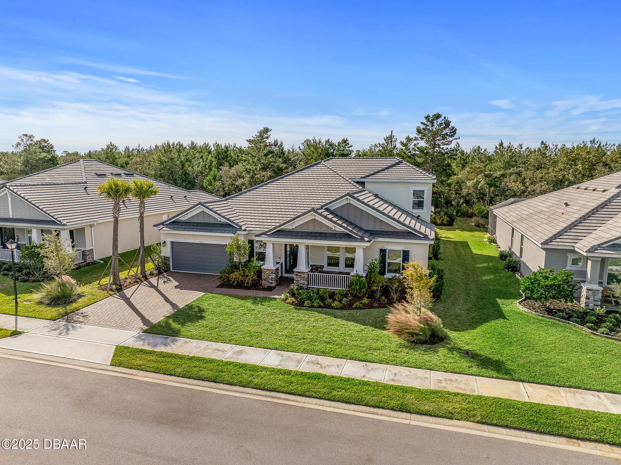 BEAUTIFUL highly-upgraded home in Windchase neighborhood of Halifax Plantation! This 2024-BUILT Taylor Morrison home is the definition of IDEAL Florida living. Approach the home and you are welcomed with a large front porch leading to your front door entry with frosted sidelights. Upon entry, you are greeted with TILE PLANK flooring and tray ceilings with CROWN MOLDING. Entry foyer opens into your formal Dining Room which is also outfitted with tile plank flooring, window blinds, and tray ceiling with crown molding. Located on the other side of the entry foyer is your Office/Study featuring tile plank flooring, tray ceiling with crown molding, window blinds, and ceiling fan. ROTUNDA in the center of the 1st floor featuring tray ceiling with double-crown molding. Kitchen is a chef's dream with 42' two-tone dovetail/ softclose cabinetry, tile backsplash, QUARTZ countertops, GE STAINLESS STEEL appliances, crown molding, and MASSIVE island with stainless FARMHOUSE/APRON-style sink. Kitchen is complete with a WALK-IN PANTRY next to your additional countertop space functioning as a key-drop, coffee bar, etc. Situated off of Kitchen is a space which could easily be utilized as a Breakfast Nook. MASSIVE Living Room is situated across from Kitchen and boasts tile plank flooring, crown molding, ceiling fan, and triple POCKET SLIDERS to Lanai. From Living Room, enter your oversized Master Suite equipped with tray ceilings with double-crown molding, window blinds, carpeted flooring, ceiling fan, and window blinds. Enter your Master En-Suite Bathroom with tile floors, 2 separate QUARTZ vanities, HUGE walk-in shower, soaking tub, and water closet. Also features a MASSIVE Master Closet with an abundance of storage space. 1st floor features 3 Guest Bedrooms- all of which include carpeted floors, ceiling fans, and window blinds. Front 2 Guest Bedrooms share a Jack and Jill Bathroom with convenient doors between each section for added privacy. Located near your Rear Guest Bedroom is the large Media Room/Den with endless possibilities such as a 2nd home office, home gym, etc. This room features tile plank flooring, tray ceiling, window blinds, and ceiling fan. Between Media Room/Den and Rear Guest Bedroom is Rear Guest Bathroom which includes tile floors, QUARTZ vanity, tile shower, and TRANSOM window above shower for plenty of NATURAL LIGHT. Located in the hallway to the Front Guest Bedrooms is your Half Bathroom/Powder Room with tile floors and pedestal sink. From the Living Room, head up your wood staircase to the OVERSIZED upstairs living space. Huge upstairs Bonus Room featuring carpeted floors, window blinds, and ceiling fan could easily be utilized as a home movie theater, game room, etc. Head through your upstairs hallway into the Upstairs Guest Bedroom. Hallway closes off which allows bedroom to utilize an En-Suite Upstairs Guest Bathroom with tile floors, tile shower, and QUARTZ vanity. Head back downstairs and enjoy the convenience of your FULL-SIZE Laundry Room with QUARTZ vanity/utility sink and shelving for additional storage. Go through Laundry Room into the HUGE 3-Car Garage with high-end EPOXY flooring. At the end of the day, travel out back to into your private piece of PARADISE. Huge Lanai pre-plumbed for summer kitchen and plenty of space for your dream pool setup! All backing up to preserve views for maximum privacy. This home is in LIKE-NEW condition and is complete with TILE roof, PAVERS walkway and driveway, LUSH landscaping, whole-house WATER TREATMENT SYSTEM, and MUCH MORE. Home is situated in a quiet, peaceful location near the CUL-DE-SAC, on the opposite end of the neighborhood from the ENTRY GATE. Halifax Plantation is just MINUTES away from the sandy beaches of Ormond Beach, making it a great choice for those who enjoy coastal living. In addition to GOLF, there are plenty of RECREATIONAL opportunities, including walking TRAILS and nearby PARKS, making it ideal for nature lovers and ACTIVE lifestyles. Conveniently located near SHOPPING, dining, and major highways, Halifax Plantation offers the PERFECT balance of privacy and accessibility. Whether you're looking for a peaceful retreat or a vibrant community, Halifax Plantation is a wonderful place to call home.