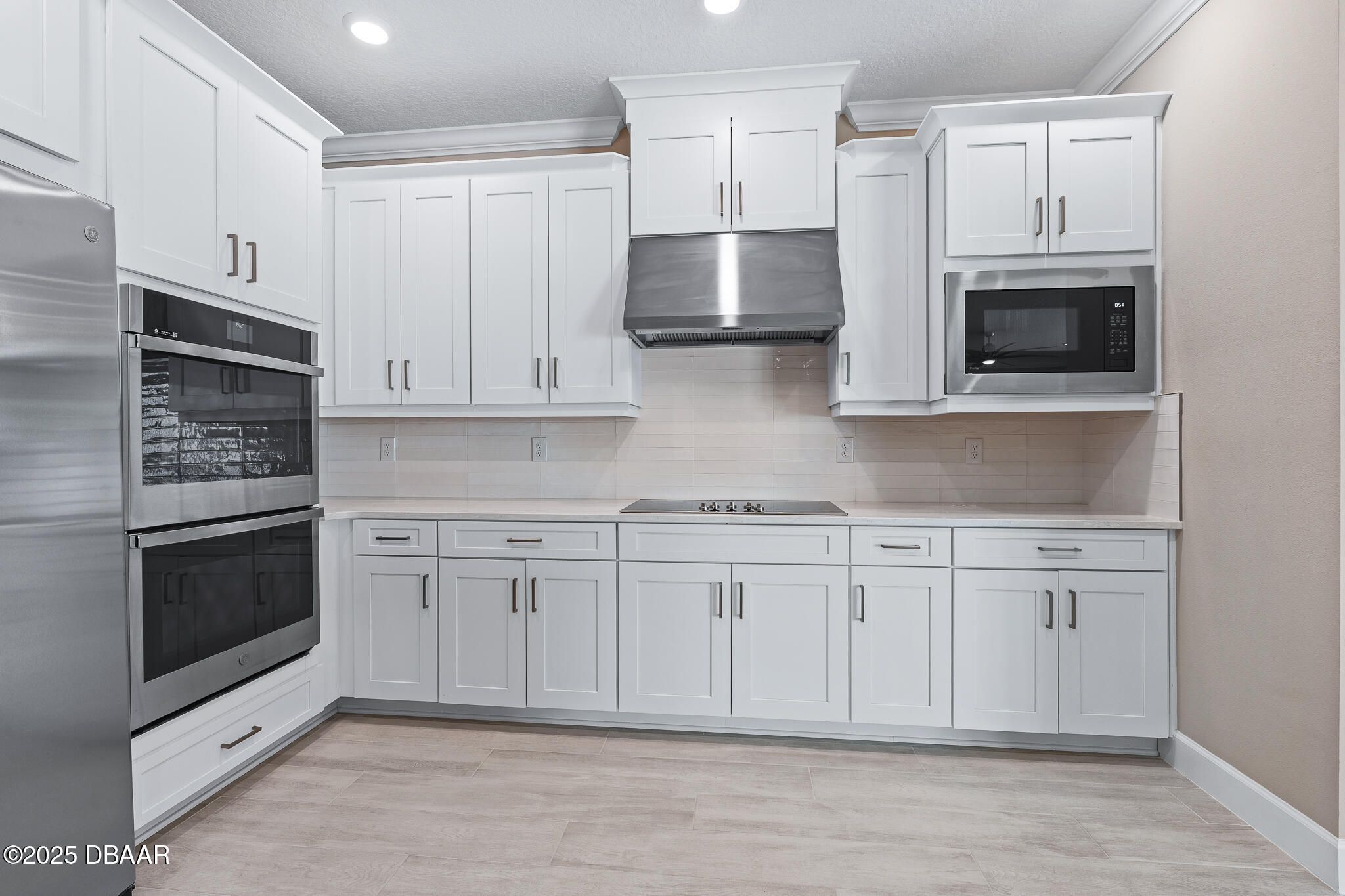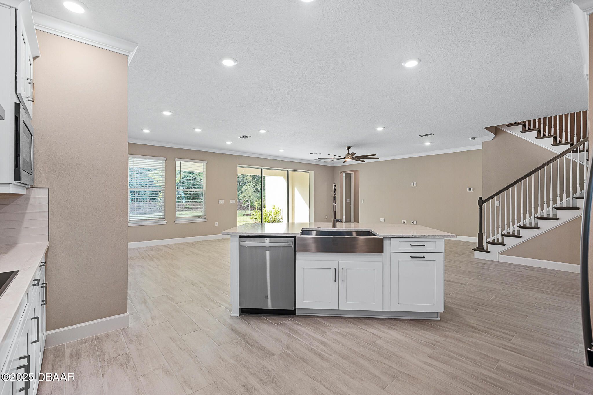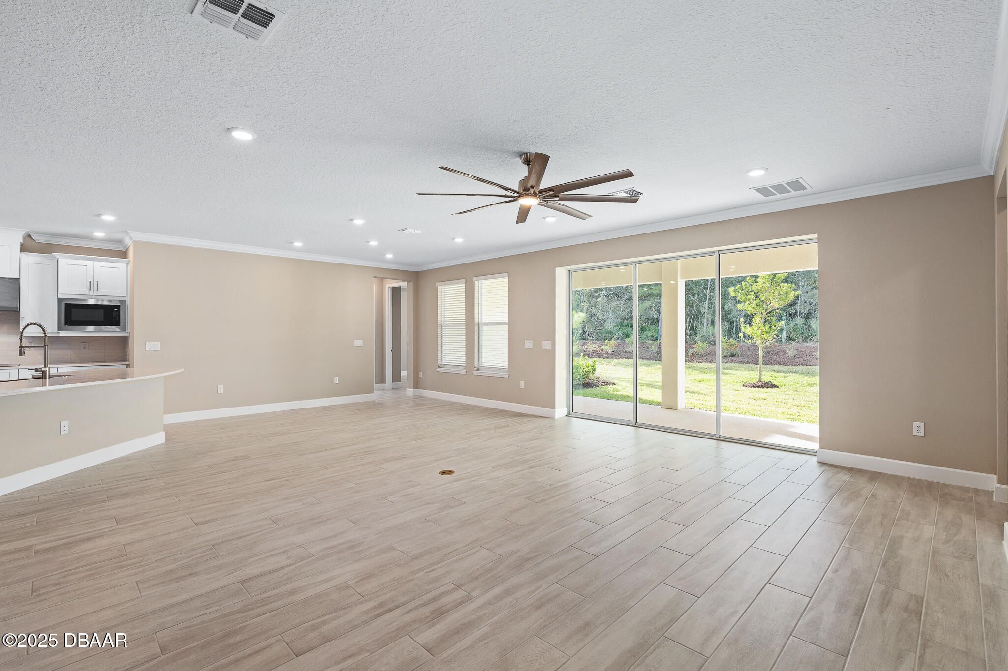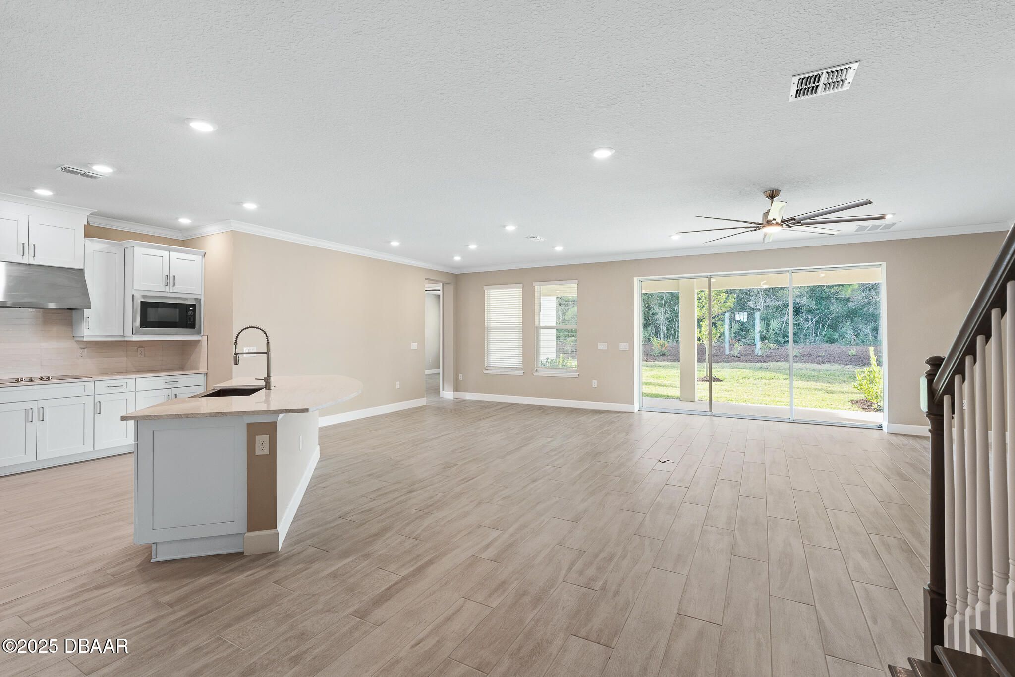 BEAUTIFUL highly-upgraded home in Windchase neighborhood of Halifax Plantation! This 2024-BUILT Taylor Morrison home is the definition of IDEAL Florida living. Approach the home and you are welcomed with a large front porch leading to your front door entry with frosted sidelights. Upon entry, you are greeted with TILE PLANK flooring and tray ceilings with CROWN MOLDING. Entry foyer opens into your formal Dining Room which is also outfitted with tile plank flooring, window blinds, and tray ceiling with crown molding. Located on the other side of the entry foyer is your Office/Study featuring tile plank flooring, tray ceiling with crown molding, window blinds, and ceiling fan. ROTUNDA in the center of the 1st floor featuring tray ceiling with double-crown molding. Kitchen is a chef's dream with 42' two-tone dovetail/ softclose cabinetry, tile backsplash, QUARTZ countertops, GE STAINLESS STEEL appliances, crown molding, and MASSIVE island with stainless FARMHOUSE/APRON-style sink. Kitchen is complete with a WALK-IN PANTRY next to your additional countertop space functioning as a key-drop, coffee bar, etc. Situated off of Kitchen is a space which could easily be utilized as a Breakfast Nook. MASSIVE Living Room is situated across from Kitchen and boasts tile plank flooring, crown molding, ceiling fan, and triple POCKET SLIDERS to Lanai. From Living Room, enter your oversized Master Suite equipped with tray ceilings with double-crown molding, window blinds, carpeted flooring, ceiling fan, and window blinds. Enter your Master En-Suite Bathroom with tile floors, 2 separate QUARTZ vanities, HUGE walk-in shower, soaking tub, and water closet. Also features a MASSIVE Master Closet with an abundance of storage space. 1st floor features 3 Guest Bedrooms- all of which include carpeted floors, ceiling fans, and window blinds. Front 2 Guest Bedrooms share a Jack and Jill Bathroom with convenient doors between each section for added privacy. Located near your Rear Guest Bedroom is the large Media Room/Den with endless possibilities such as a 2nd home office, home gym, etc. This room features tile plank flooring, tray ceiling, window blinds, and ceiling fan. Between Media Room/Den and Rear Guest Bedroom is Rear Guest Bathroom which includes tile floors, QUARTZ vanity, tile shower, and TRANSOM window above shower for plenty of NATURAL LIGHT. Located in the hallway to the Front Guest Bedrooms is your Half Bathroom/Powder Room with tile floors and pedestal sink. From the Living Room, head up your wood staircase to the OVERSIZED upstairs living space. Huge upstairs Bonus Room featuring carpeted floors, window blinds, and ceiling fan could easily be utilized as a home movie theater, game room, etc. Head through your upstairs hallway into the Upstairs Guest Bedroom. Hallway closes off which allows bedroom to utilize an En-Suite Upstairs Guest Bathroom with tile floors, tile shower, and QUARTZ vanity. Head back downstairs and enjoy the convenience of your FULL-SIZE Laundry Room with QUARTZ vanity/utility sink and shelving for additional storage. Go through Laundry Room into the HUGE 3-Car Garage with high-end EPOXY flooring. At the end of the day, travel out back to into your private piece of PARADISE. Huge Lanai pre-plumbed for summer kitchen and plenty of space for your dream pool setup! All backing up to preserve views for maximum privacy. This home is in LIKE-NEW condition and is complete with TILE roof, PAVERS walkway and driveway, LUSH landscaping, whole-house WATER TREATMENT SYSTEM, and MUCH MORE. Home is situated in a quiet, peaceful location near the CUL-DE-SAC, on the opposite end of the neighborhood from the ENTRY GATE. Halifax Plantation is just MINUTES away from the sandy beaches of Ormond Beach, making it a great choice for those who enjoy coastal living. In addition to GOLF, there are plenty of RECREATIONAL opportunities, including walking TRAILS and nearby PARKS, making it ideal for nature lovers and ACTIVE lifestyles. Conveniently located near SHOPPING, dining, and major highways, Halifax Plantation offers the PERFECT balance of privacy and accessibility. Whether you're looking for a peaceful retreat or a vibrant community, Halifax Plantation is a wonderful place to call home.